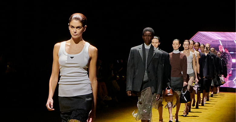 It was a Prada show for the ages, and one co-designers Miuccia Prada and Raf Simons dedicated to the history of women. They showed it on an all-star cast of models who have embodied the house over the years – from Y2K queens, Élise Crombez, Hannelore Knuts and Erin O’Connor to modern muses Kendall Jenner and Hunter Schafer.