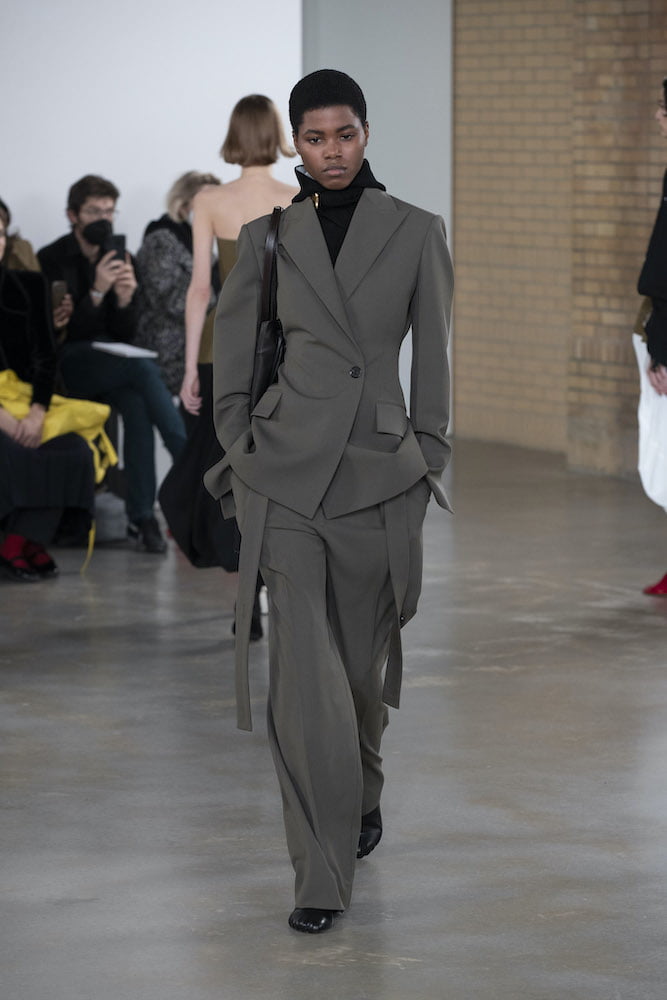 Soundtracked by a live musical composition from Eartheater, easy-going tailoring was corseted via woollen belts wrapped tightly around the wearer. The look signified dressed-up comfort: not exactly abandoning the slouched ‘fits we wore through lockdown, but sculpting a uniform that feels right to step back into the world in. These are clothes you can rely on.