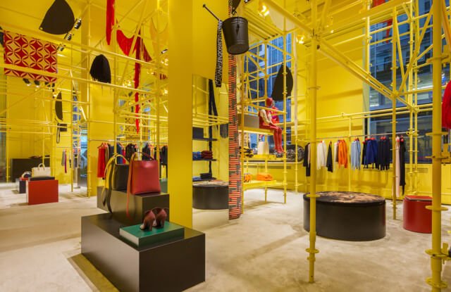 No surprise then that Raf drafted in Ruby for his Calvin Klein relaunch, commissioning the artist to create the set for his first show – a maze made up of hanging sacks in a patchwork of American flags, alluding to Raf’s transatlantic move and the brand’s very American history. Alongside the set, he also created a number of installations throughout Calvin’s offices on West 39th Street. Now, the pair are at it again, with Ruby giving Calvin’s Madison Avenue store a makeover via a scaffolding-based installation – a nod to the fact the store’s still a work in progress, due to be completely revamped within the next year or so. “I’m taking the Calvin Klein flagship from minimal to maximal,” Ruby said. “My design should be seen as a marker to celebrate the future of the brand.”