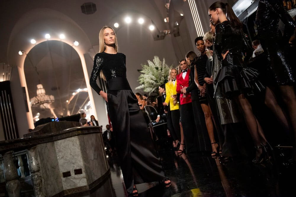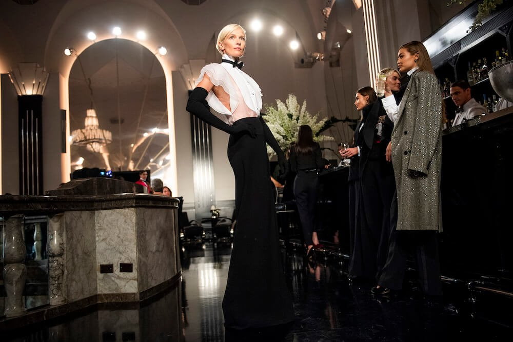 Where do you go after celebrating 50 years of success? Well, if you’re Ralph Lauren, the party goes on. For one night only, the world got to experience Ralph’s Club, a decadent backdrop for his new, AW19 collection. Set in the glittering era of NYC – think Art Deco of 1920s and 1930s – the location was of a private member’s club, as was the dress code. Both the attendees (the invites stated a black tie code) and the models in the show demonstrated the glam aspect of Ralph Lauren’s brand. Without a pair of jeans in (our) sight, Lauren presented the evolving nature of his eveningwear.