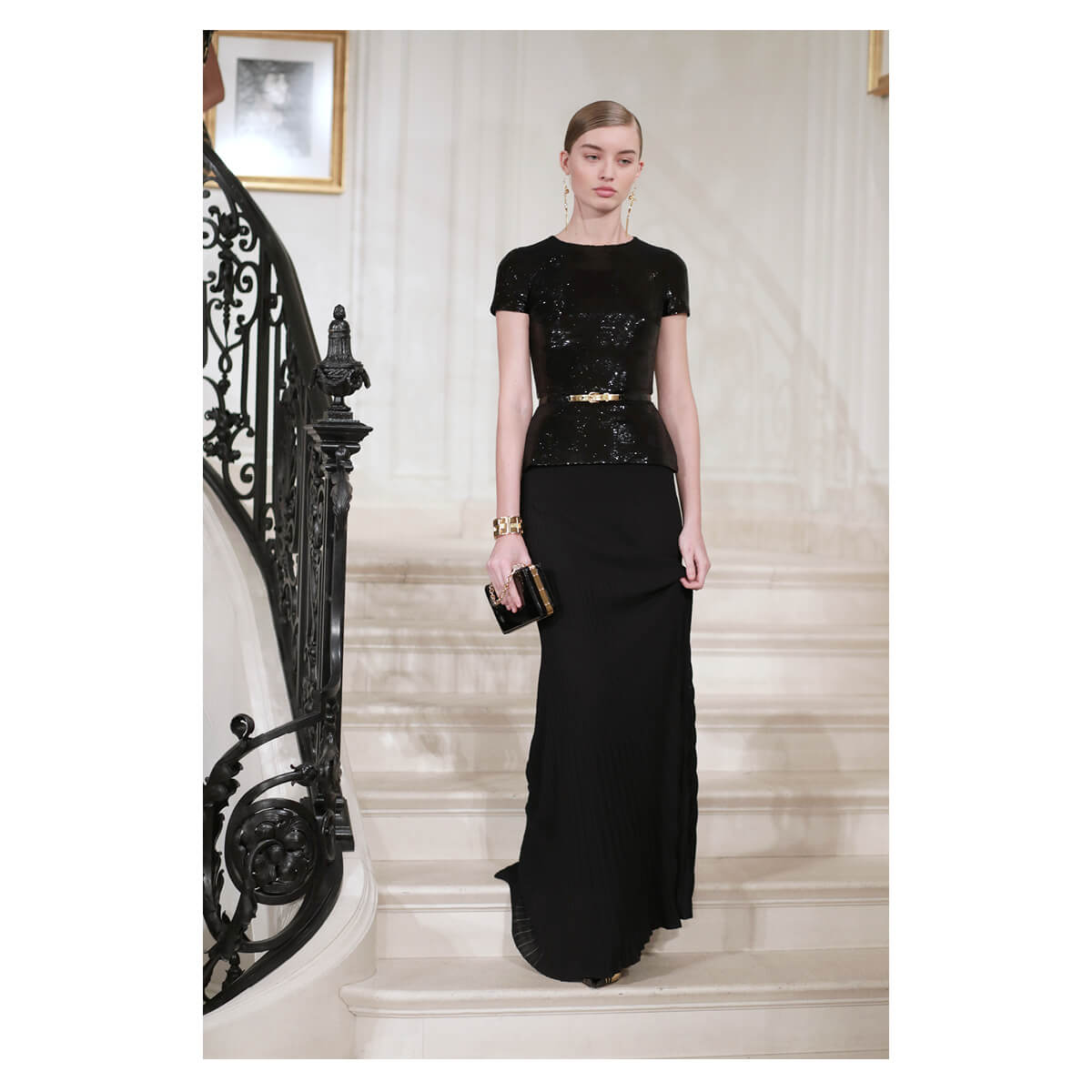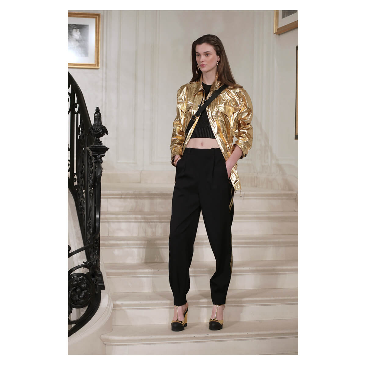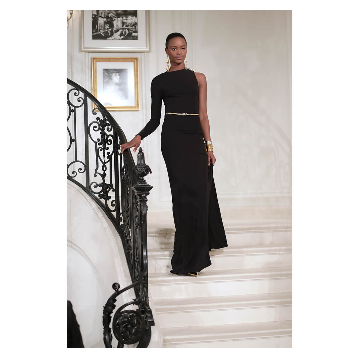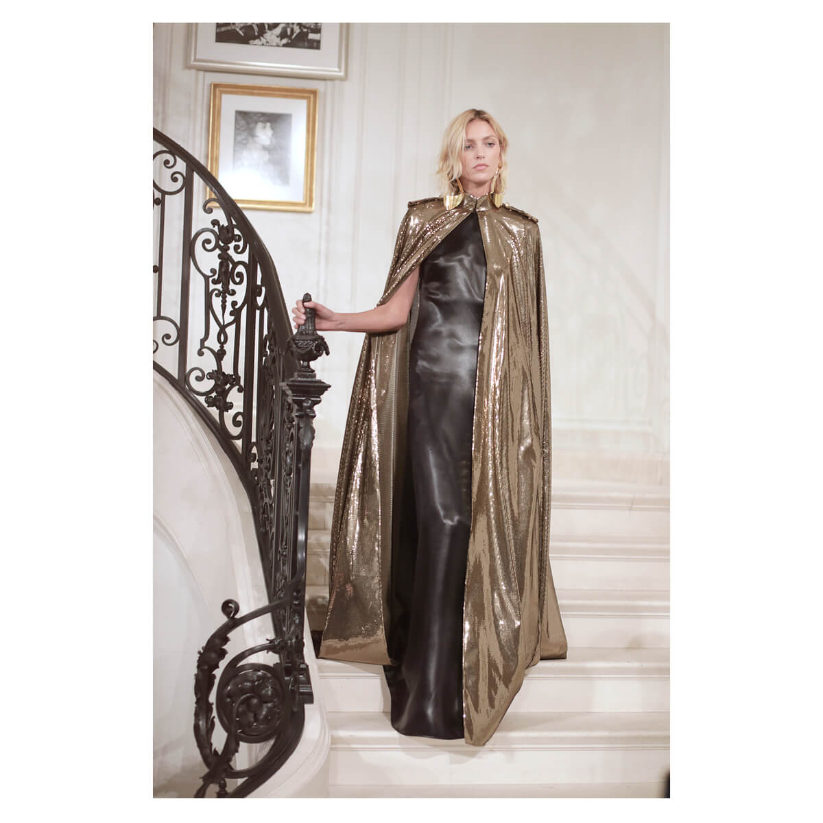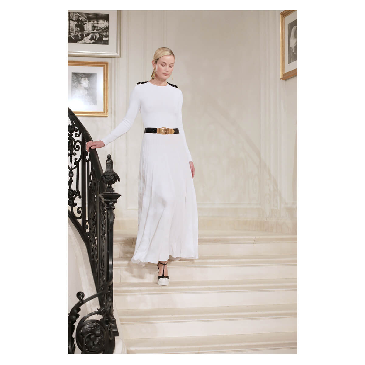 The gorgeous Taylor Hill opened the show in a pair of exaggerated wide leg trousers, structured military-esque jackets with shoulder epaulettes in white. Looks followed included cream silk shirts influenced by his iconic trench coat, metallic gold trousers and jackets will satisfy his younger customers who will funk it up in their street style version, jumpsuits and so many striking gold evening looks. Carolyn Murphy wearing a white fitted crewneck dress with a flowy pleated skirt with that hint of RL military touch finished with a gold belt and wedge heels are feminine to the max! Bella Hadid wearing a gold pleated dress looked modern, glamorous ‬and just enough sexiness! And the coffee was just as good too.