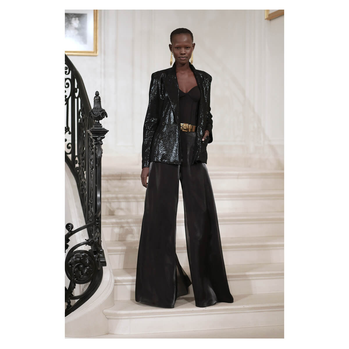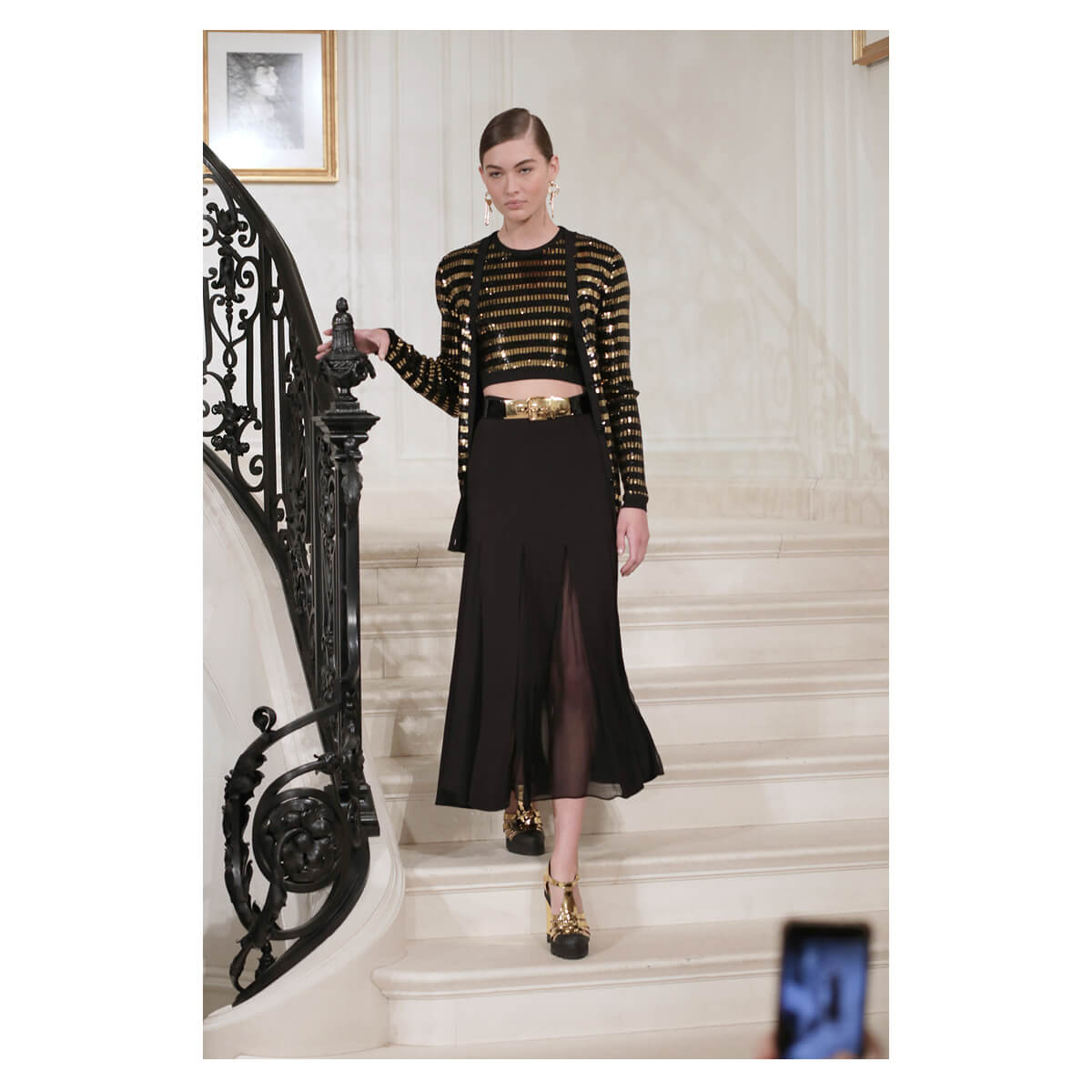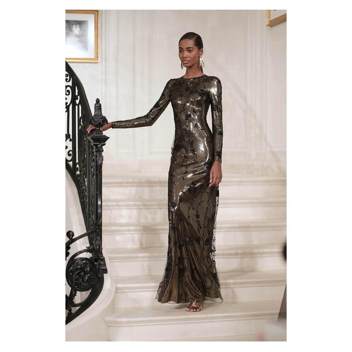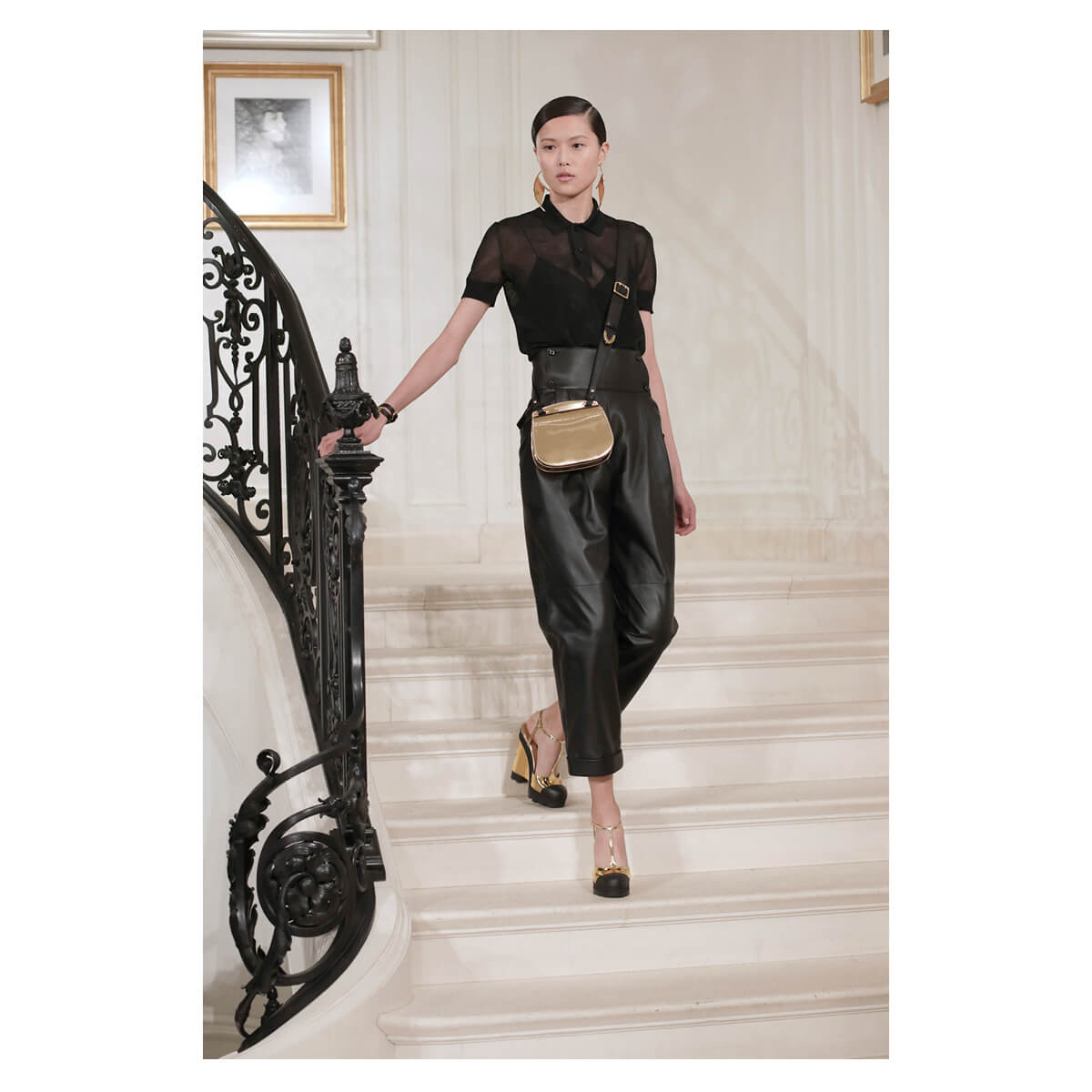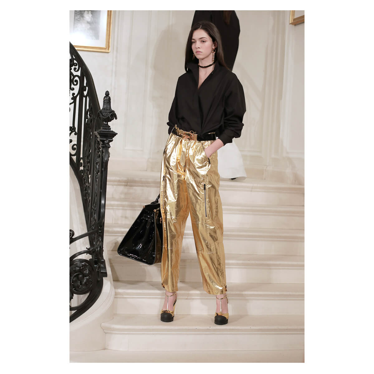 The gorgeous Taylor Hill opened the show in a pair of exaggerated wide leg trousers, structured military-esque jackets with shoulder epaulettes in white. Looks followed included cream silk shirts influenced by his iconic trench coat, metallic gold trousers and jackets will satisfy his younger customers who will funk it up in their street style version, jumpsuits and so many striking gold evening looks. Carolyn Murphy wearing a white fitted crewneck dress with a flowy pleated skirt with that hint of RL military touch finished with a gold belt and wedge heels are feminine to the max! Bella Hadid wearing a gold pleated dress looked modern, glamorous ‬and just enough sexiness! And the coffee was just as good too.