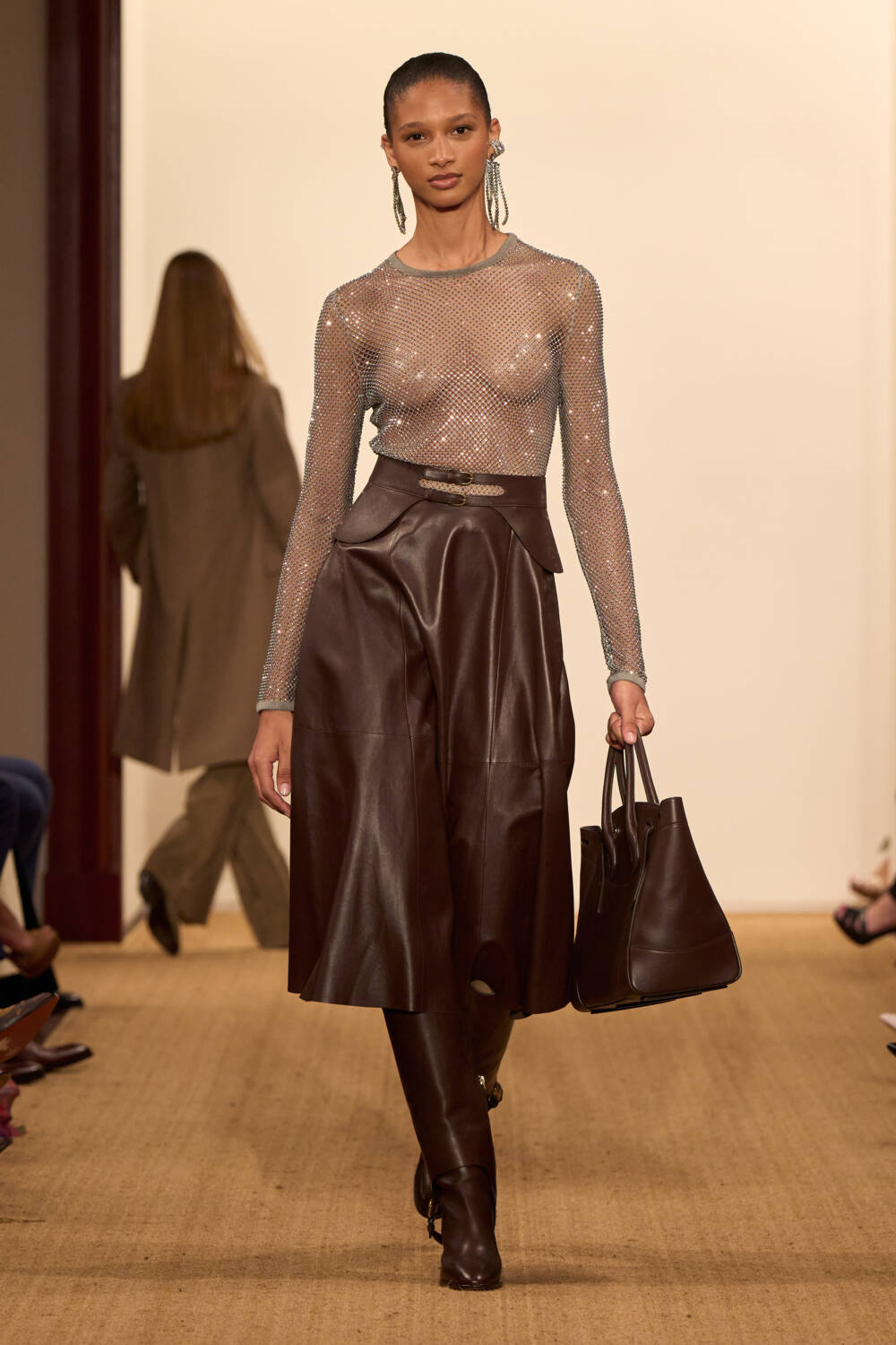 On Monday night, Ralph Lauren presented his fall/holiday 2024 collection to a small group of celebrities, friends, family, and some very lucky editors at his private design studio in New York. With notable guests like Glen Close, Jessica Chastain, Kerry Washington and more, no one draws out the stars quite like he does. As for the show, it was reminiscent of the first collection he presented in 1972. And like the ’70s, the woman Lauren designs for is still as stylish and elegant as ever. The clothes were classic Ralph Lauren and today, there is nothing more alluring than being in a part of his richly textured and luxurious world. It had all the iconic styles from tweed tailoring to tuxedo to luscious cashmere. The stand outs? For us, it was the red carpet worthy gowns. It was a reminder that whether made from bias cut silk or fully embellished, clad in a gown of his creation will make anyone feel like a Hollywood icon.
