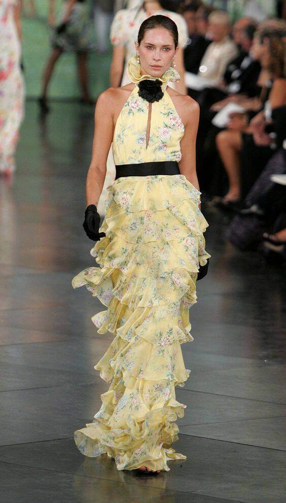 XOXO, Ralph Lauren. Recognise this canary cascade? That’s because everyone’s favourite it-girl – Blake Lively’s Serena Van Der Woodsen – wore it to her mother’s wedding in Season 1 of CW’s Gossip Girl. With the show paying equal homage to the city of New York as Lauren himself, this was a match made in heaven, with this SS08 high-neck floral number being a showstopper in its own right.