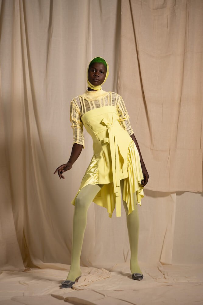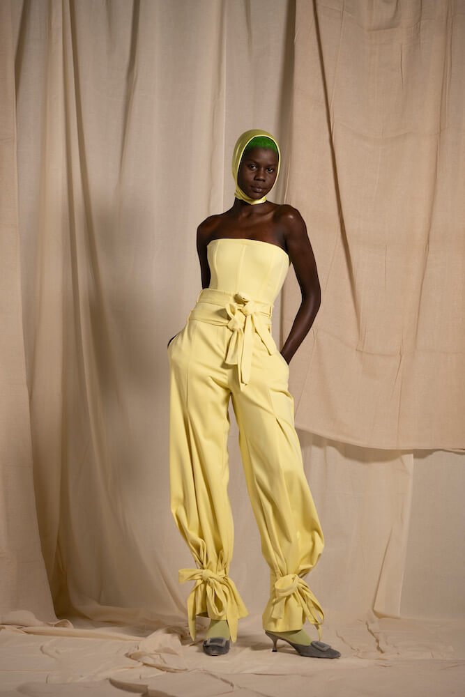 From the trompe l’oeil jacket-turned-tops to the staggered pleating, everything was made in London – and developed on Malone’s own body at that – offering a proper London living wage to the artisans crafting the garments and using only pre-existing fabrics, upcycled either from recent collections or archival LVMH deadstock. “I won’t compromise on exporting clothes for cheap labour, and I’m hoping we will shift the idea that success means sales, as it’s one of the most toxic ideologies we continue to hold on to.” Honest, alluring and low impact, Richard Malone is for the people.