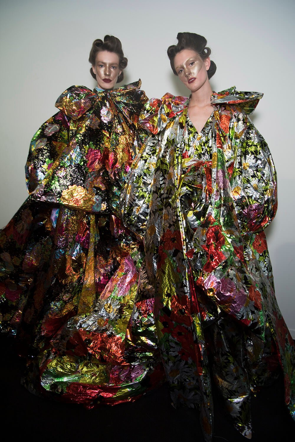 This afternoon’s proceedings at Richard Quinn got off to the most regal of starts courtesy of the attendance of Her Majesty The Queen – yes, THE ACTUAL QUEEN dropped in to see what all the fuss was about. Is she a client of Mr Quinn’s? A long-term collector of his work? It wouldn’t surprise us, given the prevalence of headscarves, prints, florals and billowing capes in the Autumn/ Winter 2018 collection, but on this occasion HRH was there on a mission, perched FROW beside Anna Wintour and Caroline Rush to bestow Richard with the inaugural Queen Elizabeth II Award for British Design. The award itself, designed by Ms Angela Kelly, Her Majesty’s personal advisor and wardrobe orchestrator for the past 26 years, aims to provide a legacy of support for the industry in recognition of the role fashion has played throughout The Queen’s reign.