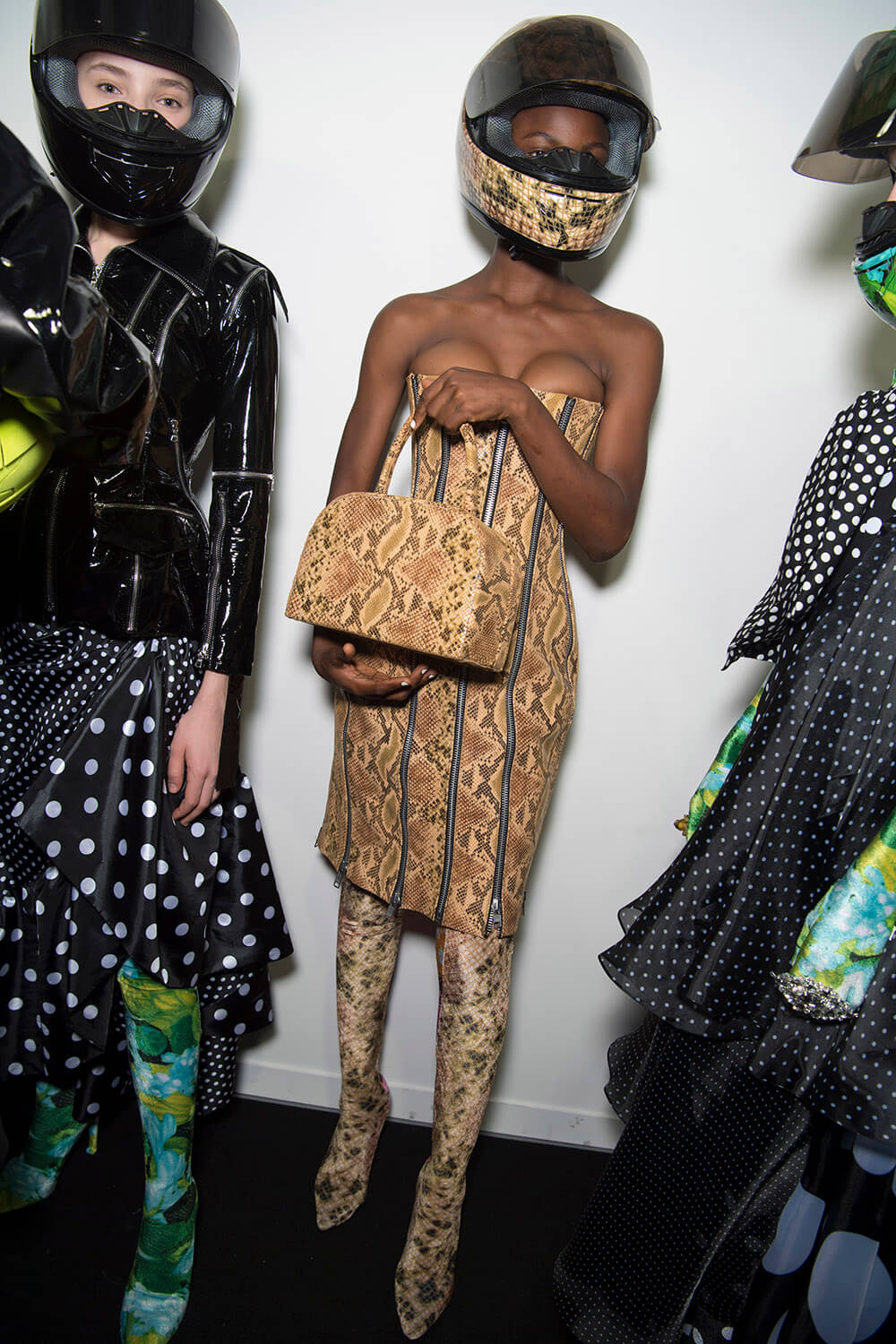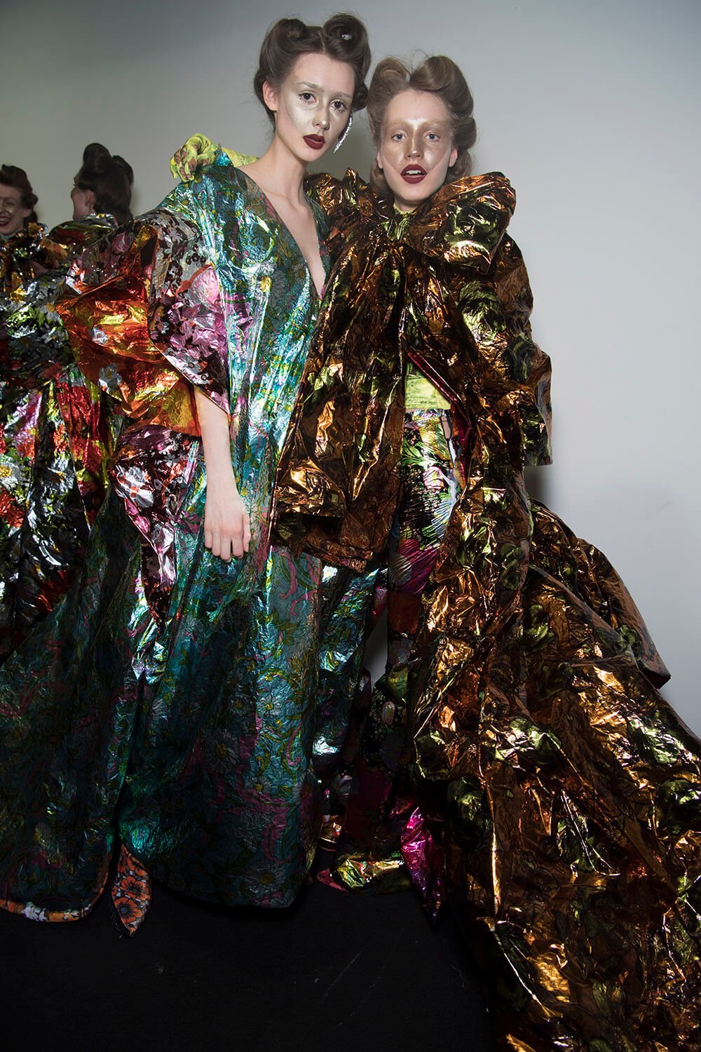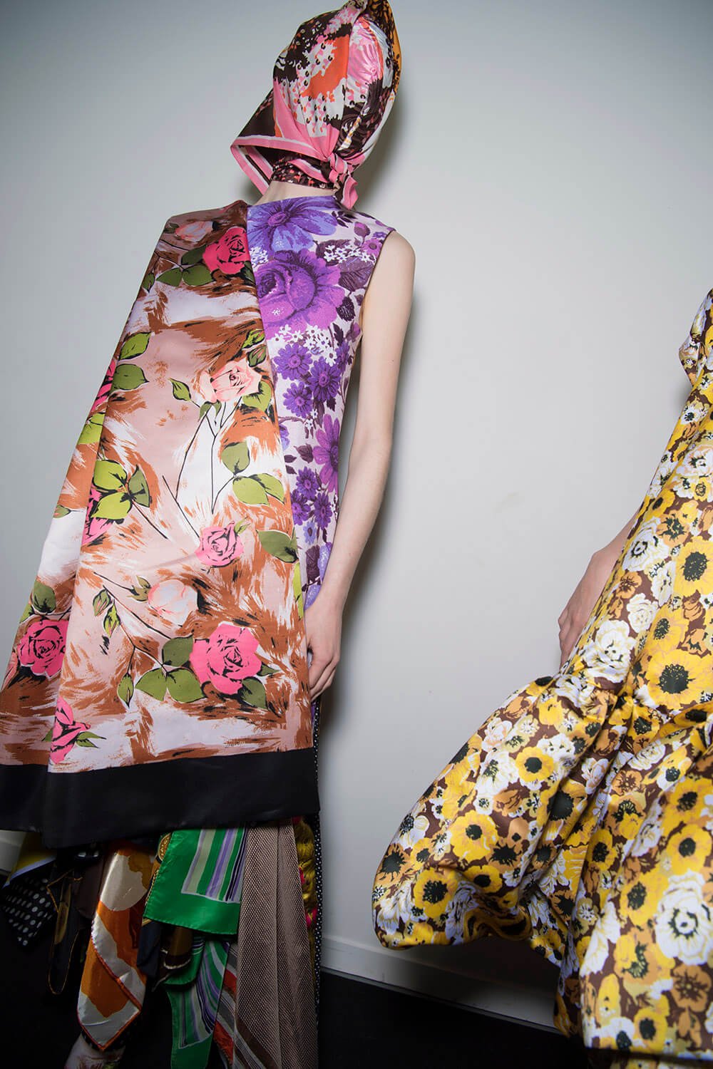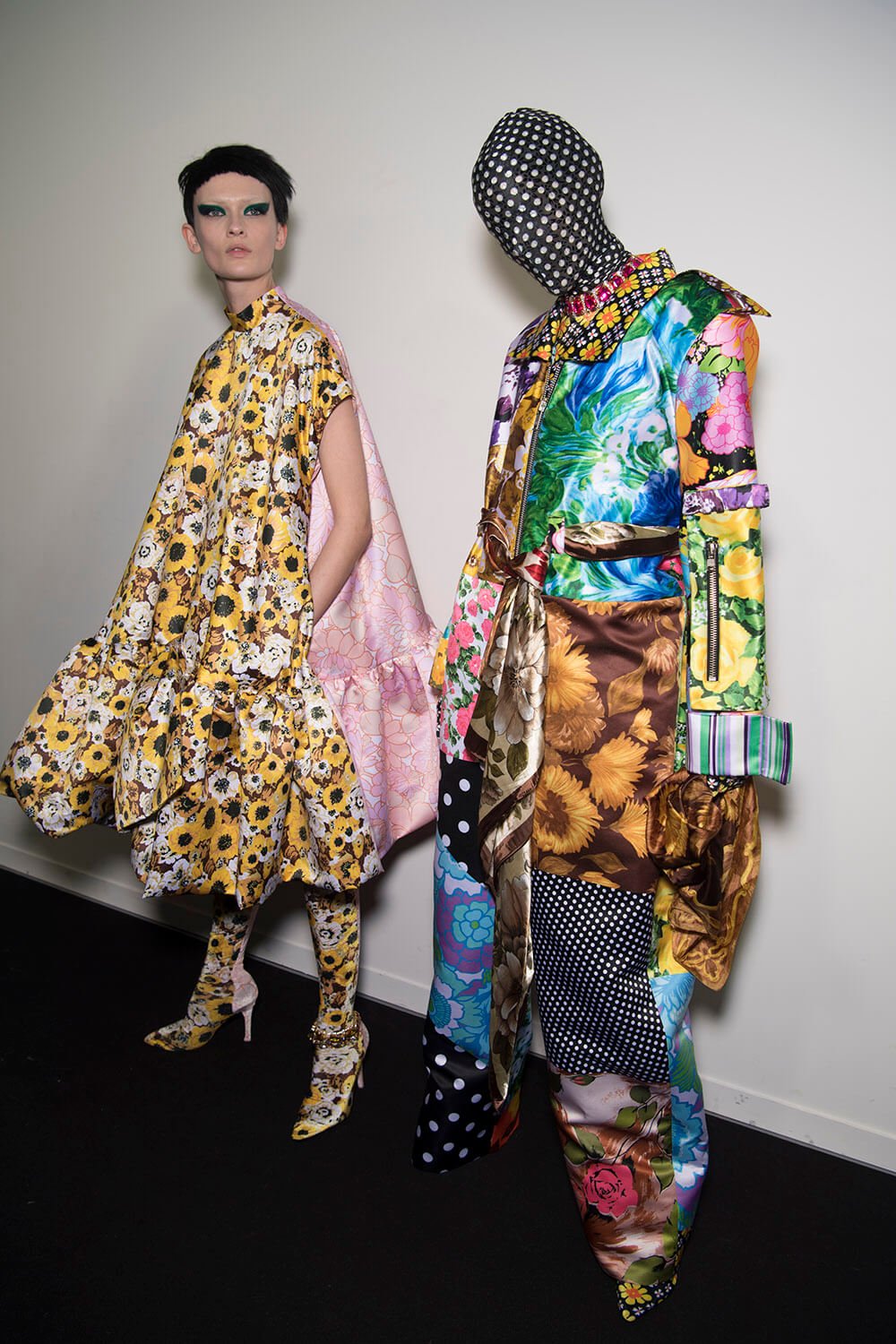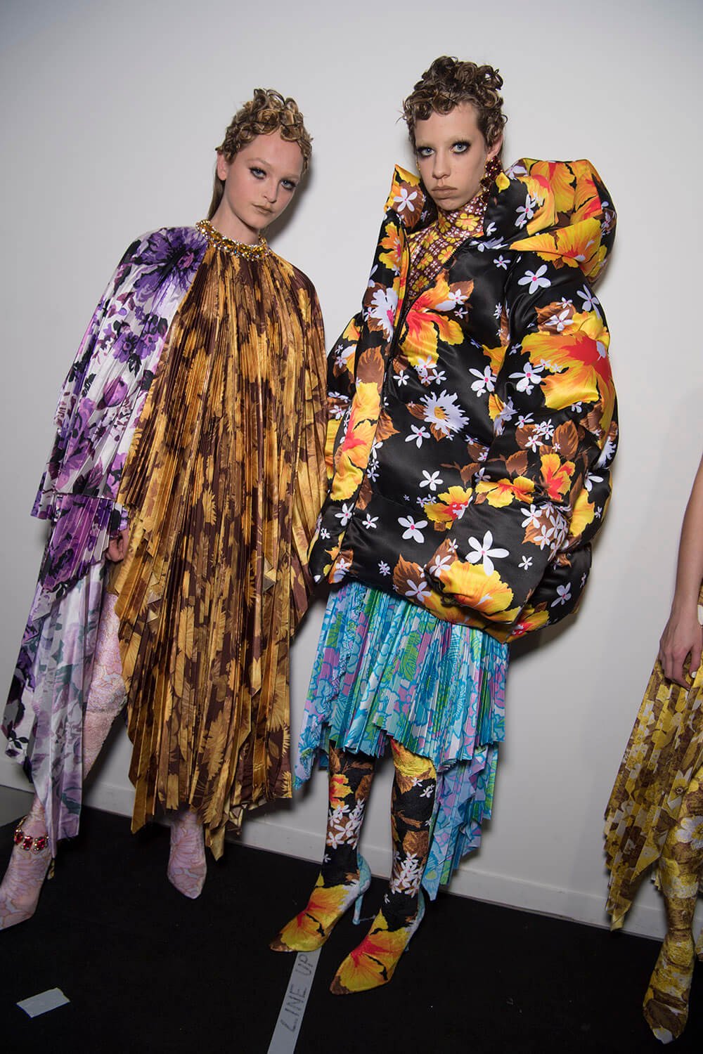 This afternoon’s proceedings at Richard Quinn got off to the most regal of starts courtesy of the attendance of Her Majesty The Queen – yes, THE ACTUAL QUEEN dropped in to see what all the fuss was about. Is she a client of Mr Quinn’s? A long-term collector of his work? It wouldn’t surprise us, given the prevalence of headscarves, prints, florals and billowing capes in the Autumn/ Winter 2018 collection, but on this occasion HRH was there on a mission, perched FROW beside Anna Wintour and Caroline Rush to bestow Richard with the inaugural Queen Elizabeth II Award for British Design. The award itself, designed by Ms Angela Kelly, Her Majesty’s personal advisor and wardrobe orchestrator for the past 26 years, aims to provide a legacy of support for the industry in recognition of the role fashion has played throughout The Queen’s reign.
