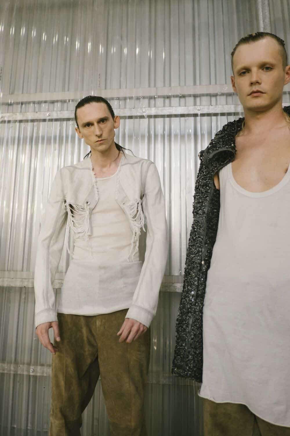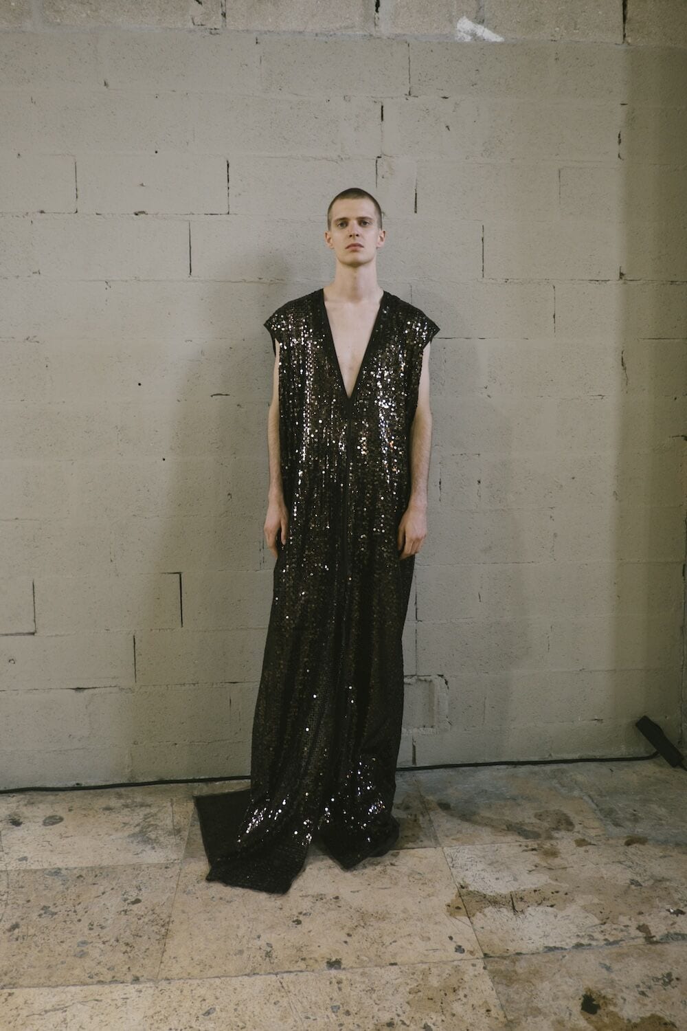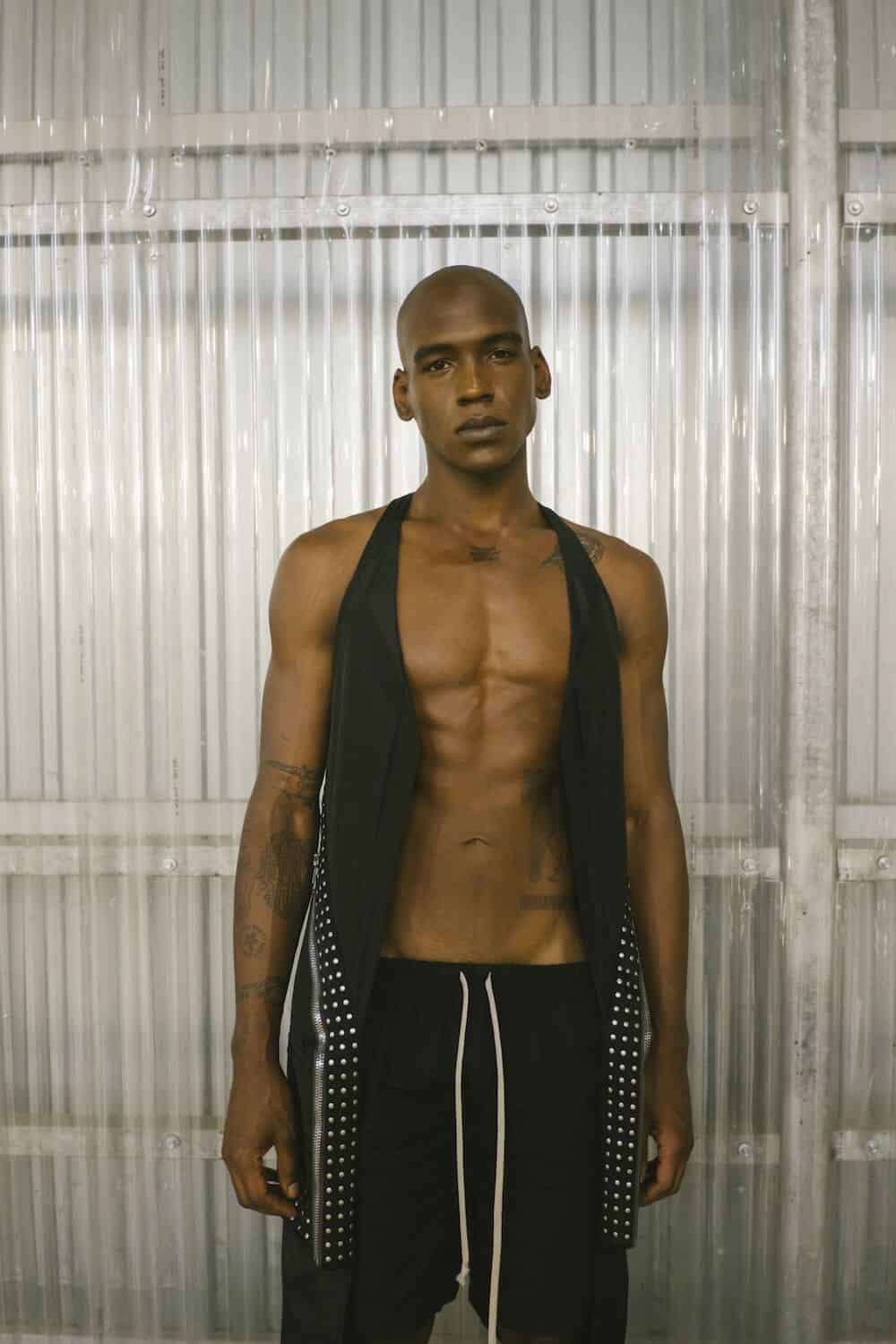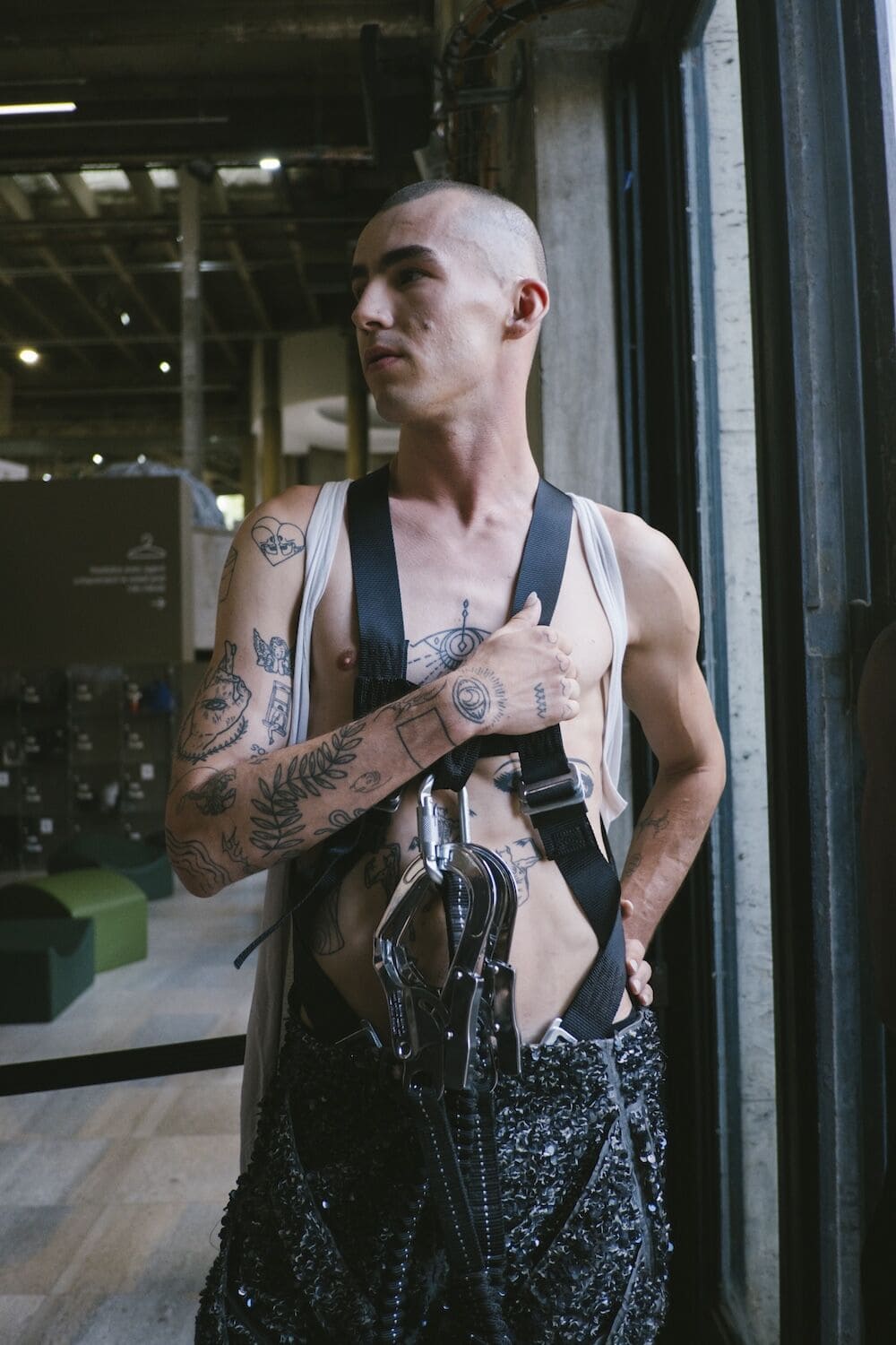 Emerging from the void, Rick Owens’ SS26 army swept through the Palais de Tokyo like a procession of monastic gladiators, descending from scaffolding into water and transforming the runway into a site of ritual. Some dove in headfirst, reemerging soaked – garments clinging, reshaped, reframed. And with that, the water became a place of baptism, imbuing each look with new vulnerability and weight.