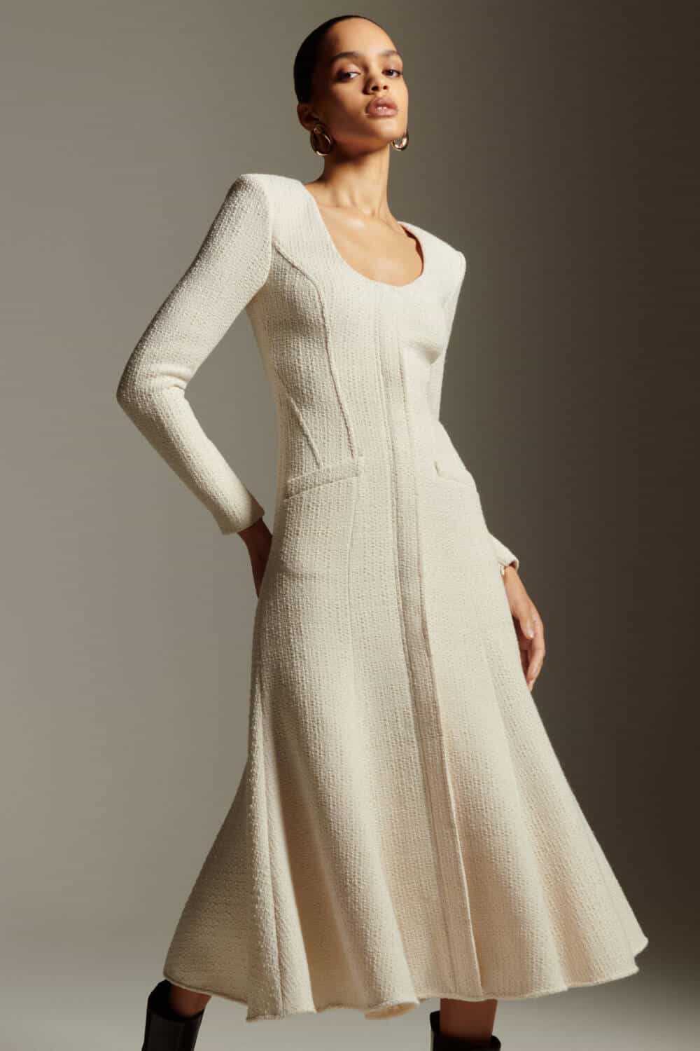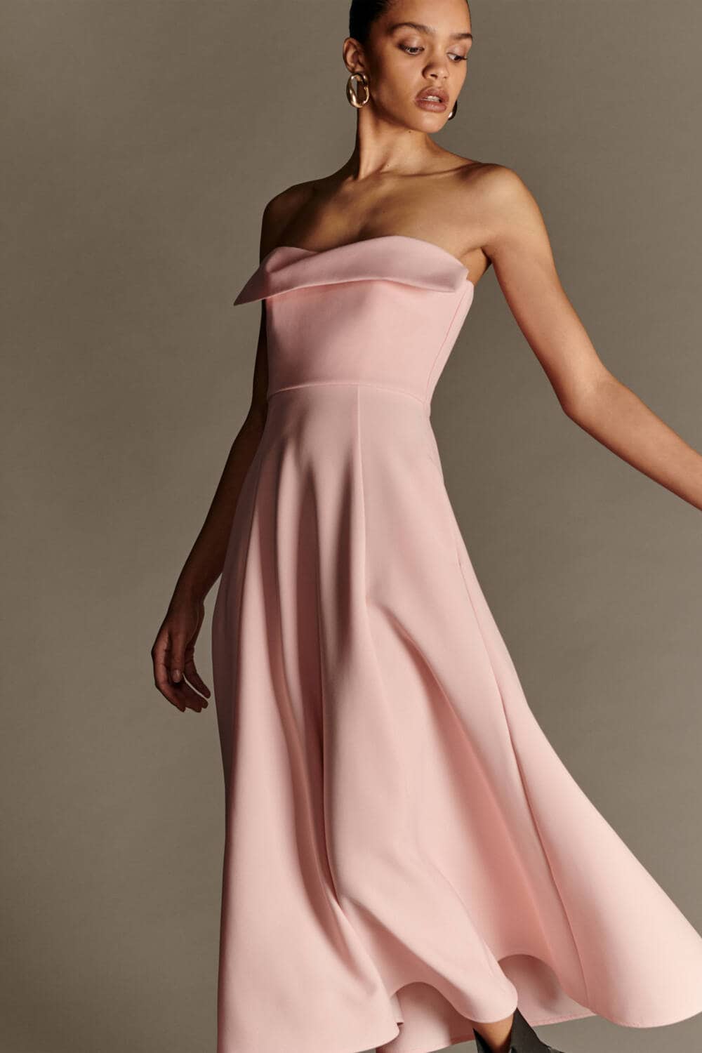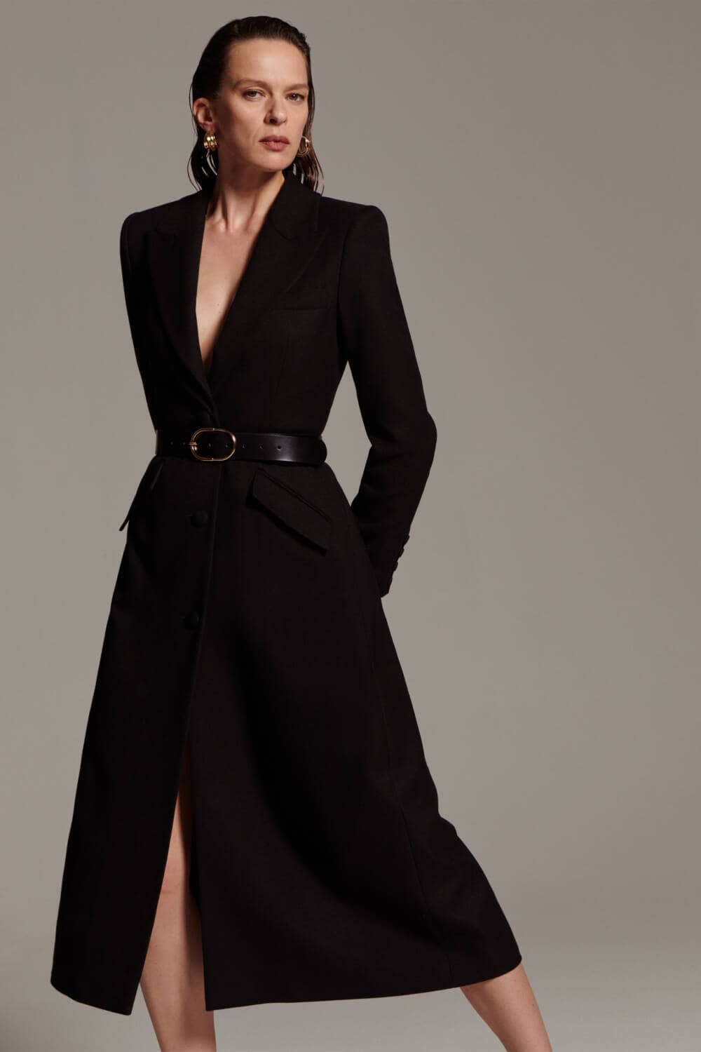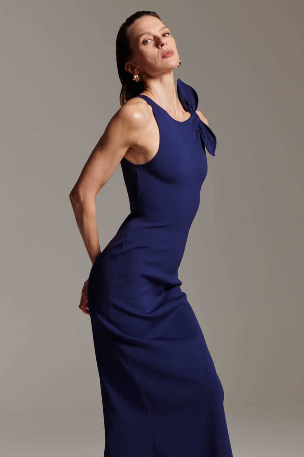 Roland Mouret, a purveyor of glamour and design excellence, has released his AW24 collection via lookbook, and it’s an alluring panoply of afternoon-tea-cum-red-carpet-ready dresses and suit variations (a long wool coat with a flared skirt, a strapless wool jumpsuits with wide legs, a slim aubergine tux, etc).
