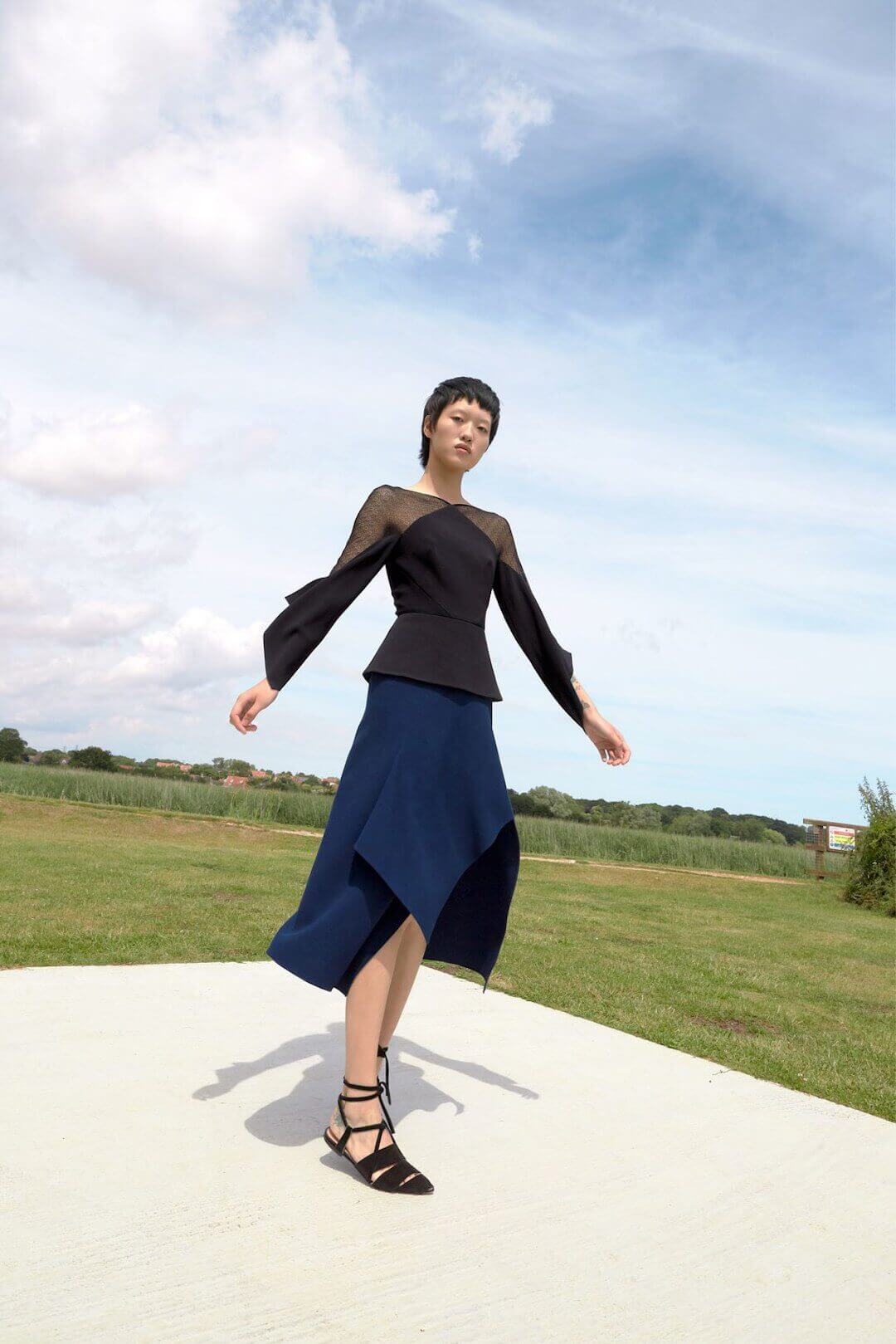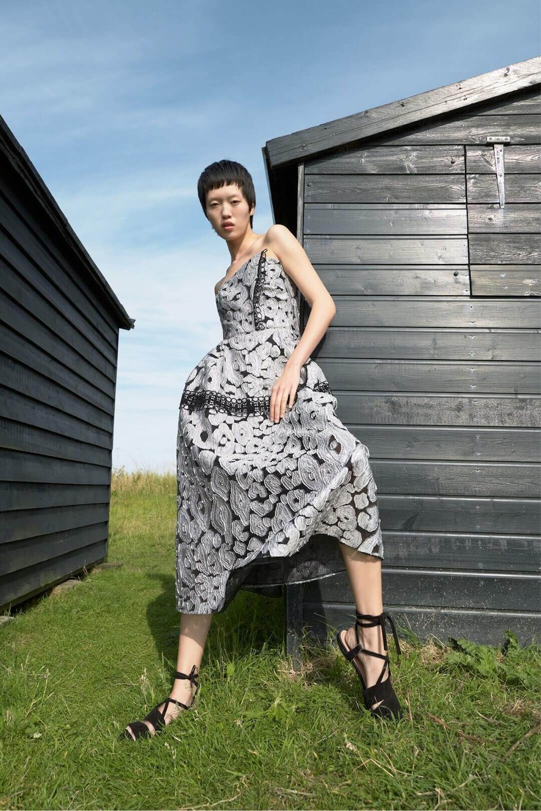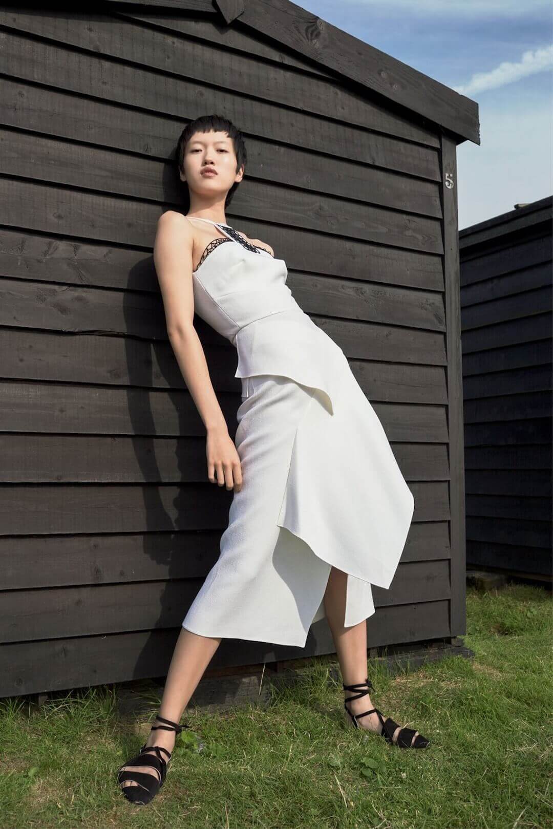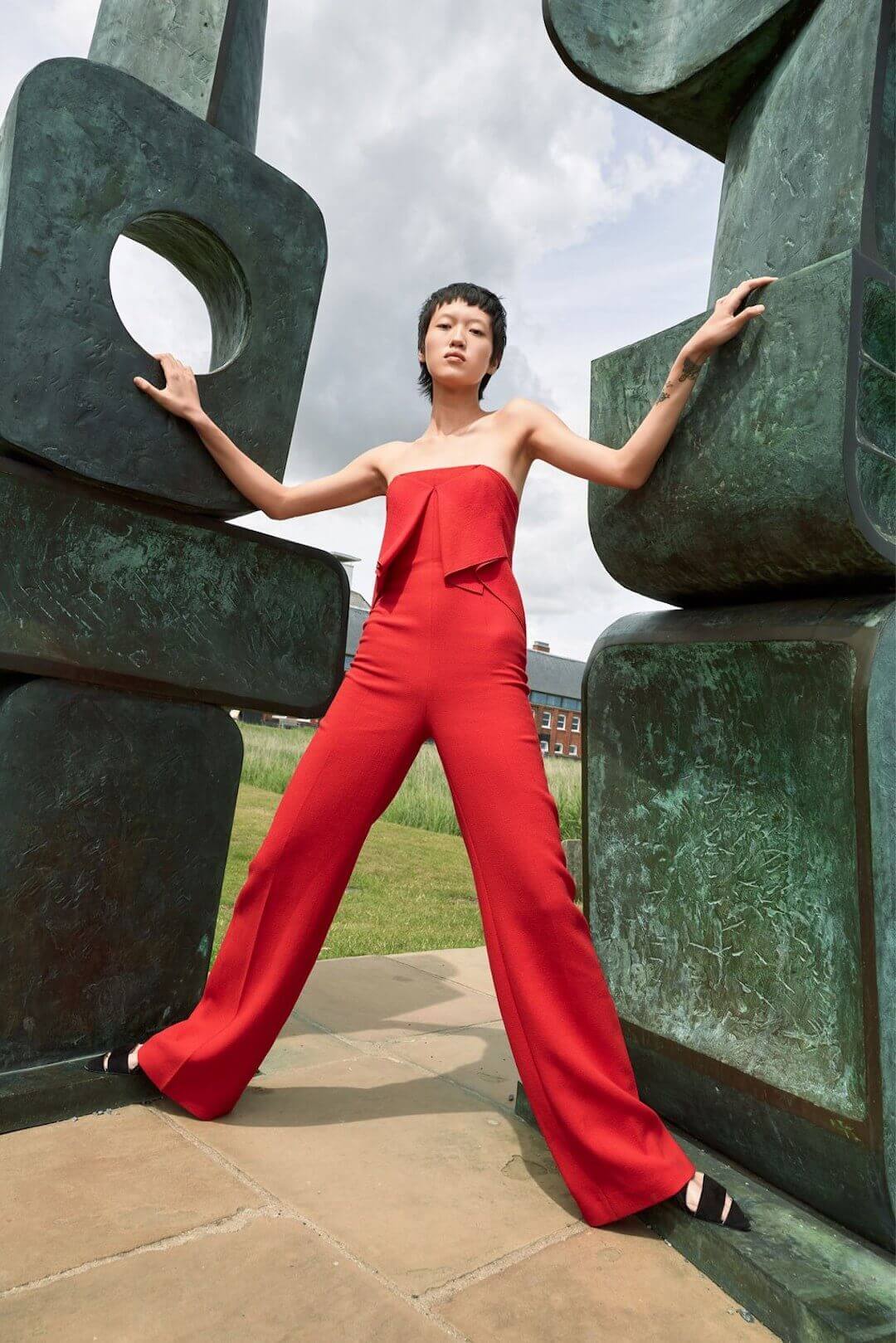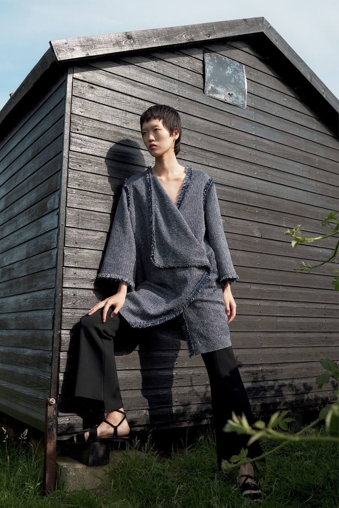We are all well aware that Mr Mouret is a safe pair of hands when it comes to serving up a dose of “Parisienne chic” season on season, but what is perhaps lesser known is the Frenchman’s infatuation with our own fair isle. Britain is where he has long called home – the Roland Mouret design studio is here and, as of two seasons ago, it’s where Roland has chosen to show his collections – swapping the vaulted halls of Paris for the Brutalist concrete lobby of London’s National Theatre to celebrate 20 years in the business. But it’s away from London for this, his Resort 2018 collection, and to the beach – not the promenades of St Tropez, or Cannes, where you may expect a Resort collection to naturally reside – but those along the Suffolk coastline, where Britain meets the rugged North Sea. Point here being – from Paris to Mayfair to the beaches of England, and just about all that comes between, these are clothes that women can wear anywhere they may choose to be. Because these are, at heart, clothes for women. Which may sound obvious, but it’s not always so – few people have Roland’s inimitable skill of draping and slicing fabric to create clothing that both flatters and emphasises the female form. Mr Mouret knows what women want. And here, whilst Mouret’s hallmark’s remain – namely, the focus on the body, and the waist, the overlapping, asymmetric panels – there is a renewed sense of looseness that has defined his collections of late. The handkerchief hemline is pervasive throughout this latest collection, lending the silhouette a welcome fluidity, so too the suspended neckline that falls away to reveal the shoulder. Layered peplums give easy volume, whilst tweed tailoring is cut to give his woman room to move. This Resort collection, then, becomes less about clothes to wear in far-off climes – but to wear every day, and to look mighty fabulous whilst doing so.