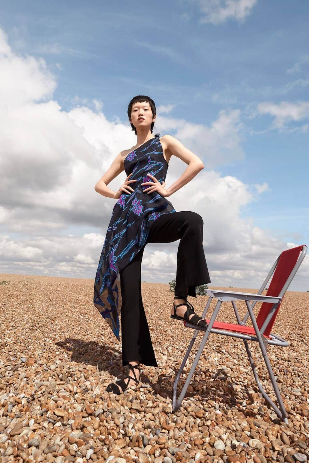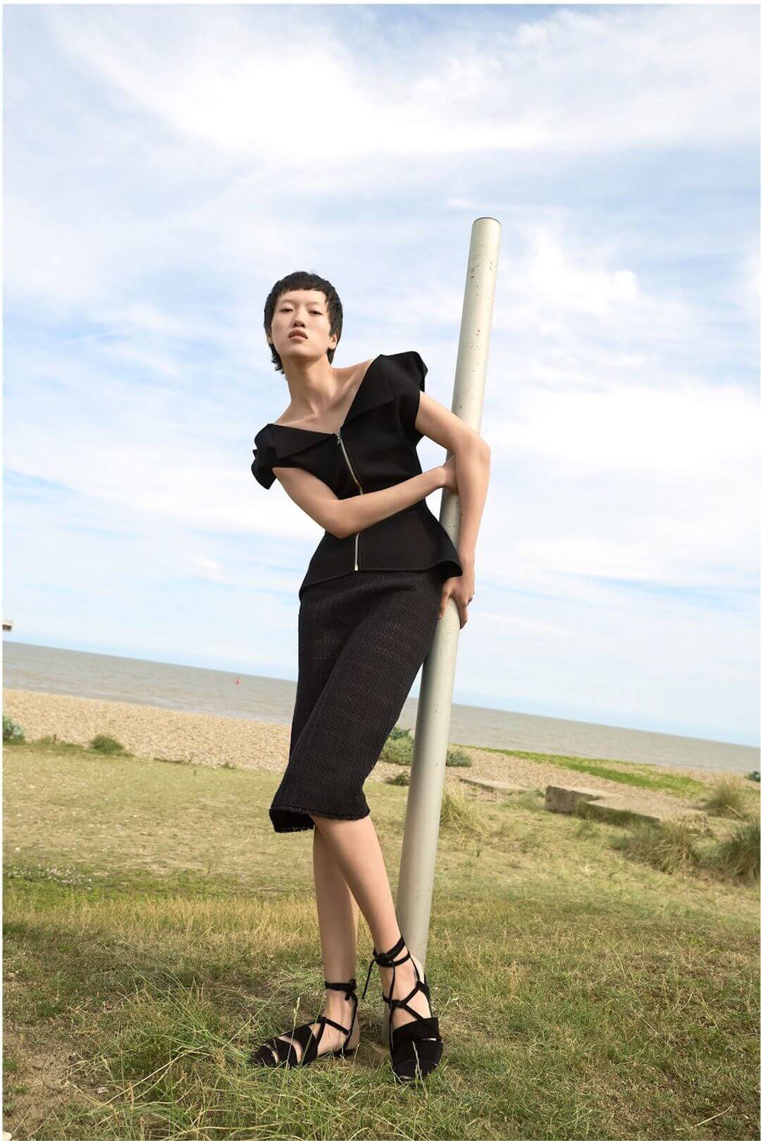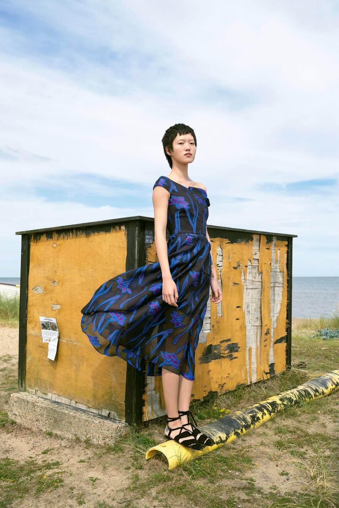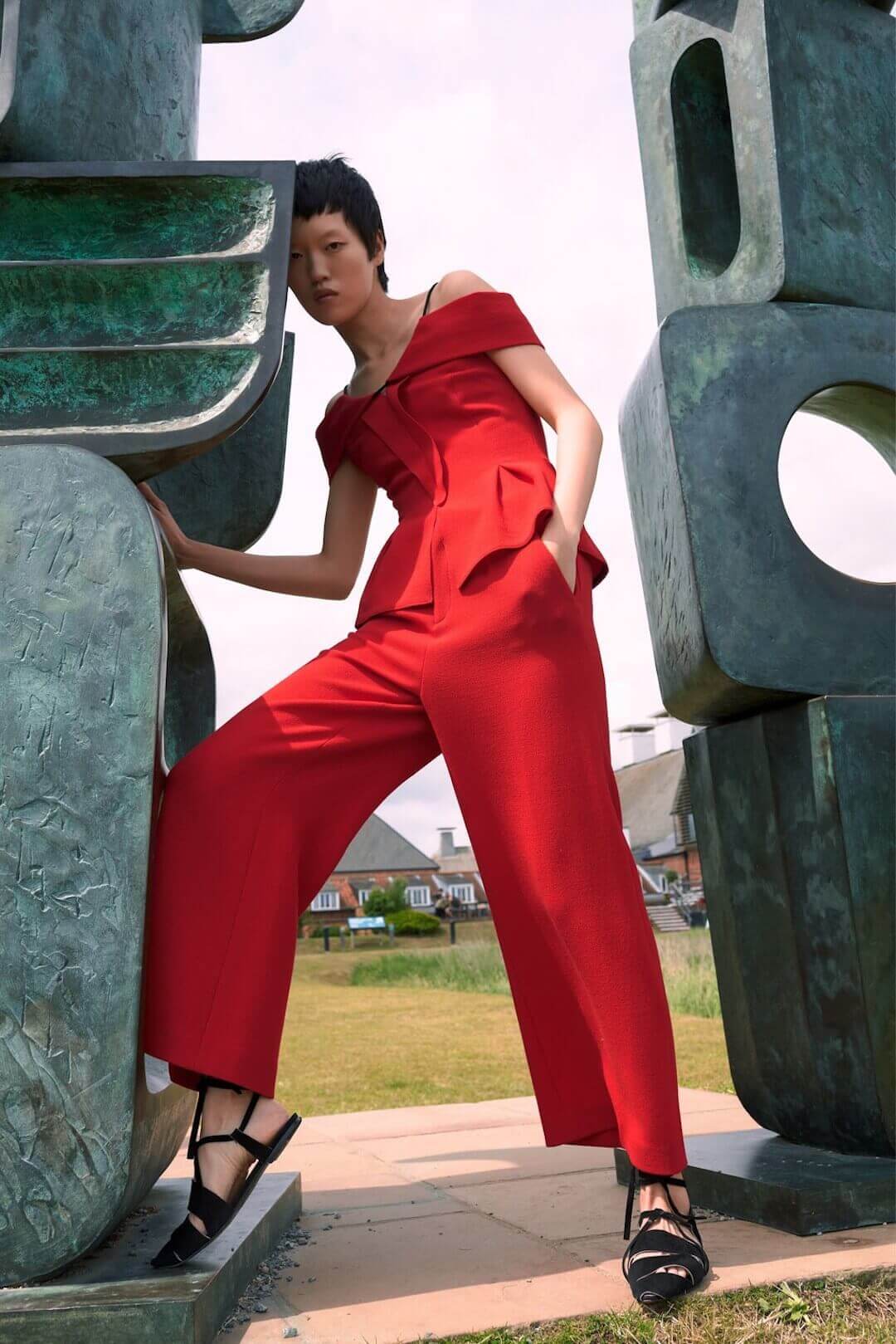 We are all well aware that Mr Mouret is a safe pair of hands when it comes to serving up a dose of “Parisienne chic” season on season, but what is perhaps lesser known is the Frenchman’s infatuation with our own fair isle. Britain is where he has long called home – the Roland Mouret design studio is here and, as of two seasons ago, it’s where Roland has chosen to show his collections – swapping the vaulted halls of Paris for the Brutalist concrete lobby of London’s National Theatre to celebrate 20 years in the business. But it’s away from London for this, his Resort 2018 collection, and to the beach – not the promenades of St Tropez, or Cannes, where you may expect a Resort collection to naturally reside – but those along the Suffolk coastline, where Britain meets the rugged North Sea. Point here being – from Paris to Mayfair to the beaches of England, and just about all that comes between, these are clothes that women can wear anywhere they may choose to be. Because these are, at heart, clothes for women. Which may sound obvious, but it’s not always so – few people have Roland’s inimitable skill of draping and slicing fabric to create clothing that both flatters and emphasises the female form. Mr Mouret knows what women want. And here, whilst Mouret’s hallmark’s remain – namely, the focus on the body, and the waist, the overlapping, asymmetric panels – there is a renewed sense of looseness that has defined his collections of late. The handkerchief hemline is pervasive throughout this latest collection, lending the silhouette a welcome fluidity, so too the suspended neckline that falls away to reveal the shoulder. Layered peplums give easy volume, whilst tweed tailoring is cut to give his woman room to move. This Resort collection, then, becomes less about clothes to wear in far-off climes – but to wear every day, and to look mighty fabulous whilst doing so.