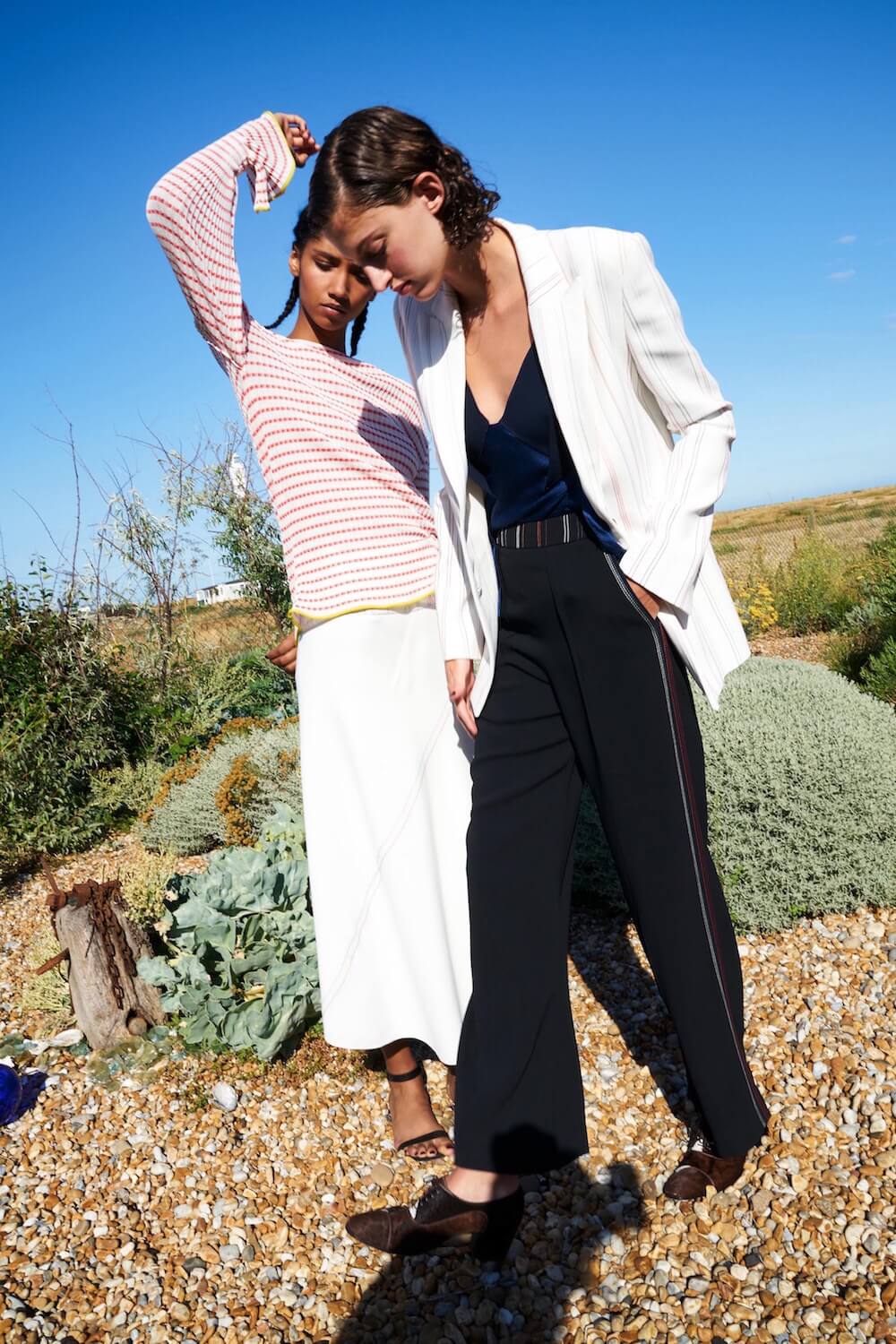 There’s nothing that makes a winter day feels colder than a set of images filled with bright sunshine and leggy models looking warm in some slinky, utterly fabulous resortwear. And so today feels even colder than it actually is, as we scroll through the Roland Mouret Resort 2019 lookbook. Amber Witcomb and Aiden Curtis, two stellar faces are showing off perfectly draped printed dresses, lush summer knits and some great tailoring too. It’s your usual Mouret recipe, with the volume turned all the way up. The men’s and womenswear codes are permanently intertwined – silver sequins mix with Prince of Wales checks, robust mesh against a soft silk. The silhouettes of the looks continue the conversation, with the fluid lines of dresses set against the precisely-cut jackets. The collection might be inspired by the late photographer Jacques Henri Lartigue and his muse/ lover Renee Perle, but styled by our Lady Neophitou, the clothes take on her signature vision of modern-day sex-appeal. Hitting that spot between function and fashion, day and night, casual and formal. The middle-ground has never looked more fabulous.