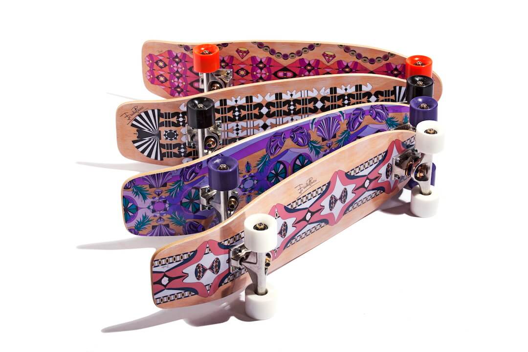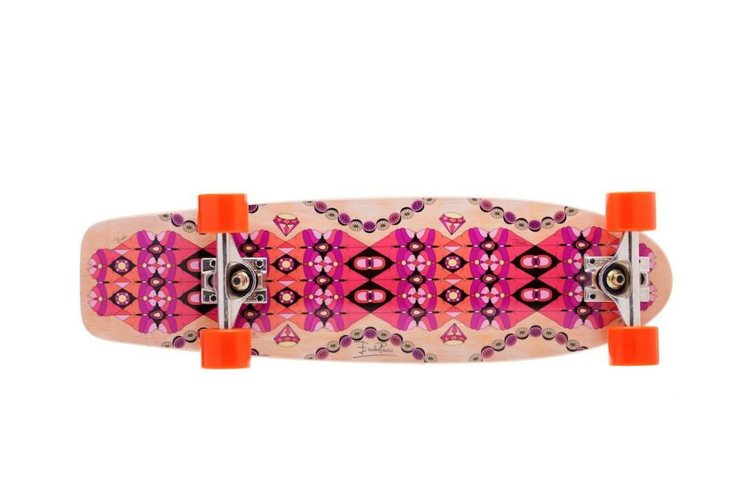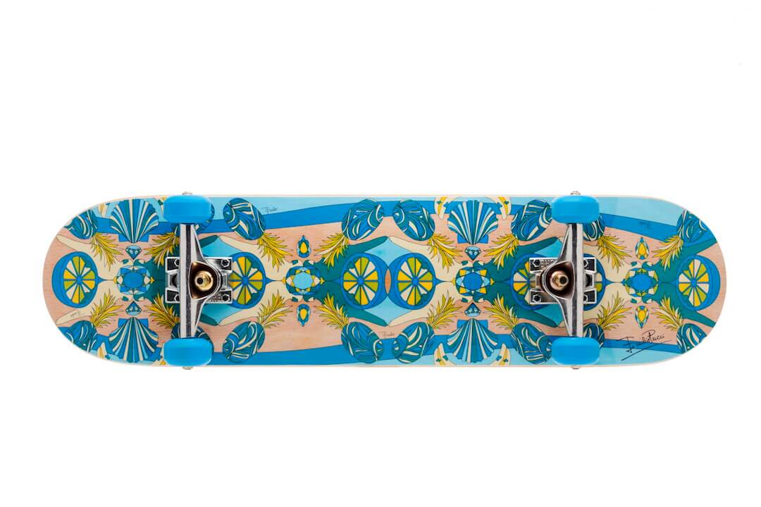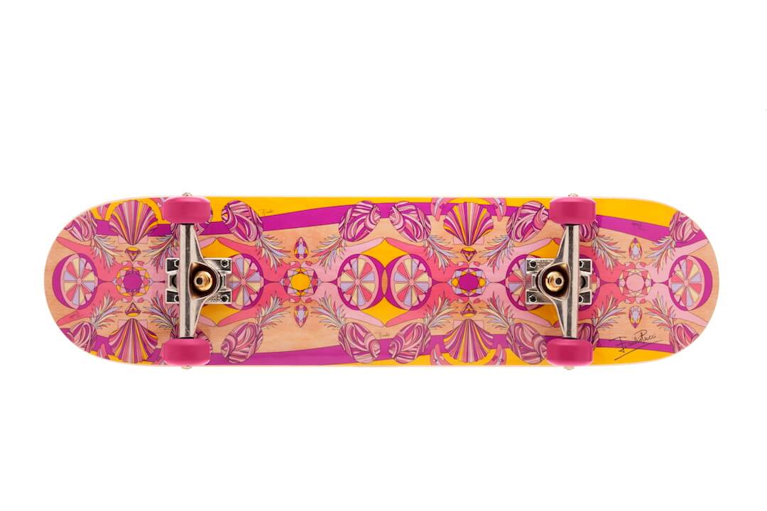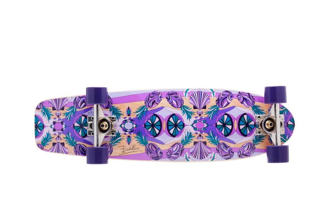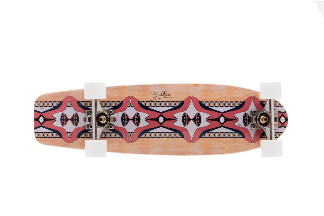 We’ve said it once and we’ll say it again. Skaters are cool. Even after Avril Lavigne almost ruined it for everybody. In fact, I spent much of my youth wishing I was dexterous enough be able to wield one – unfortunately I lack both the balance and physical skill to contemplate it as a form of transport. If I did have the necessary attributes, however, I would certainly do it on an Emilio Pucci skateboard – they’ve just designed their first ever, made in collaboration with students of Art and Design at Switzerland’s University ECAL. Or I’d just hold it to look cool. I’m always open to a new accessory. The skateboards themselves are as bold and vivid as you would expect from the Italian house – in their words, inspired by youth and decorated with “irreverent patterns brimming with motifs of Italian culture.” There are two different shapes available – the modern Street shape or the old school Cruiser. So roll around London’s streets, or just hang it on your wall. A four-wheeled work of art.