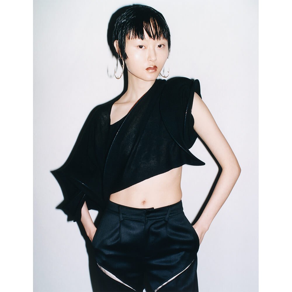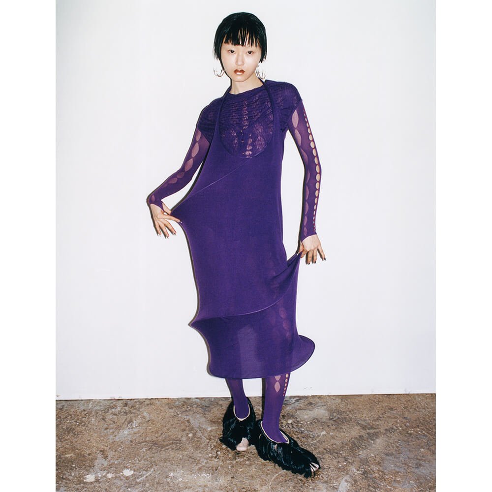 The designer compared one of the garments, a violet gown, to the Möbius strip – but other pieces have a kind of mathematical balance to them ,as well. Zhou’s genderless approach means that there are no distinctions between womenswear and menswear, and garments have an evergreen and intimate quality to them. Everything was accompanied by the inclusive, conscious approach to the body that has become synonymous with the brand. Both tight and oversize fits were present, forming a seductive net of layers.
