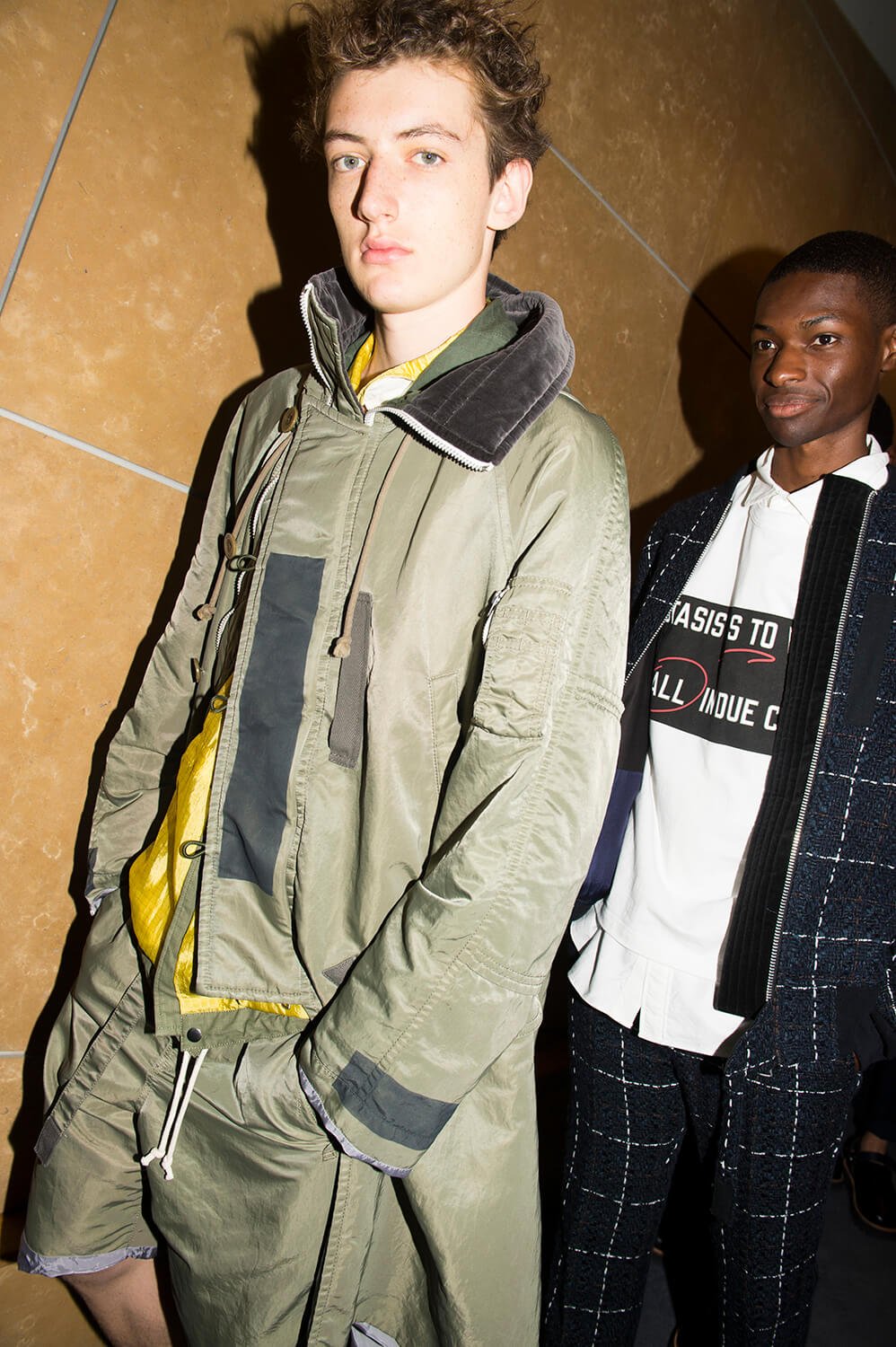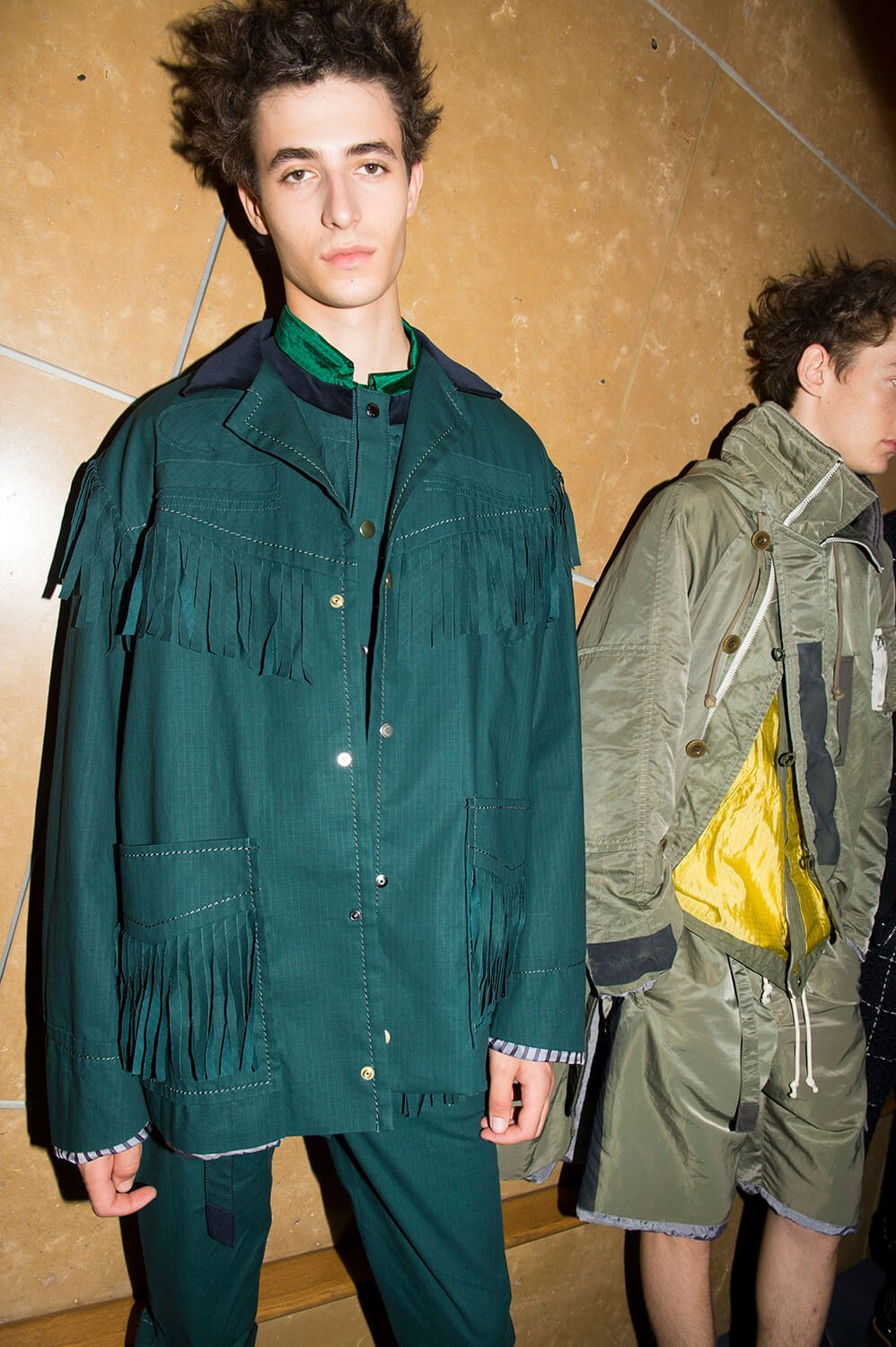 There was a hiker meets wild west moment at Sacai this morning. Sporty quilted outerwear had a suede yoke across the chest, like a cowboy’s shirt, anoraks, in brilliant blue, fell away into tassels. There were plaids and checks, Navajo-style prints, shoes in collaboration with Hender Scheme, described on the release as a “deconstructed hybrid of two cowboy boot archetypes.” Really though, this was only one part of this collection. It’s impossible to sum up Chitose Abe’s work into a singular theme because as we’ve said once, and we’ll probably say many many times again, the designer is queen of the mash-up. It’s this impressive way she brings disparate elements together into a collection that feels whole.