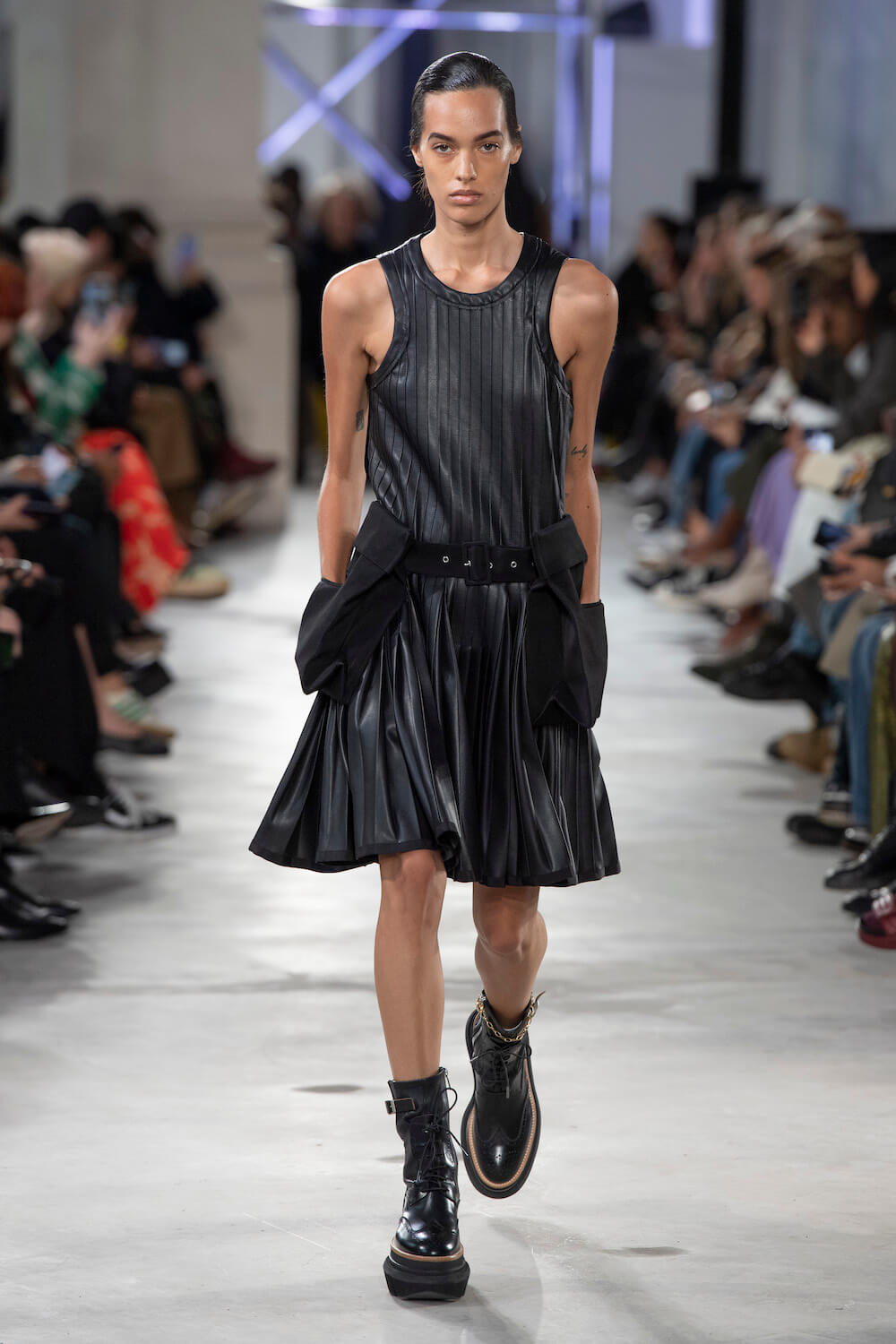 Sacai’s Chitose Abe is a designer who thrives when clothing gets complex. Her deft pattern-cutting ability – and singular approach to welding unlikely garment pairings together – have led to her hybrid-heavy collections becoming a staple on the Paris schedule.