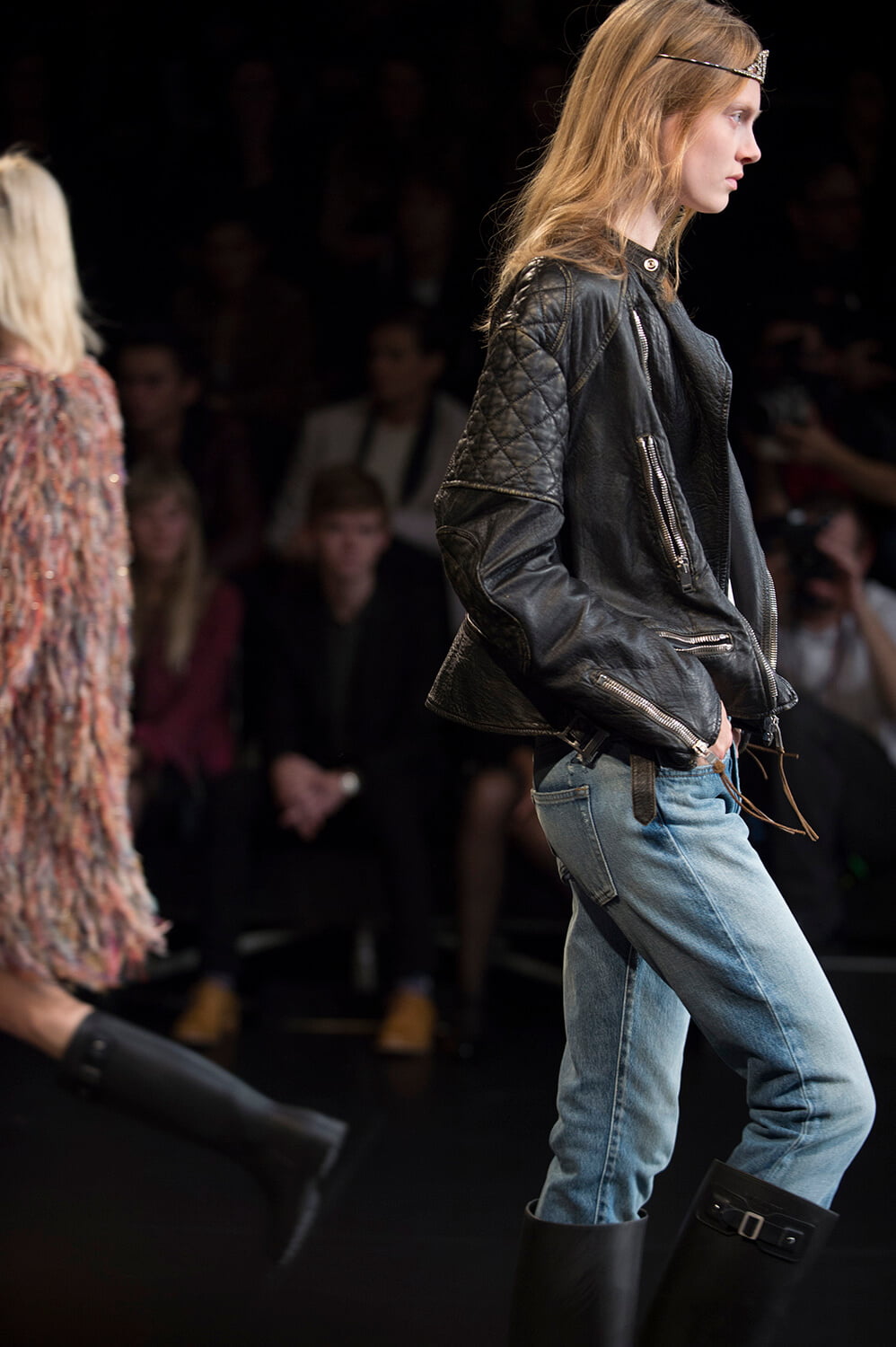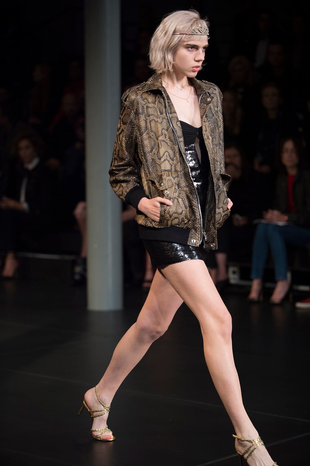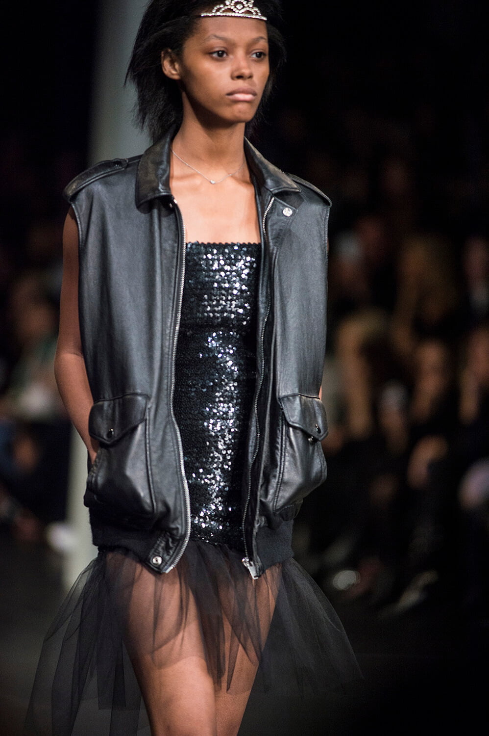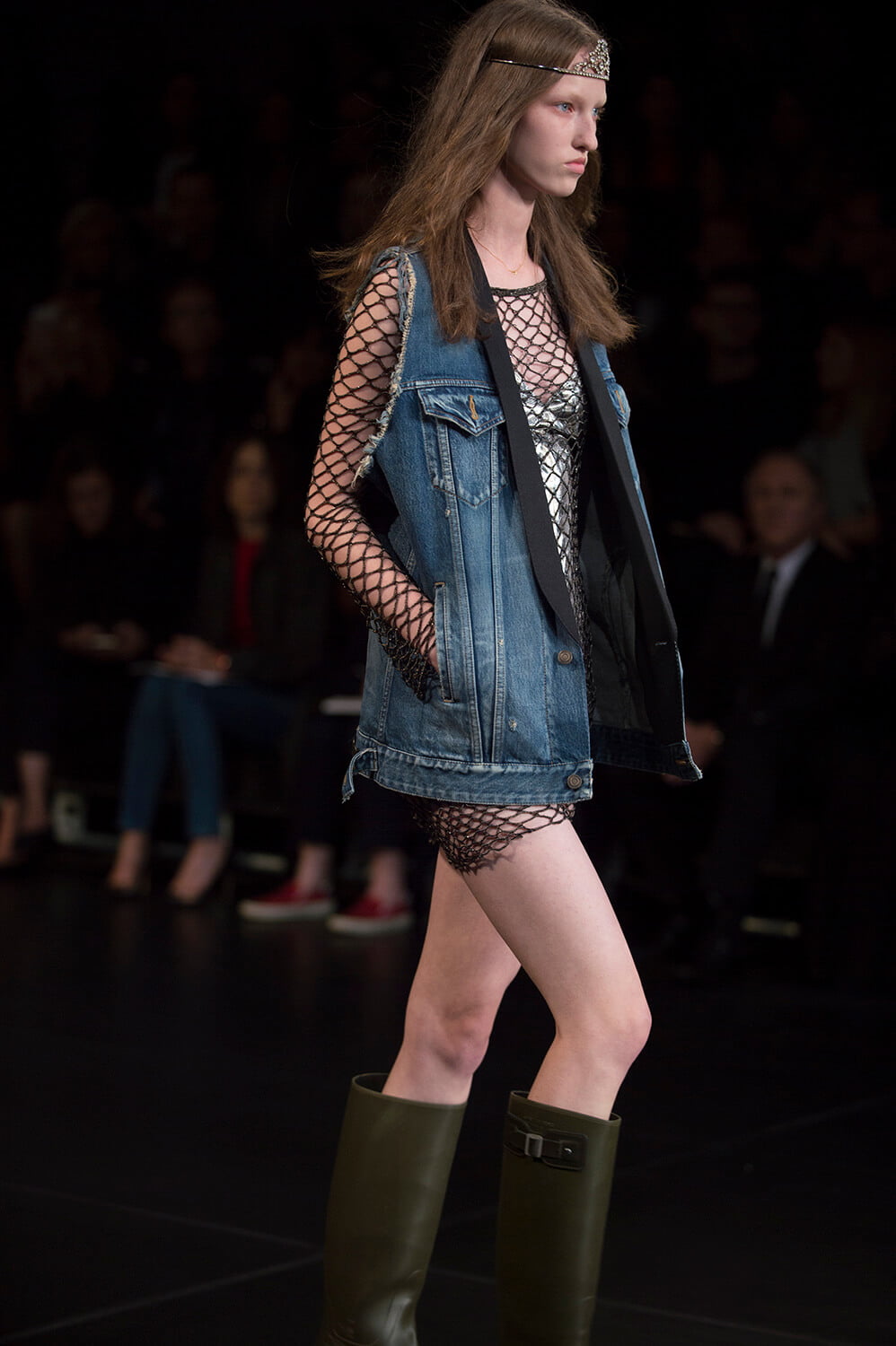 Well, that’s sold it. After watching Saint Laurent’s show last night, it’s decided – we’re stripping off for spring. Forget demure, cover-it-up dressing. This was all about lingerie lingerie lingerie – slip dresses, sheer lace, nipples. Bras and knickers. It was all a bit ravaged beauty queen – the little tiaras, sequin embellishments. Mixed with some Courtney Love grunge – this is Hedi, after all – courtesy of those thrown on parkas and worn-in animal print coats that offered a little cover up. Right, we’re off to buy some knickers and tiara. And maybe a parka too – it is a little cold outside today.