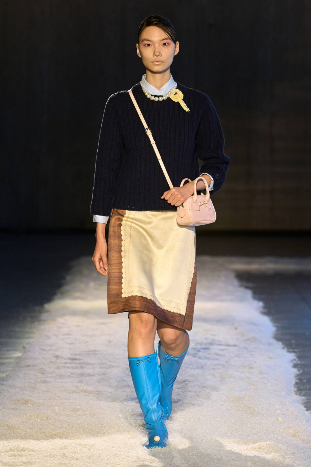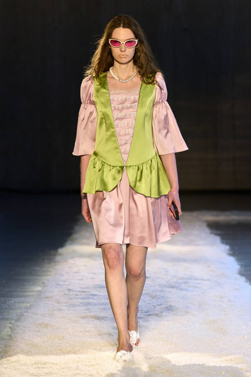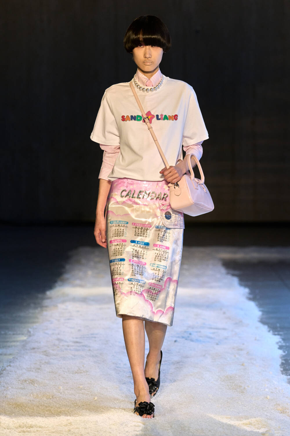 Over the last two years, Sandy Liang has experienced a number of major milestones. She got married in 2023 and welcomed her first child last year. But while life has undergone significant changes, her runway shows remain consistent – a celebration of girlhood that has become a hallmark of the brand. The Sandy girl is distinctive. She loves a big bow, chunky Mary Janes, and a little skirt. She’s cool and unabashedly feminine with a deep nostalgia for the late ’90s and early aughts. But much like the designer herself, there’s room to grow and evolve. And for autumn 2025, Liang’s collection did exactly that.