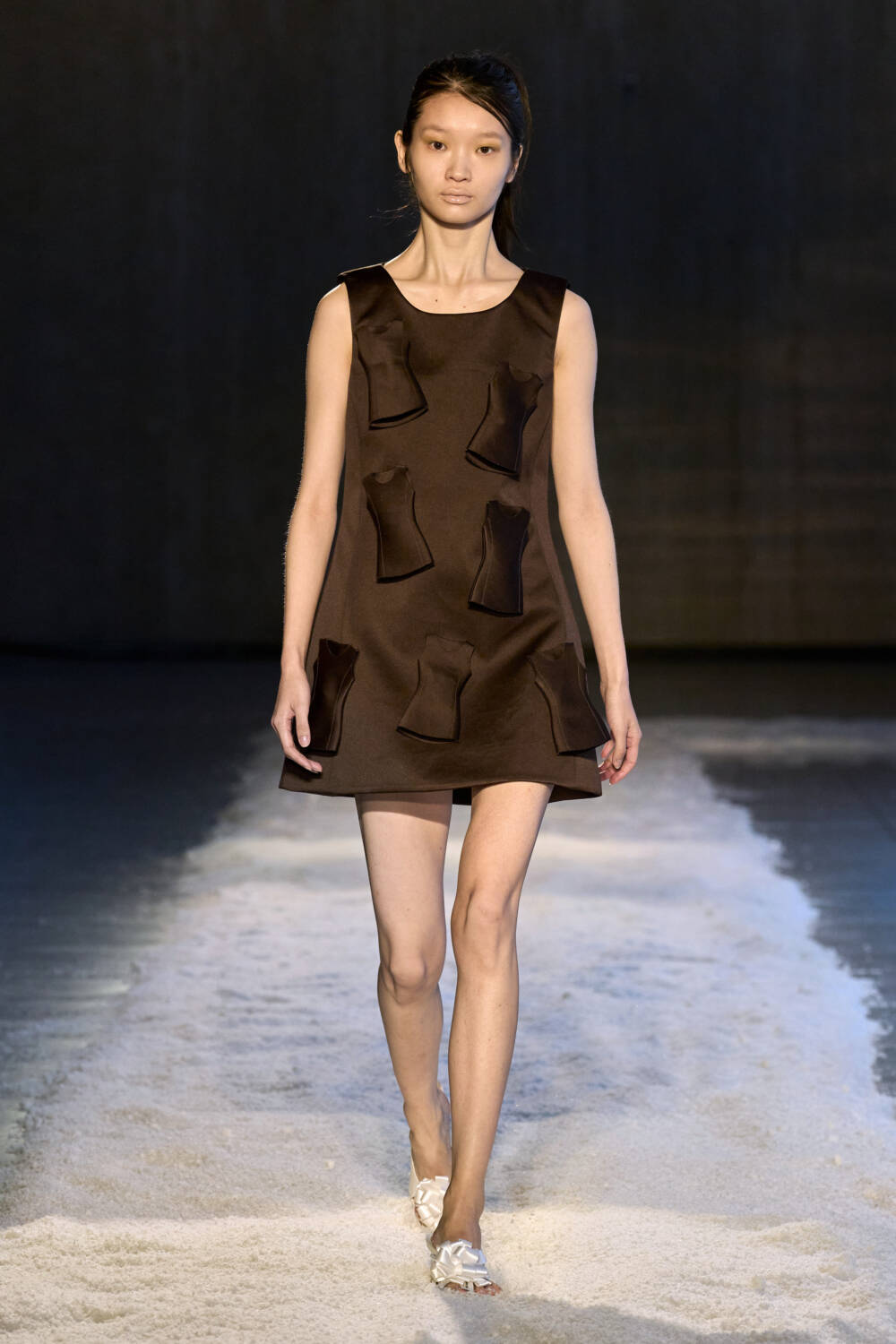 Where she excels, however, are in the IYKYK moments central to Liang’s Chinese American heritage. The penultimate look consisted of a coated skirt emblazoned with a calendar that recalled pencil cases and agendas one could find in a Sanrio store. Another skirt, upon closer inspection, were the instructions on folding paper stars, a rite of passage for many teens. Even the soundtrack felt reflective of the mishmash of cultural references that come with being Asian American from the opening Faye Wong song to Sky Ferreira to the techno remix of Ryuichi Sakamoto’s Merry Christmas Mr. Lawrence. And perhaps that’s how you know you’re grown up – embracing all of your multitudes without ever losing your sense of wonder and fun.