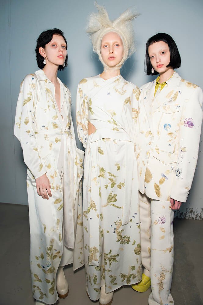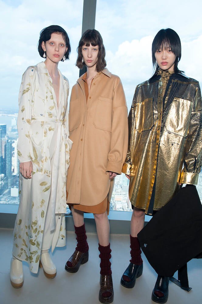 Aptly dubbed the Countryside Collection, Lak turned to faithful wool mills in England, Ireland and the Netherlands to craft this season’s offerings. Chunky sweaters were hand-finished in a family-owned business just off the coast of Guernsey, whilst the Donegal Tweed was sourced from a mill buried within the Irish countryside that was founded in the 1920s. More locally, golden foliage discovered in NYC’s plant district coated streamlined dresses, oversized shirting, and bags that were swollen to epic proportions. When smothered onto fabric, it looked 2D; slithers of black intertwined within the shine resembling that of tree bark. Rustic oranges were of plenty, as were vivid yellows and a mossy turquoise that when frayed appeared like algae. These clothes are at one with nature and in tune with the times – equipped to accompany the city girl on her every adventure.