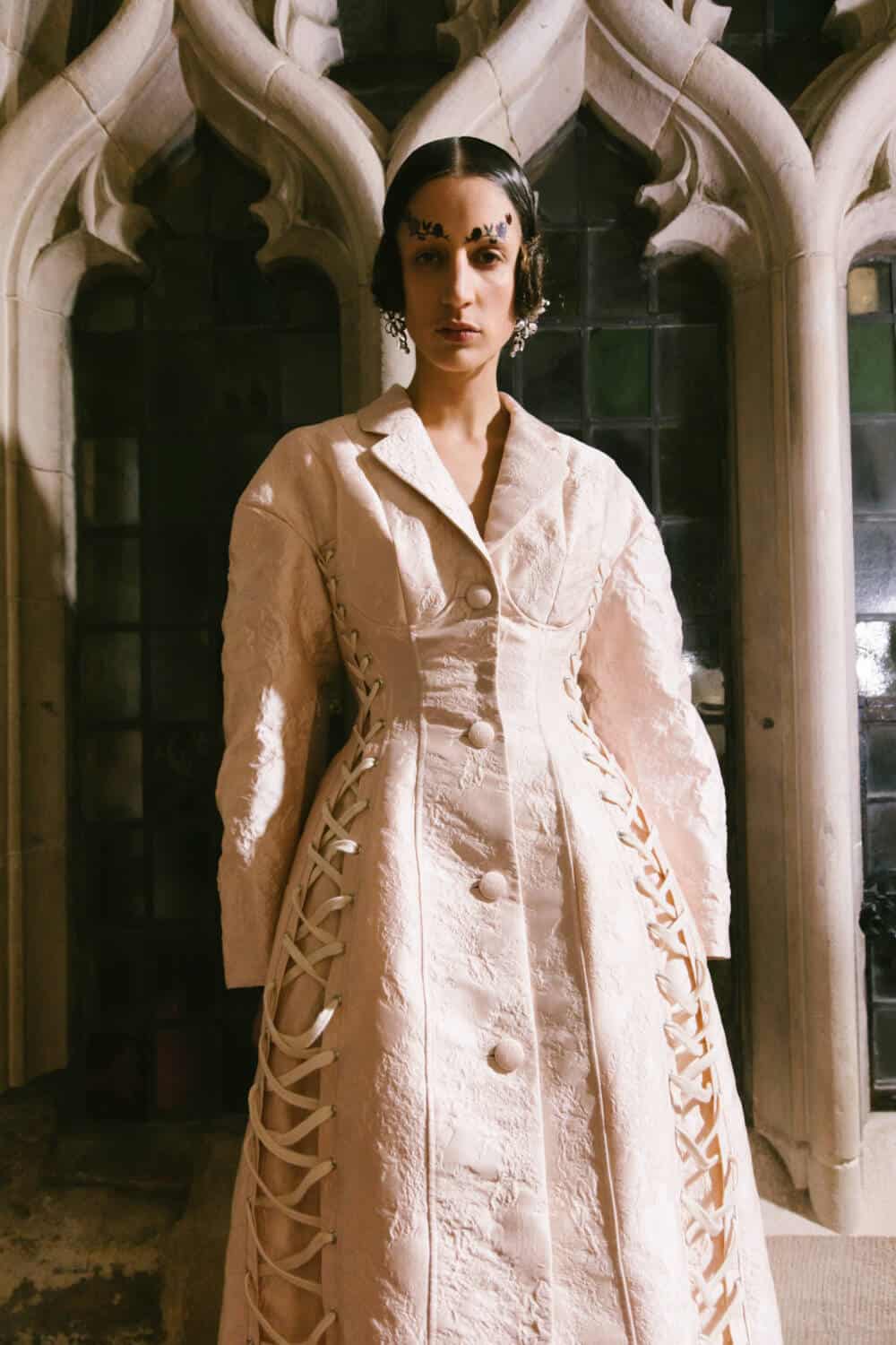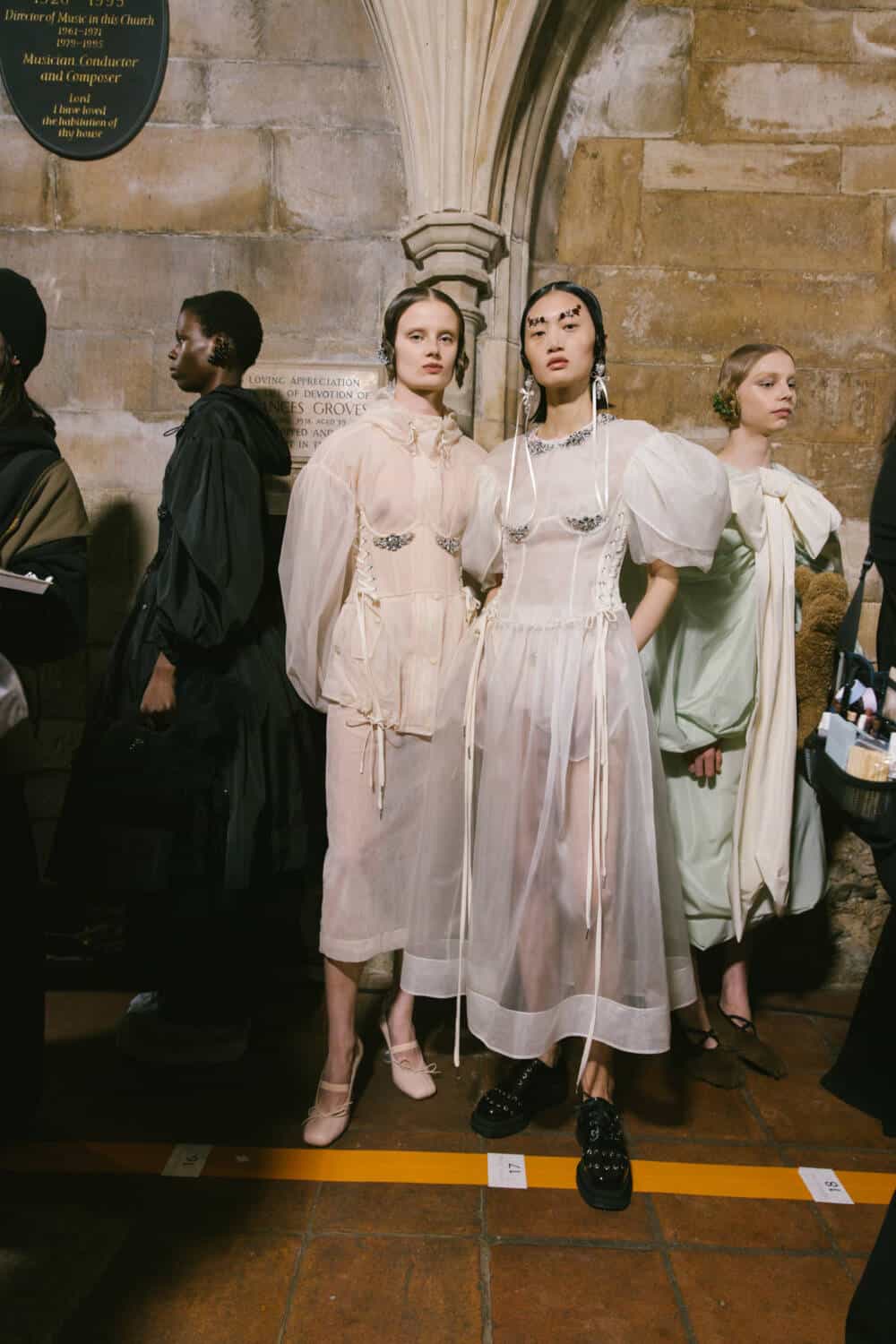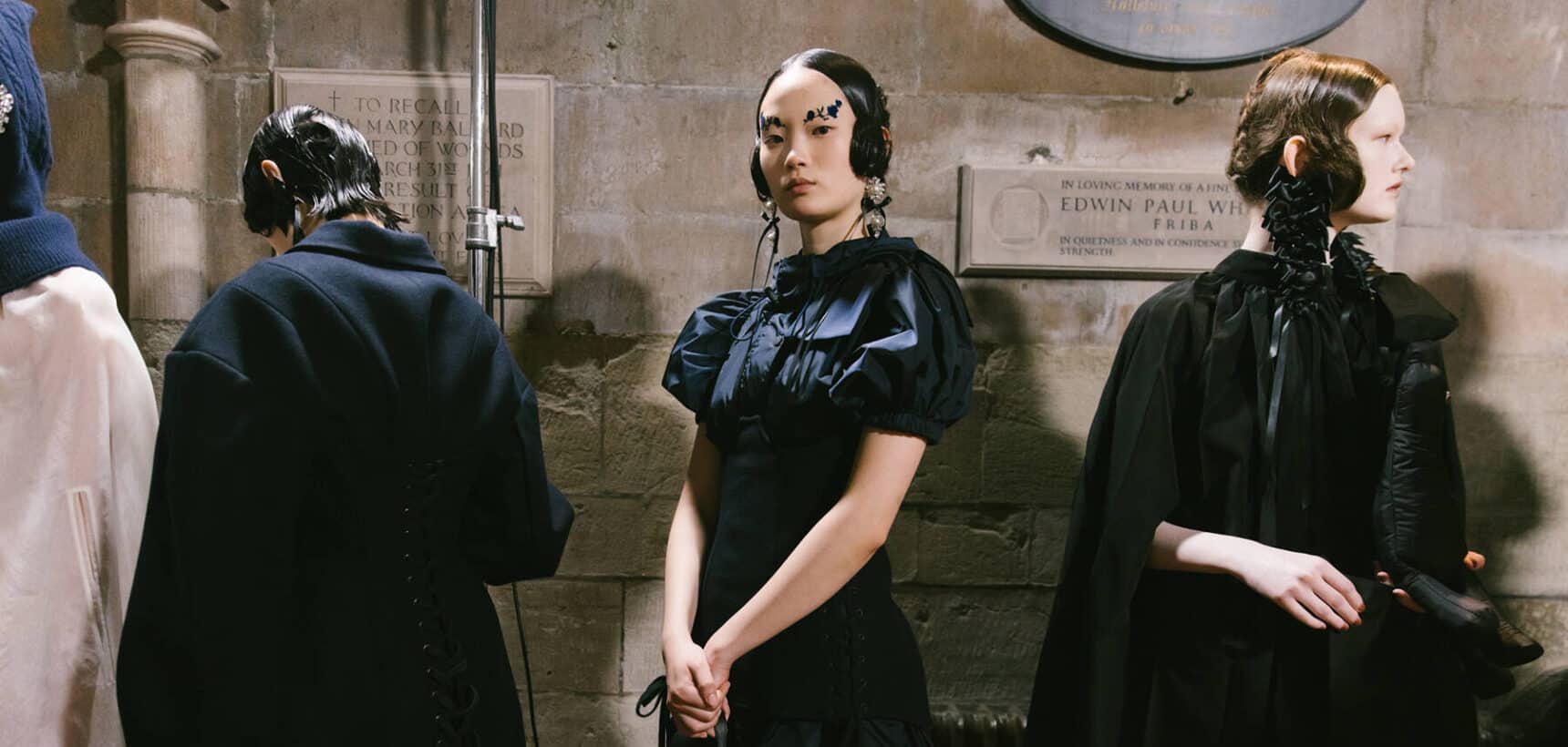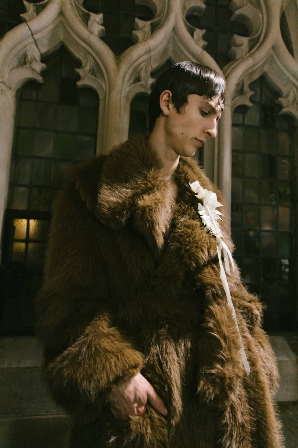 This was the final part of a triptych of collections that Simone Rocha worked on simultaneously. She described last season’s SS24’ show as “the dress rehearsal” her Gaultier couture collection, shown in July, as “the parade” and this AW24 offering as “the wake”. Presenting in a medieval church in East London, with the air perfumed with incense, Rocha took a deep dive into fashion history. The designer studied preserved garments in archive collections including Queen Victoria’s mourning dress, which is stored at Hampton Court Palace. The theme sat well with her trademark poetic, Irish gothic aesthetic. It was the element of protection from those historical garments that she felt was most relevant in 2024. “The fact that these clothes were very much her security blanket and like a uniform,“ said the designer. During her research she became interested in underwear and the garments closest to the skin, crafting beautiful corset jackets and coats. Then she became fascinated by the skin itself – expressing its beauty and vulnerability with a series of sensual veiled and sheer looks. Little toy-dog bags were an interpretation of a ‘grim’ – a canine charm associated with death. They evolved from an embroidery on tulle, into the playful fluffy zip top totes, that brought to mind a child’s pyjama case. The designer explained she wanted a naive moment to balance the grown-up elements of the wake. Faux fur bustles and bejewelled ear muffs, added to the charm whilst a Crocs collaboration – chunky plastic clogs glinting with Rocha’s signature pearl charms – also brought a 21st Century quirk, and underlined the accessories prowess that has supercharged her brand.