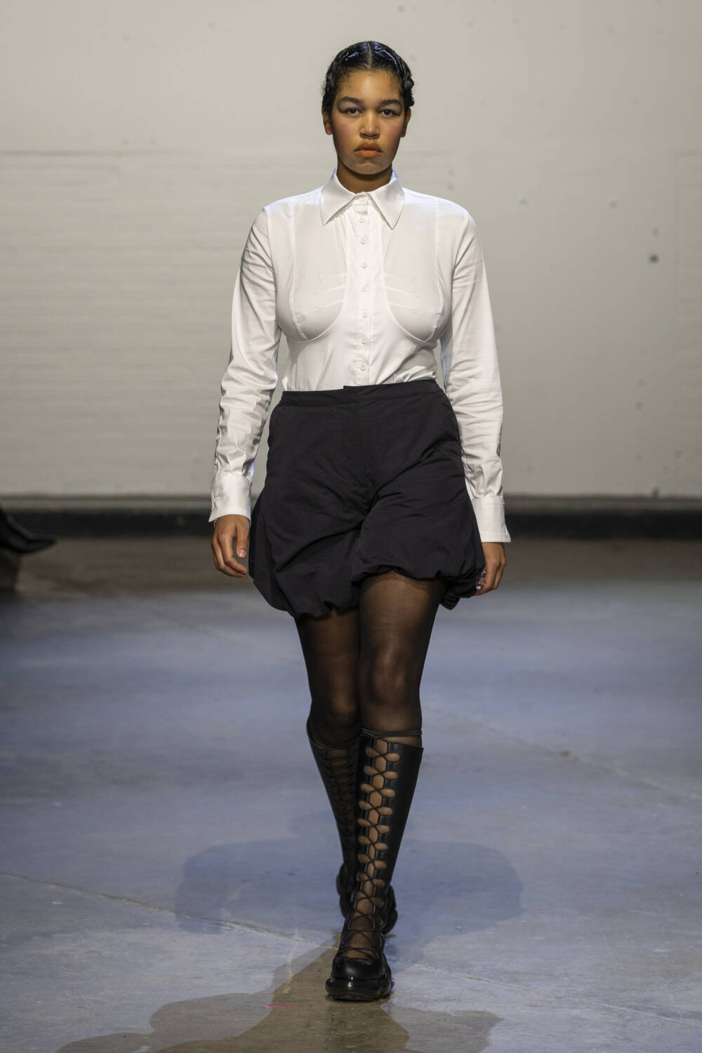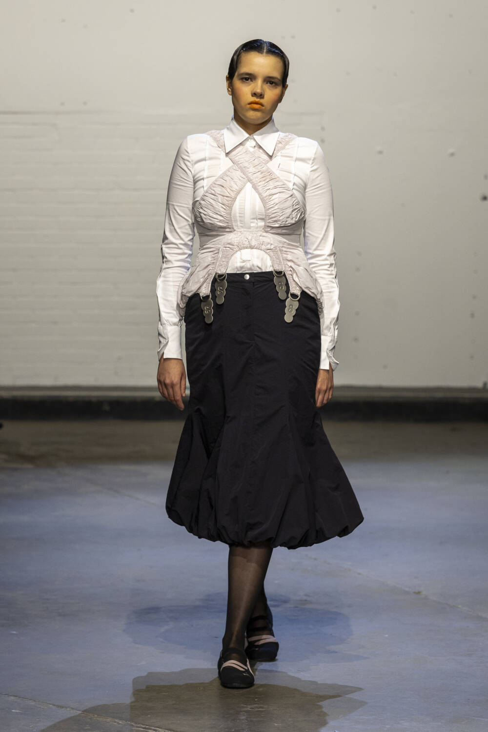 Sinéad O’Dwyer’s AW25 collection was a powerful reflection on the universe she’s built – one populated by rebellious schoolgirls, brooding musicians and women who move through the world with quiet defiance. As her tenure with BFC’s Newgen scheme comes to a close and she edges closer to fashion’s big leagues as an LVMH Prize semi-finalist, this collection felt like both a culmination and a step forward.