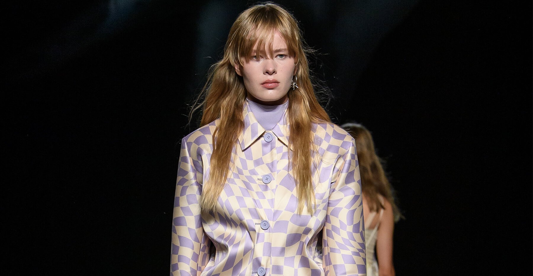 If debutants went to raves they might wear Sportmax SS23. The collection riffed on the swags and drapes of old school gowns but reimagined them for acid house aficionados. Bustle-back satin skirts were worn low-slung on the hips, with psychedelic crop tops to show acres of midriff. That look was also shown as unisex – a first for Sportmax.
