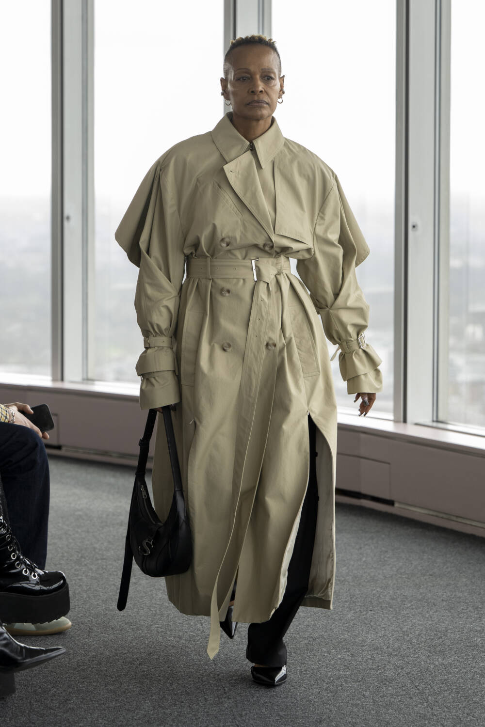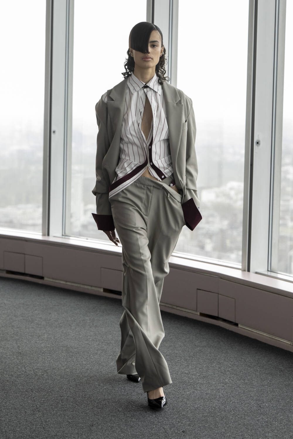 SRVC’s decided to take to the skies yesterday, opting for the dizzying heights of the 34th floor of London’s BT Tower for its AW25 catwalk – the first brand ever to do so. A considered choice to showcase the Ricky Wesley Harriott-helmed brand’s goal of communicating through clothes, what unfolded within the glass rotunda show space was an incisive investigation of how fashion can help you defend yourself against the relenting demands of everyday life.