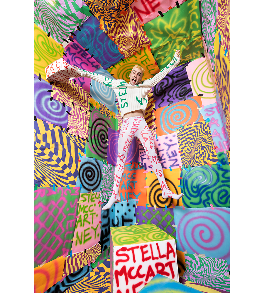 The London College of Fashion grad wanted to bring his own unique flair to the capsule collection: “I thought a lot about what I would achieve by doing this, I didn’t want to just provide some artworks and the rest was left to them. It was important that I could input into every creative aspect of the project and build a world around the clothes. Stella completely allowed me to do this, I’ve been able to realise ideas not possible with my own brand and the entire process has been incredibly exciting.”