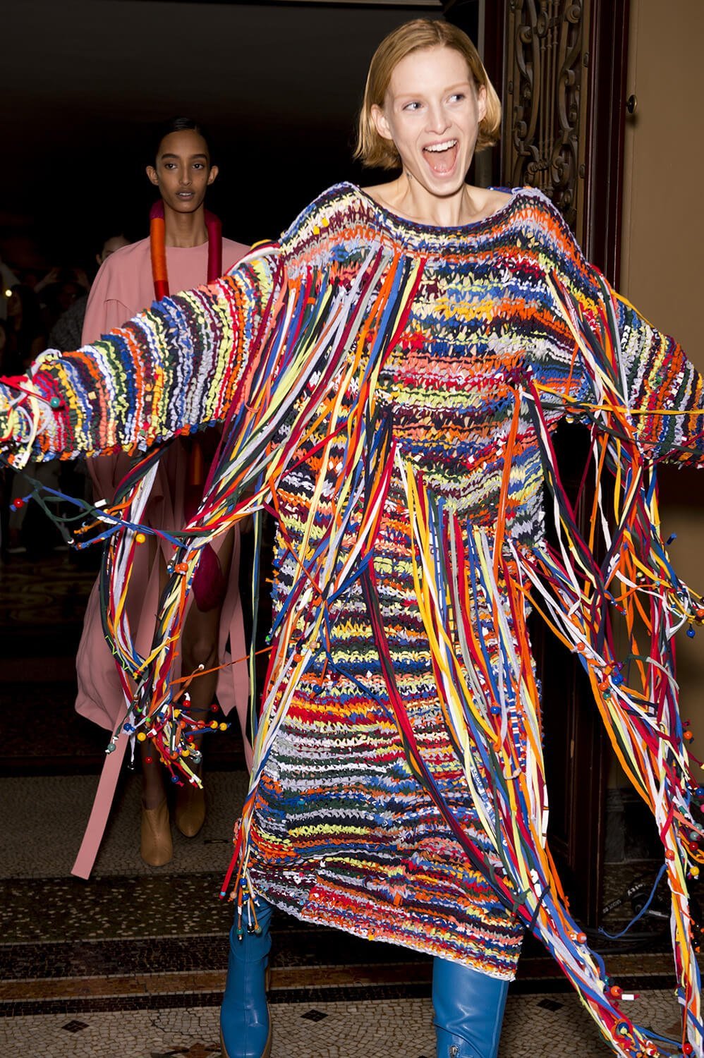 Stella knows how to make a good coat. Hers boasted strong shouldered silhouettes but oozed real-life wearability – and not just for one season. Power shouldered silk dresses had an unapologetic oomph. Stompy faux leather thigh boots were practical but sleek. These are the kind of clothes you’d DM your best girlfriends about. Consider yourself told.