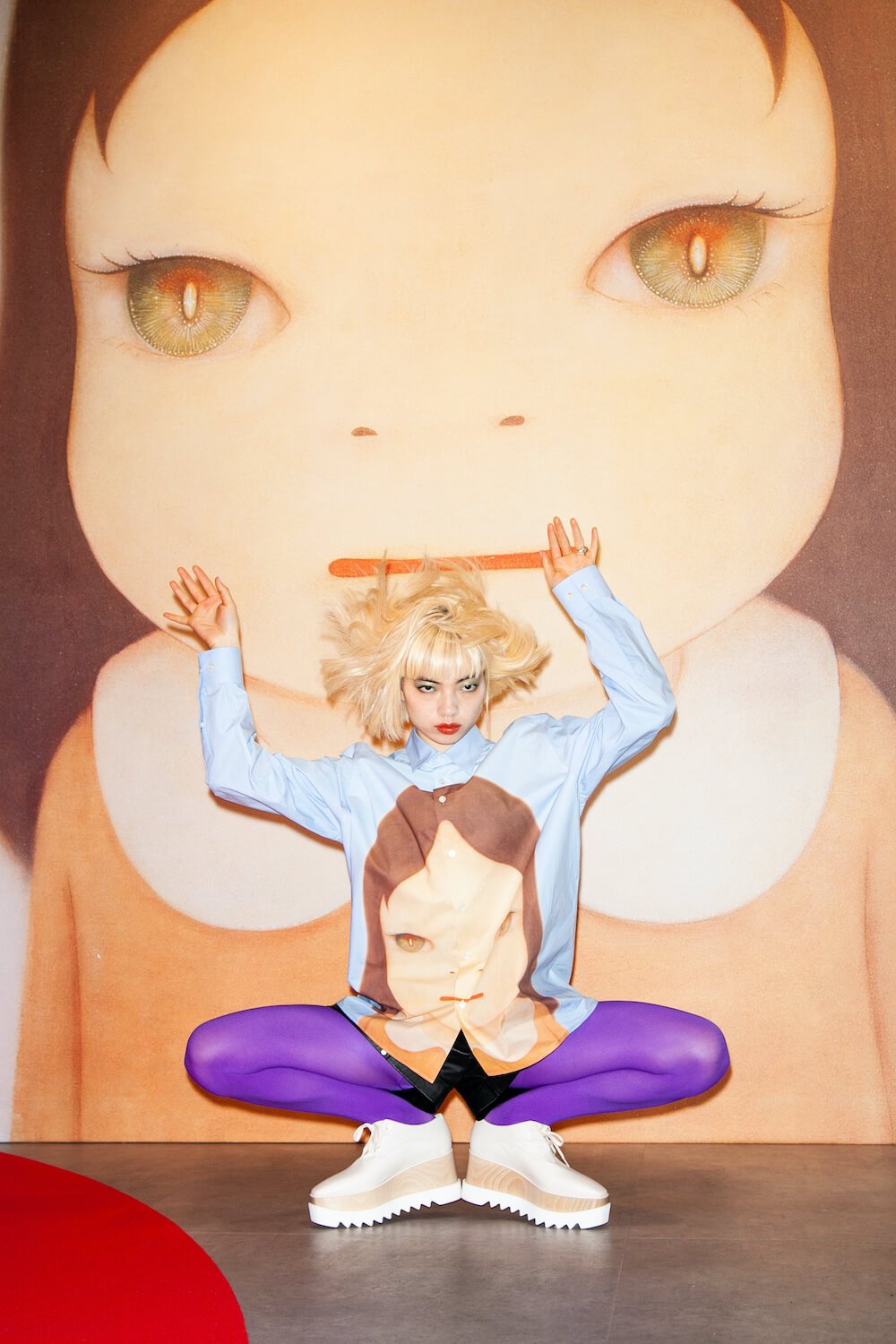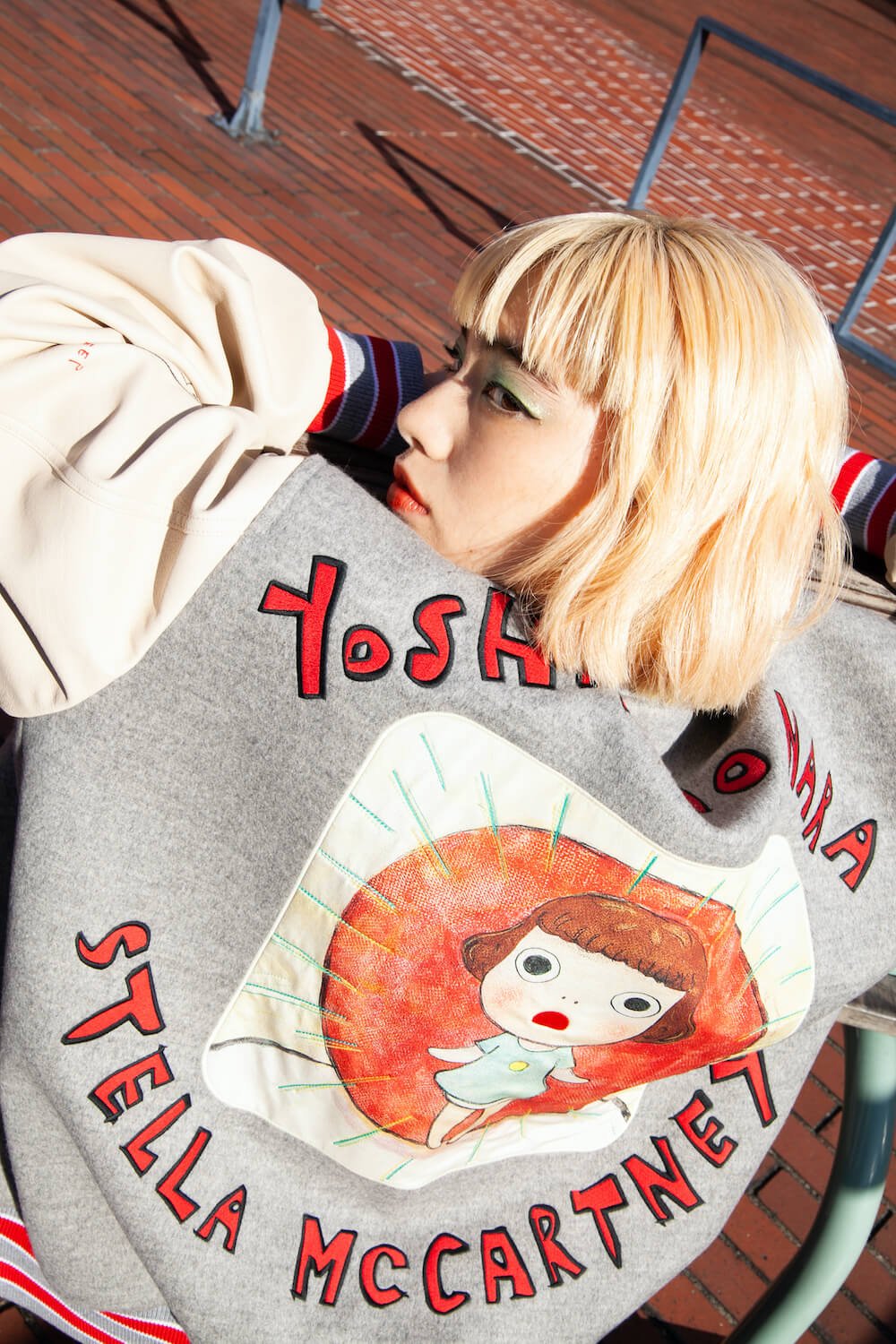 Bridging art, subculture and street culture in his striking illustrations, Nara is fluent in the language and style of youth in revolt, aligning exceptionally well with McCartney’s defiant attitude when it comes to her unwavering activism and support for the planet. An art enthusiast – she has previously worked with the likes of Cindy Sherman, Jeff Koons and Olafur Eliasson – and an activist – Stella has long been inspired by Nara’s nonconformist, activist attitude, drawing similarities to how she has approached her own work over the past 21 years. “Yoshitomo Nara is one of the most incredible artists alive today in my opinion,” McCartney told 10. “I wanted to work with him because we are very aligned on our way of approaching the world and our work, which is to be pretty punk rock and rebellious and have a message in our work, but also being at once with nature and animals. We are his first [and second!] ever fashion collaboration and for that I am honoured!”