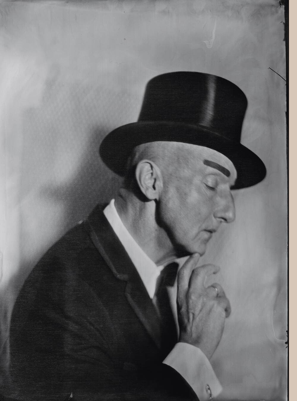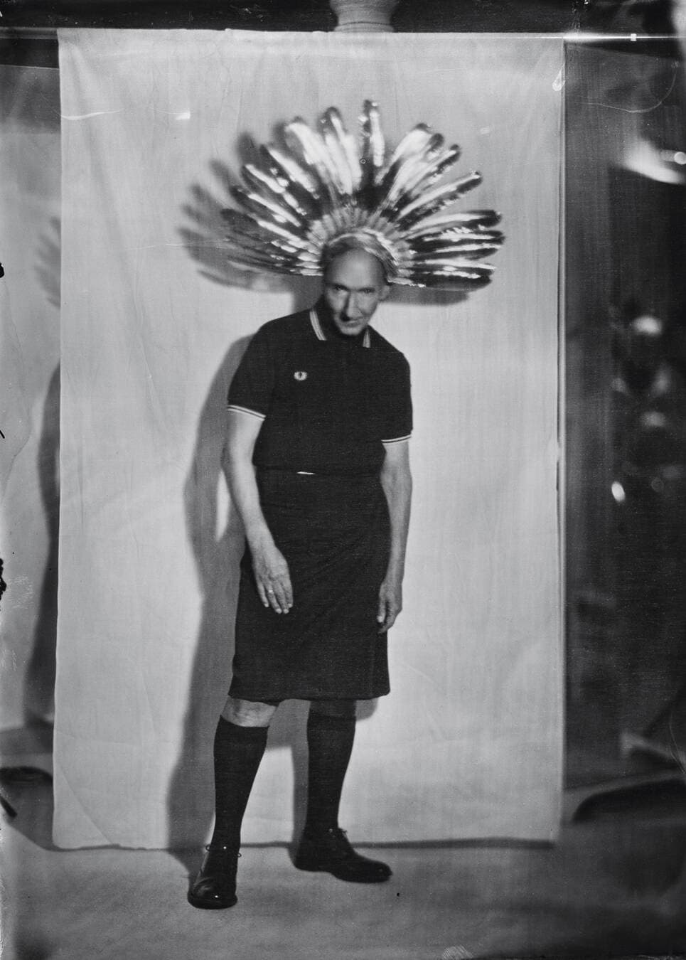 from left: suit, shirt and bow tie by THOM BROWNE, top hat from Stephen Jones’s grandfather, cufflinks by VIVIENNE WESTWOOD, ring by CARTIER; T-shirt and trousers by VIVIENNE WESTWOOD, shoes by MILKBOY, crown by STEPHEN JONES MILLINERY FOR VIVIENNE WESTWOOD