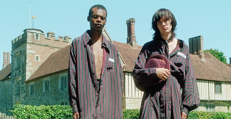 Stokey-Daley’s unlikely chance to earn an income in the world’s darkest hours is incredibly well deserved. His collection, based on Eton and Harrow schoolboys, had a luxury-level finish, lovingly put together largely from deadstock fabric donated by Alexander McQueen – and a subversive twist that comes from a working-class northerner looking at public-school privilege. “I’d never seen anything like pictures of Henley regatta, with the boaters they wear smothered with flowers. It started me on a spider’s web of research, on Brideshead Revisited, Sebastian Flyte, gay upper-class codes. It was so far off my culture. Coming from an ex-council estate in Liverpool, I was almost looking at them anthropologically. But that’s where this government comes from, isn’t it?”