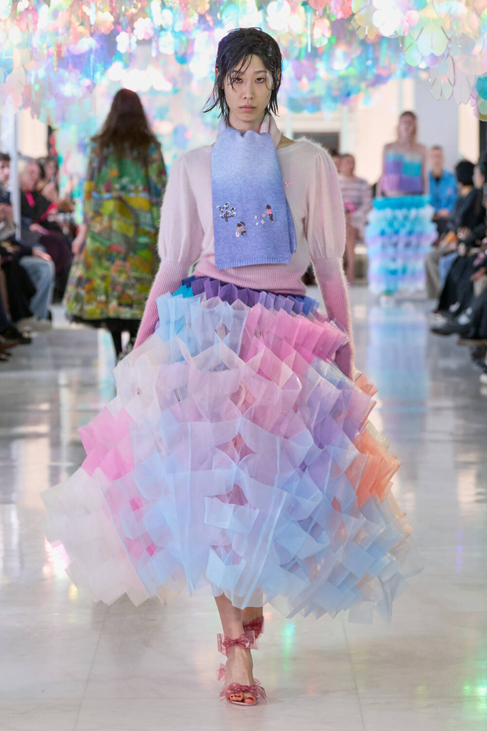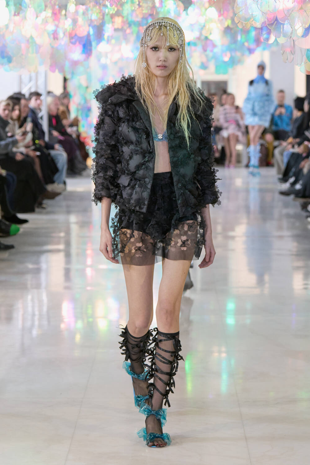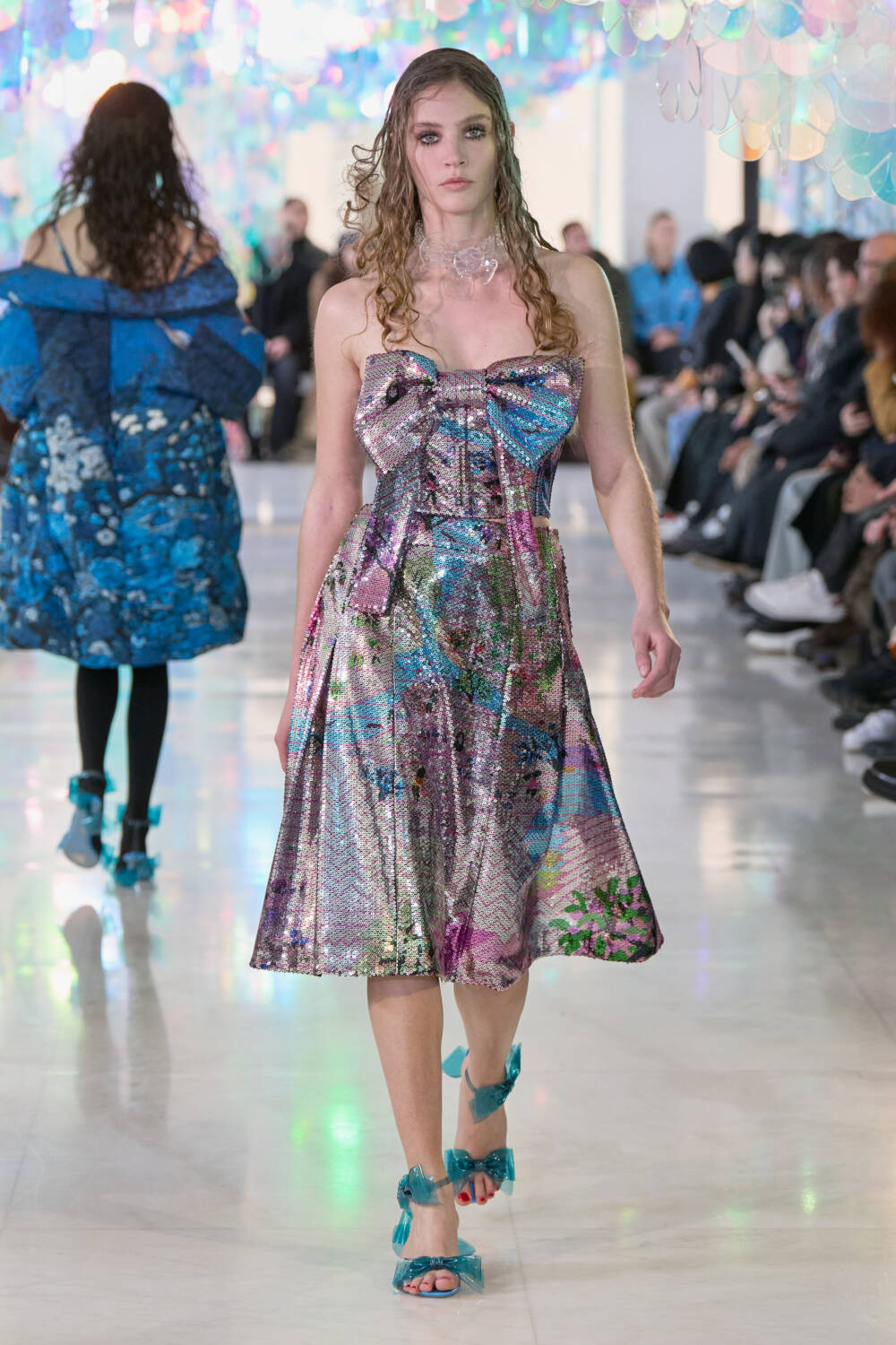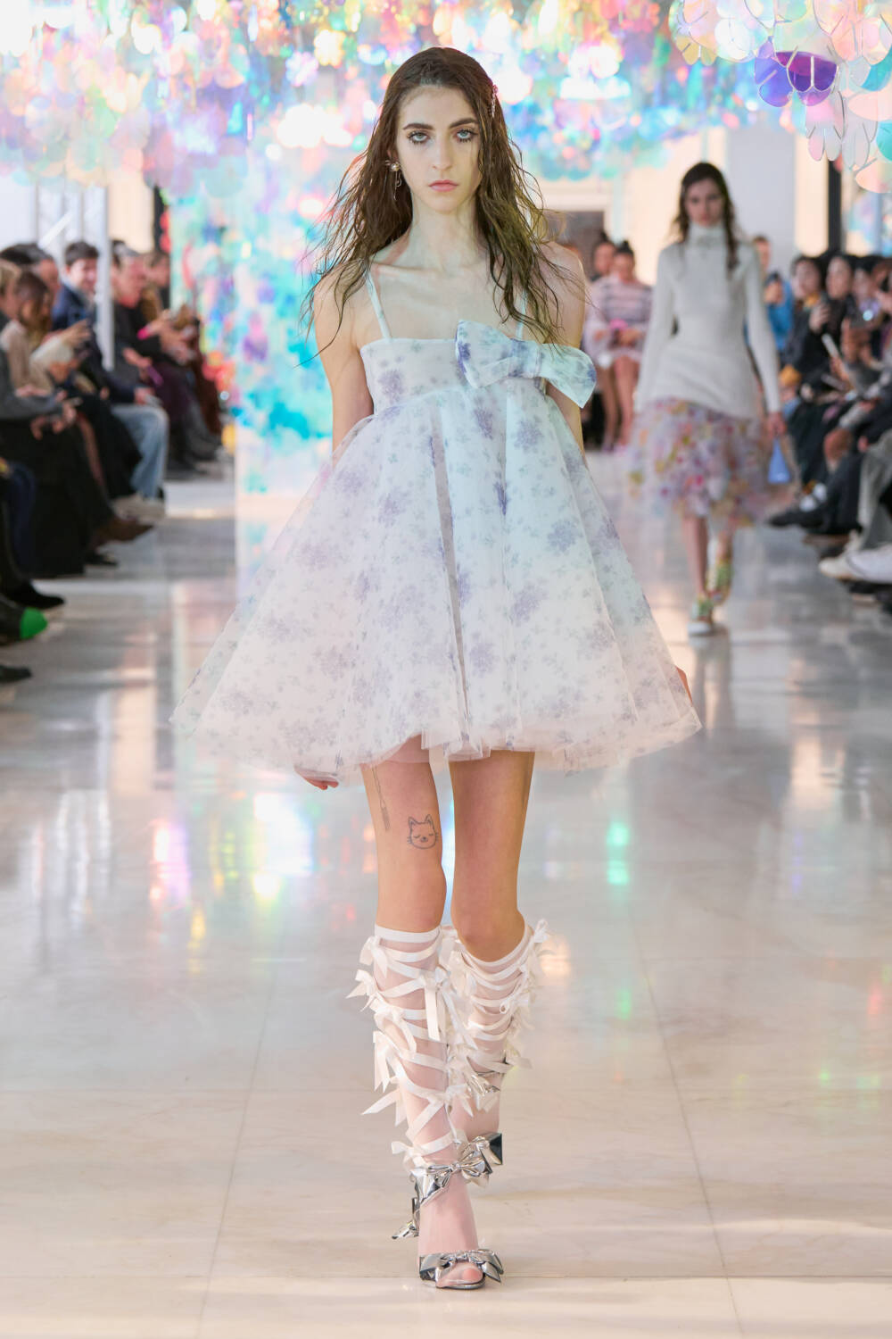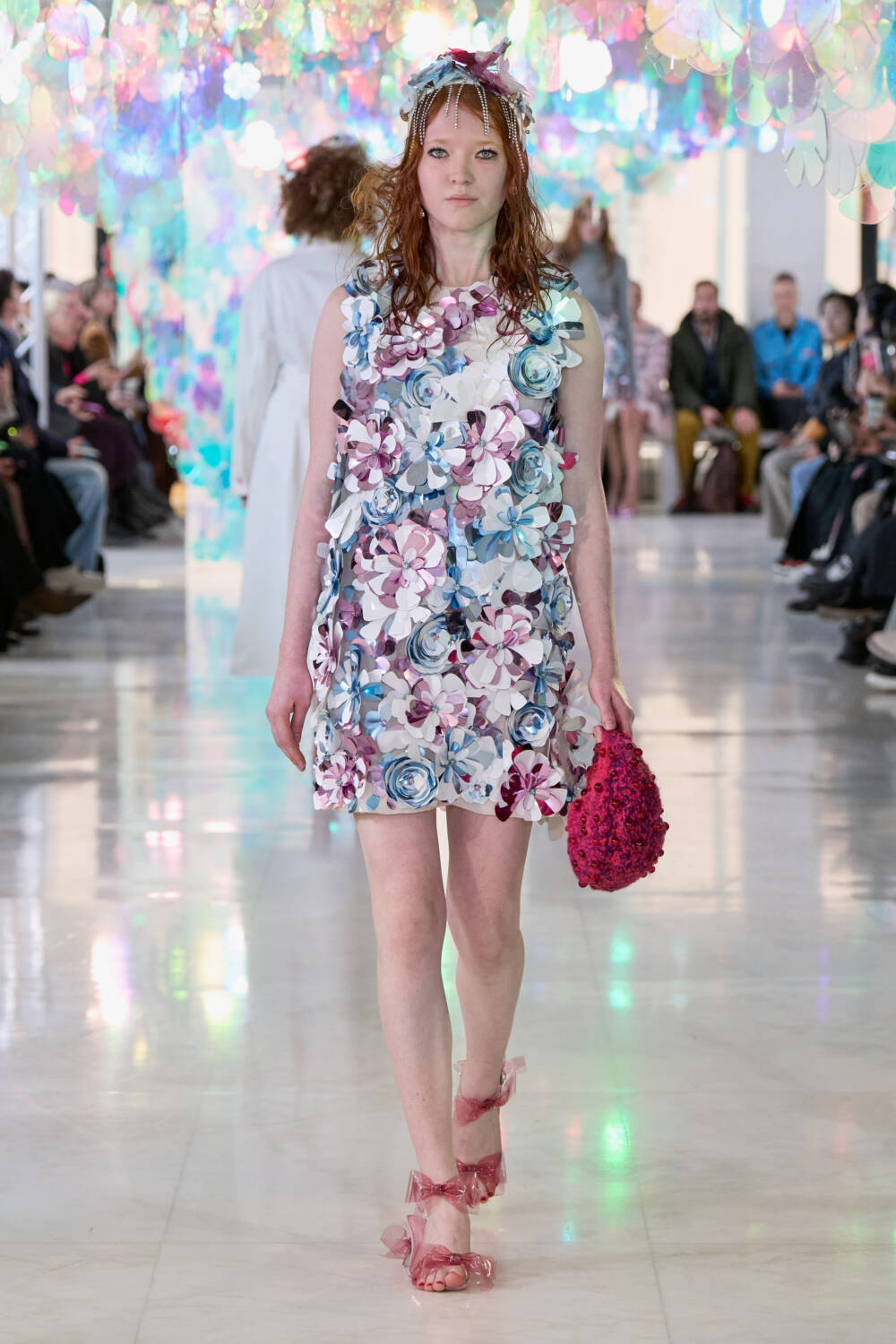 Fang is known for her whimsical approach and love of fractals and mathematical patterns. The designer opened with 3D assemblage, crystal and beaded flower dresses, which took craftswomen in her native China three months to make and then apply to a 3D printed base. Bringing technology and craftsmanship together is a Fang signature. As is the feel-good factor. Fang, who got married a few weeks ago also showed her own rainbow hued tulle gown. Summing up her colourful collection, the designer said it was about the pursuit of happiness. It certainly put a smile on our faces.
