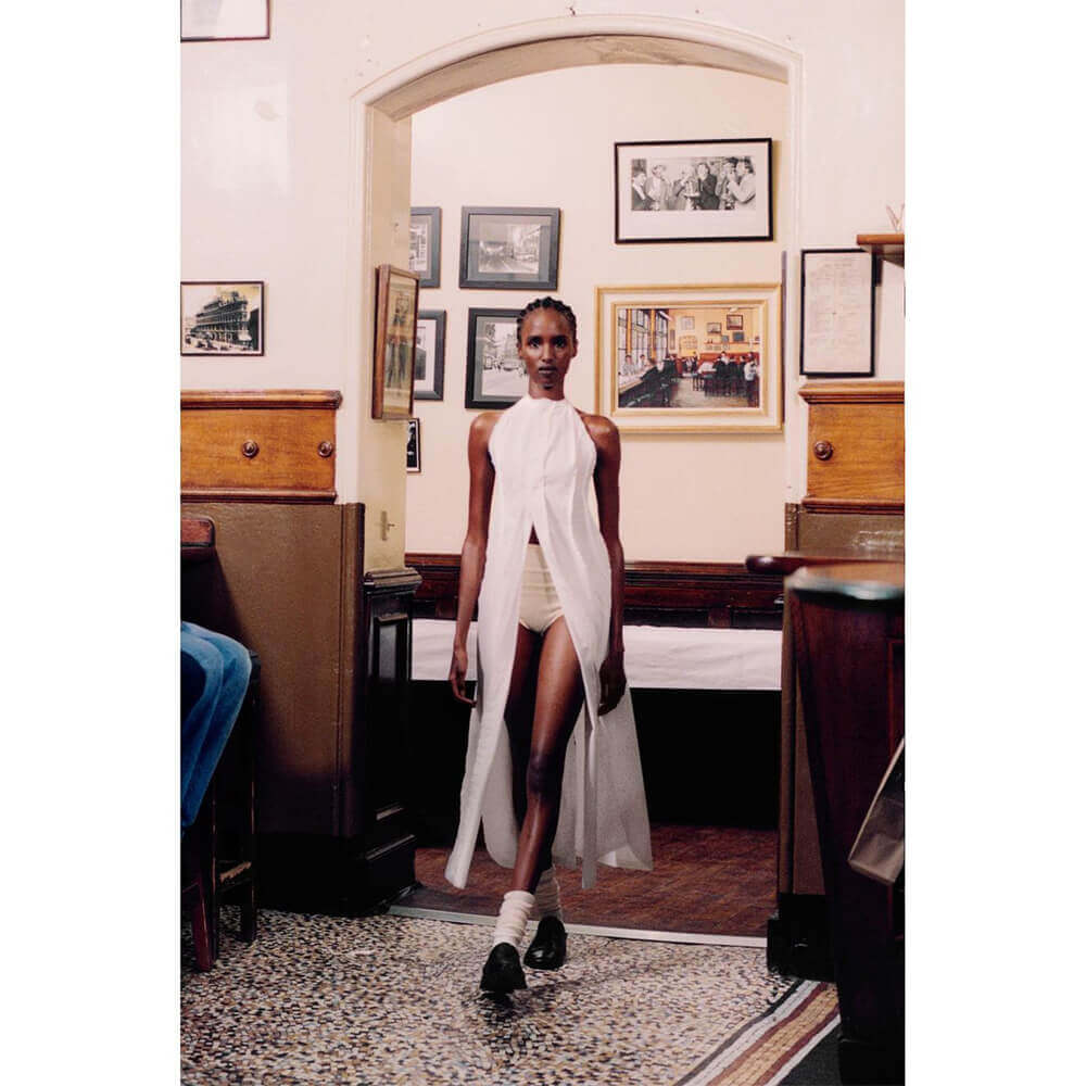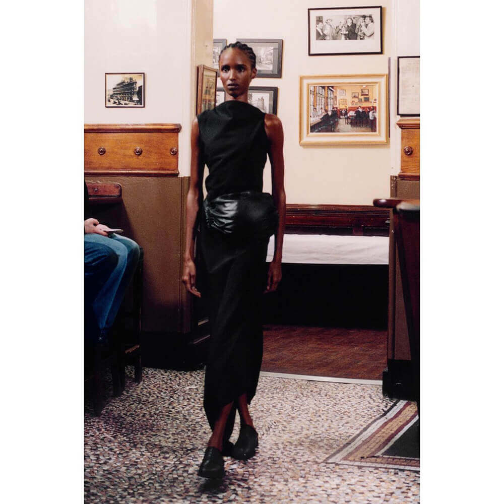 Last October, during Frieze week, the brand made its catwalk debut. The show was staged in London restaurant Sweetings, a popular lunch time spot flooded with bankers through the week. “I had done a lot of research on how classic houses hosted their shows, and it was quite common in the 1950s and ‘60s for brands to present their shows in restaurants with friends. Sometimes it was over breakfast, with people tucking in as models walked the catwalk,” says Talia.