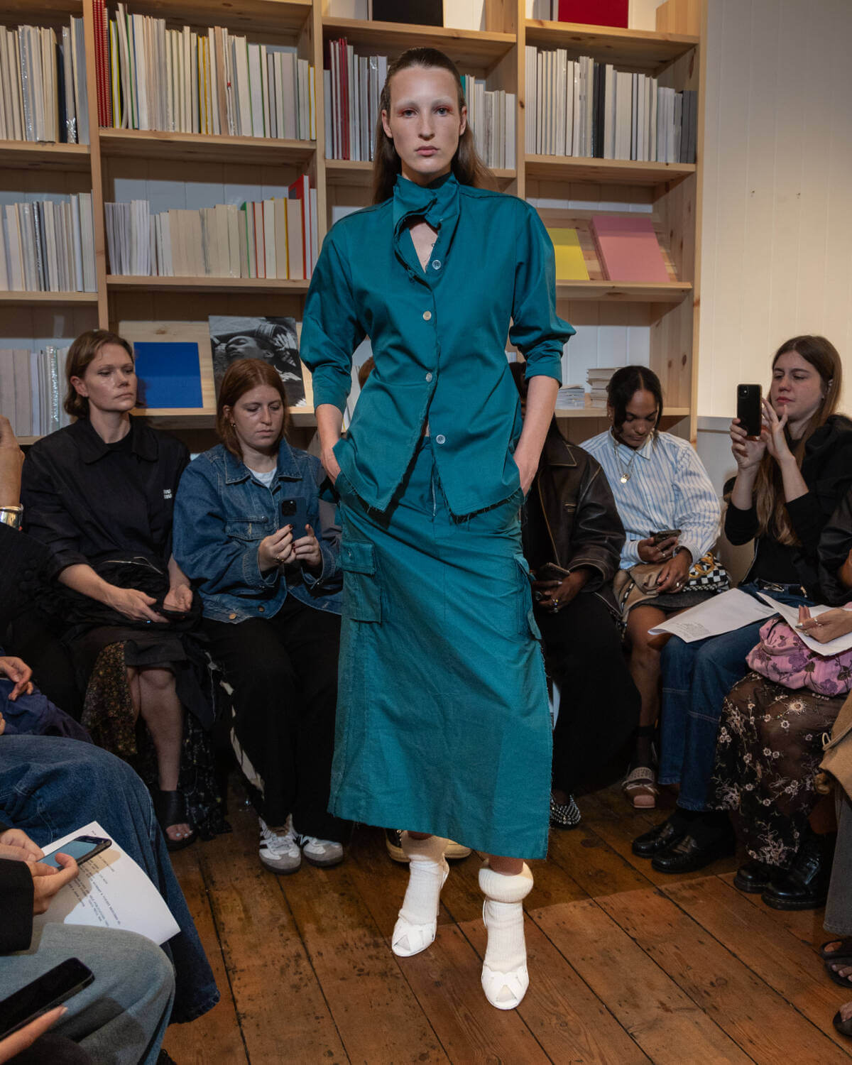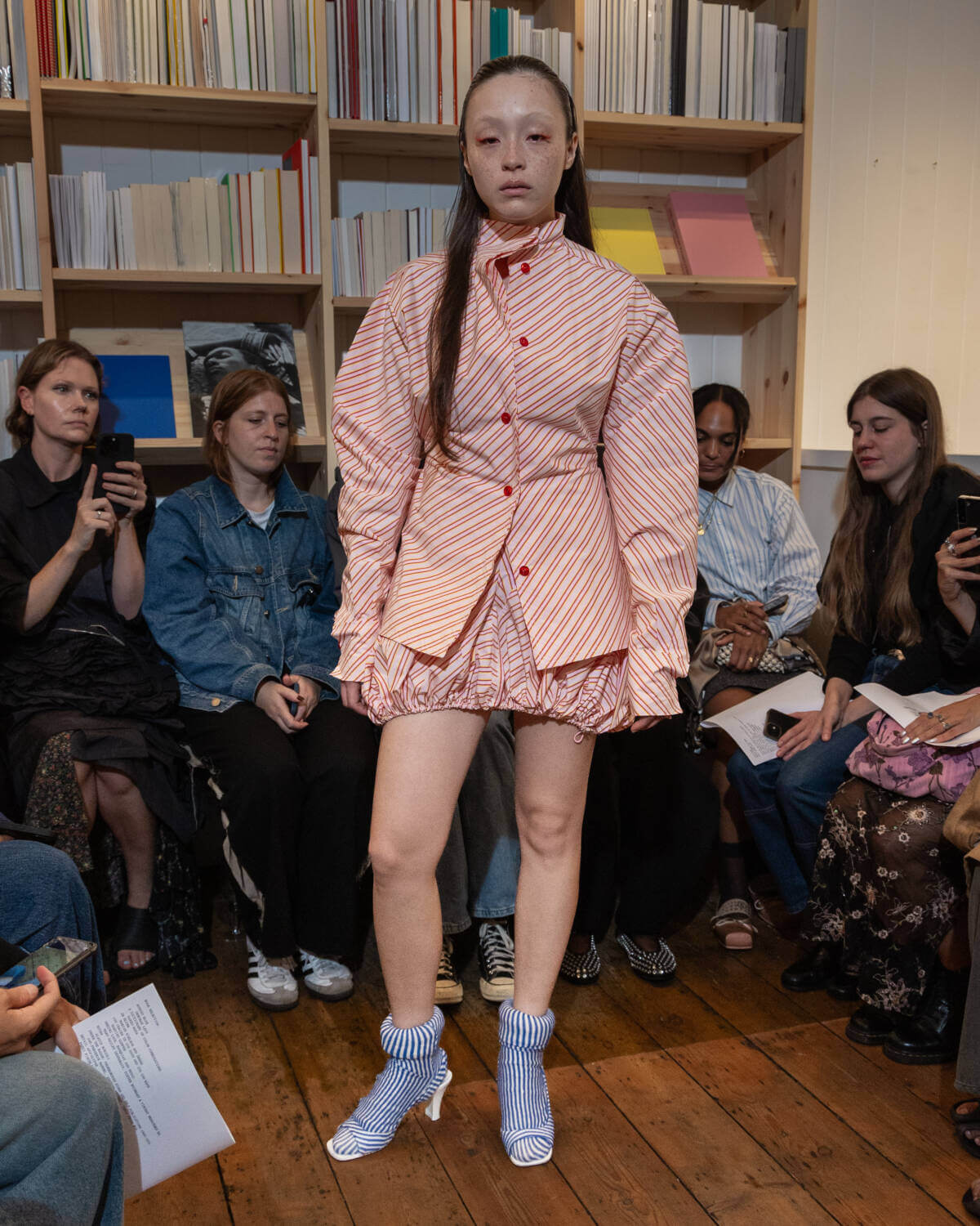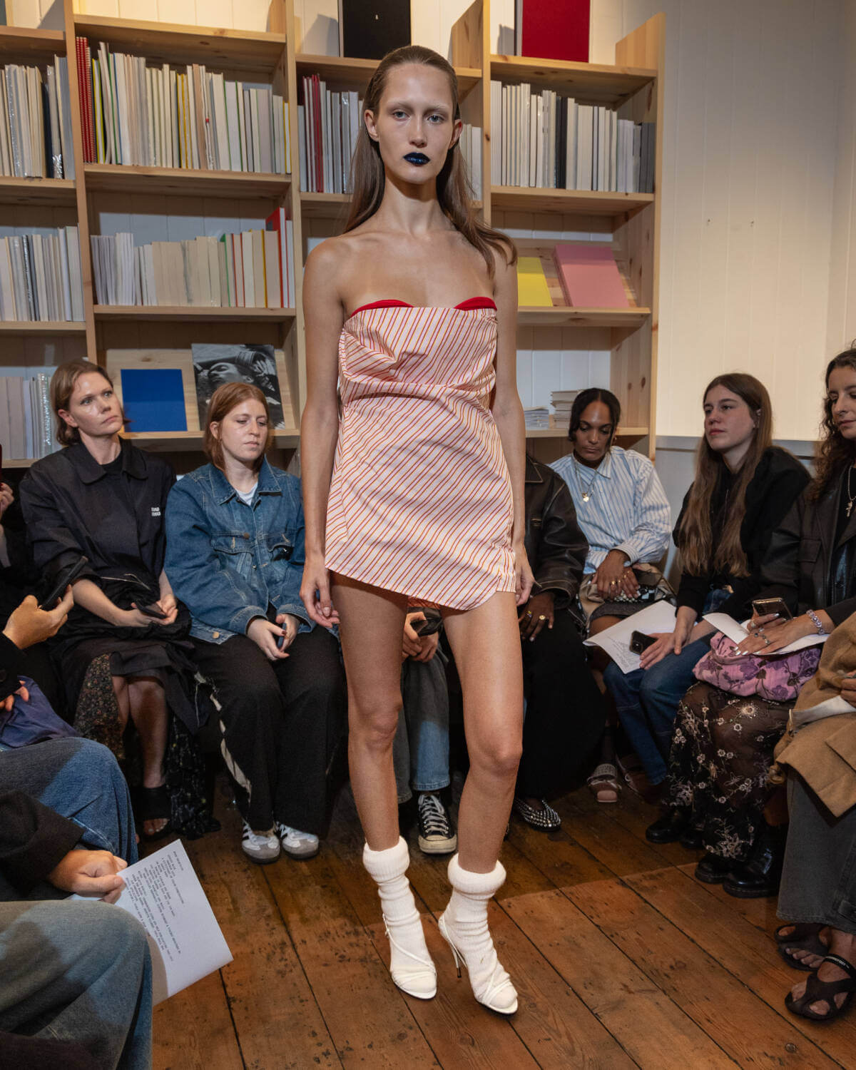 Emerging designer Talia Byre went book smart for her third London Fashion Week showcase, sending her refined guest list of industry glitterati to independent Soho bookshop Tenderbooks. After debuting her first collection in 2021, the London-based CSM grad has established a clear-cut and considered design language focusing on family tradition and heritage, with this season proving she can elevate these codes whilst staying true to the brand’s core.