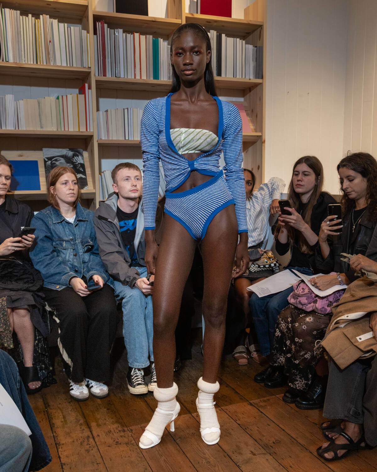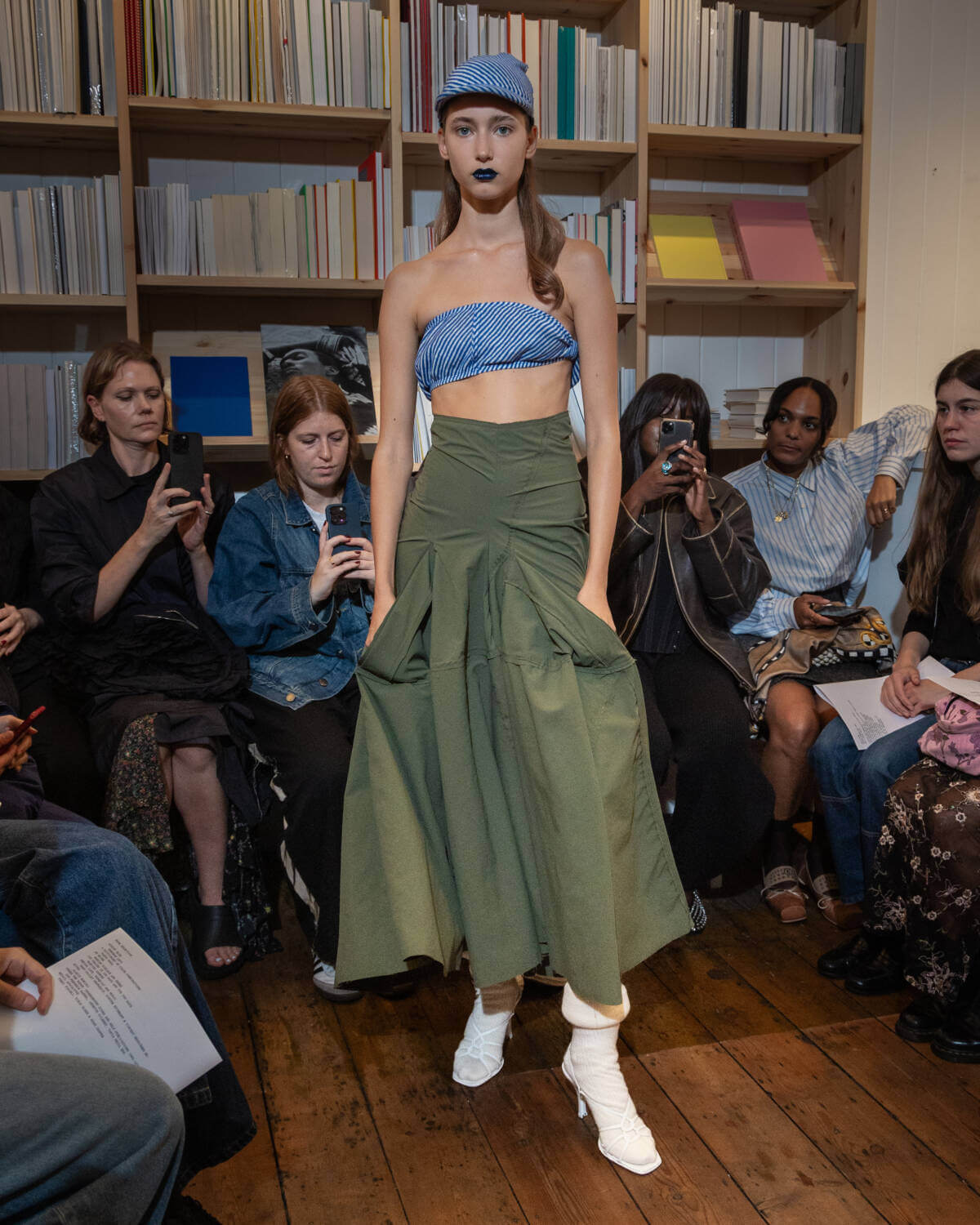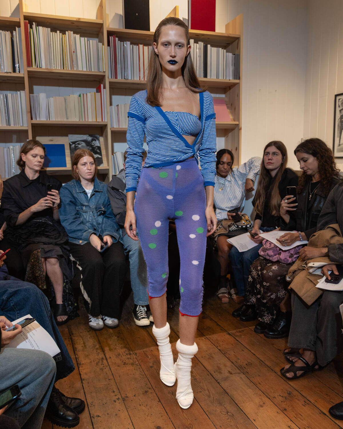 Emerging designer Talia Byre went book smart for her third London Fashion Week showcase, sending her refined guest list of industry glitterati to independent Soho bookshop Tenderbooks. After debuting her first collection in 2021, the London-based CSM grad has established a clear-cut and considered design language focusing on family tradition and heritage, with this season proving she can elevate these codes whilst staying true to the brand’s core.