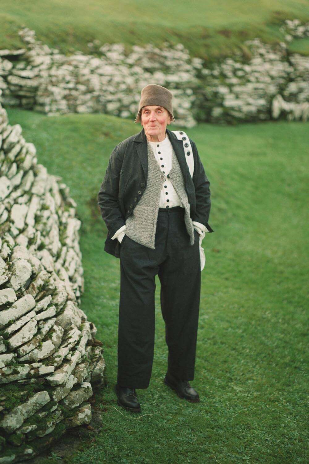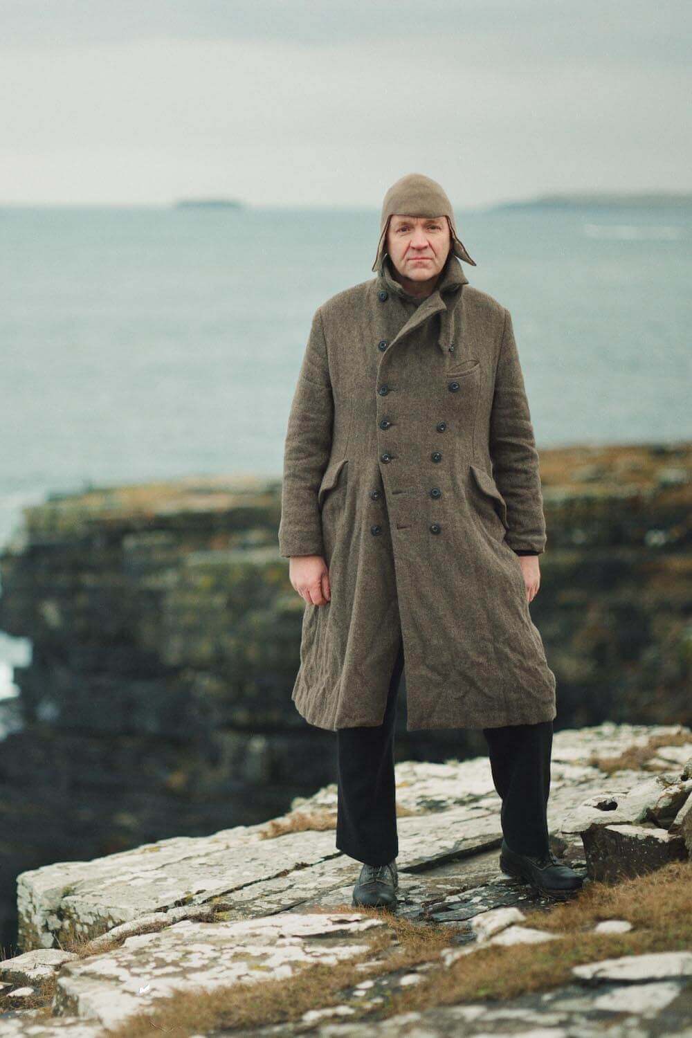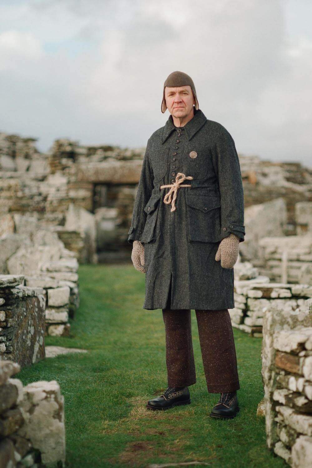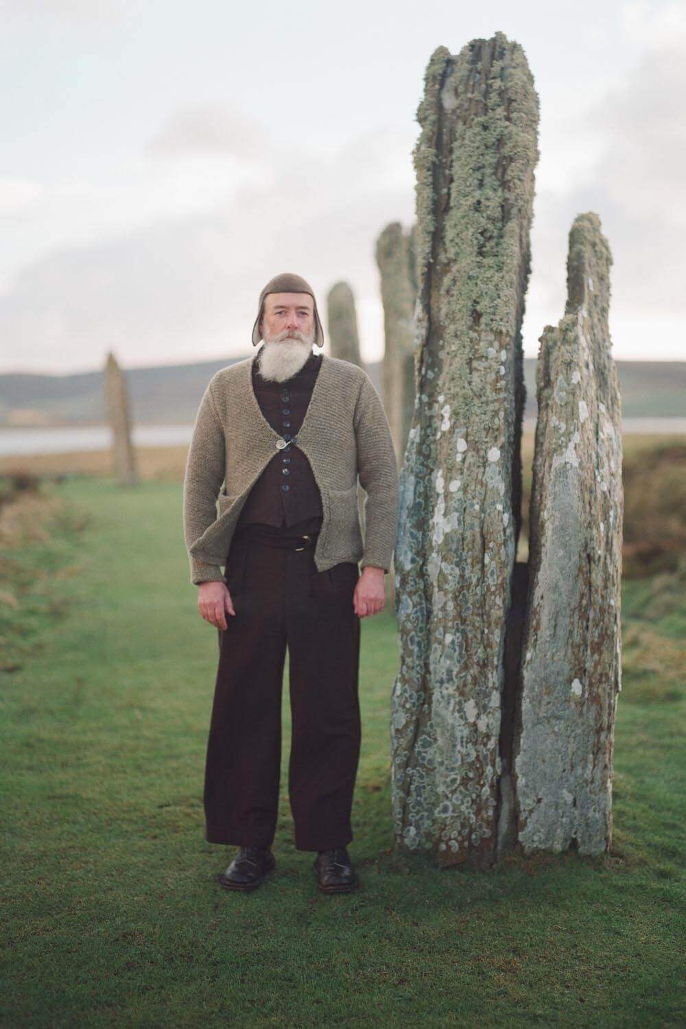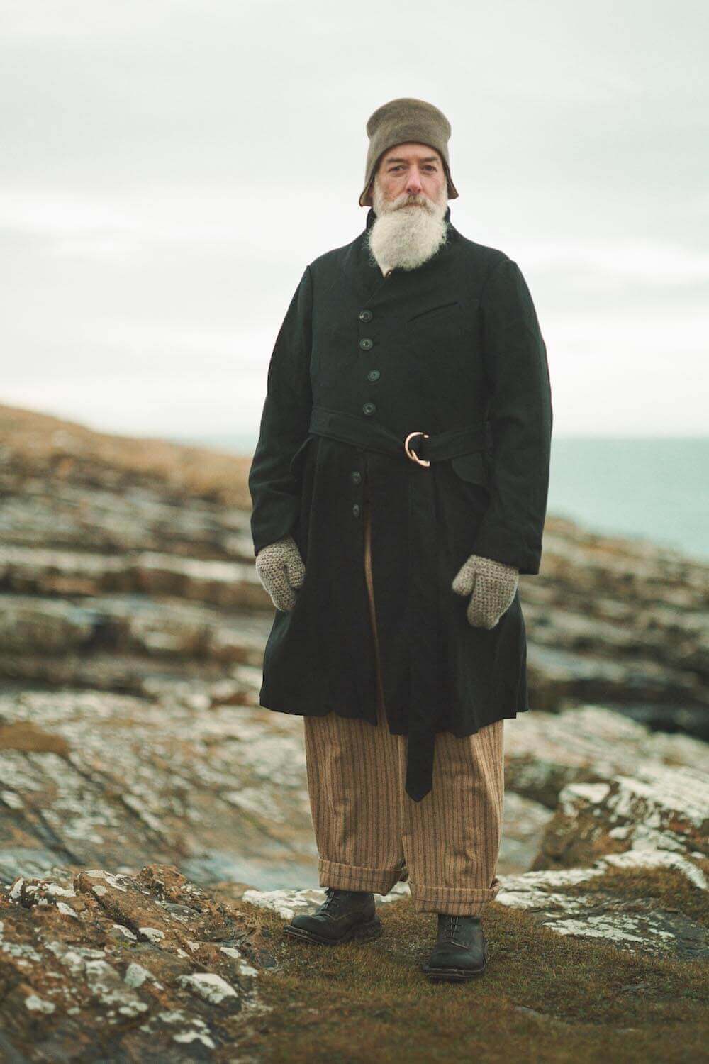 John Alexander Skelton unveiled his XIV collection a few weeks ago with a humble exhibition over in East London. Neolithic British art – rock carving in particular – inspired the functional but cosy clothes he presented alongside rural imagery and art by photographer William Waterworth and filmmaker Joel Kerr. In Earthy hues, Skelton proposed hand-felted hats made with British wool, sturdy handcrafted boots, natural jute rope belt loops and beautifully embroidered traditional knits. This was English country-core in its purest form.
