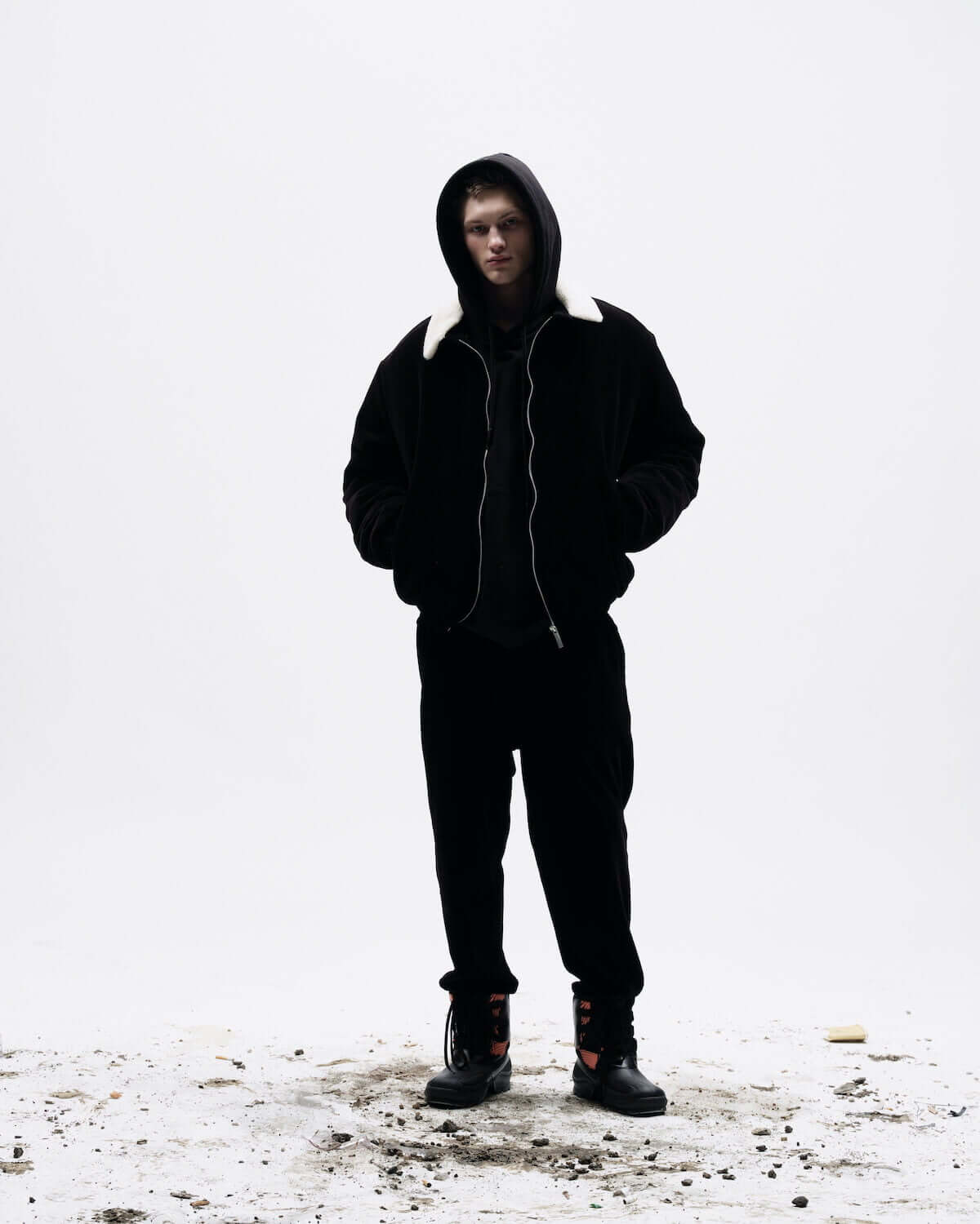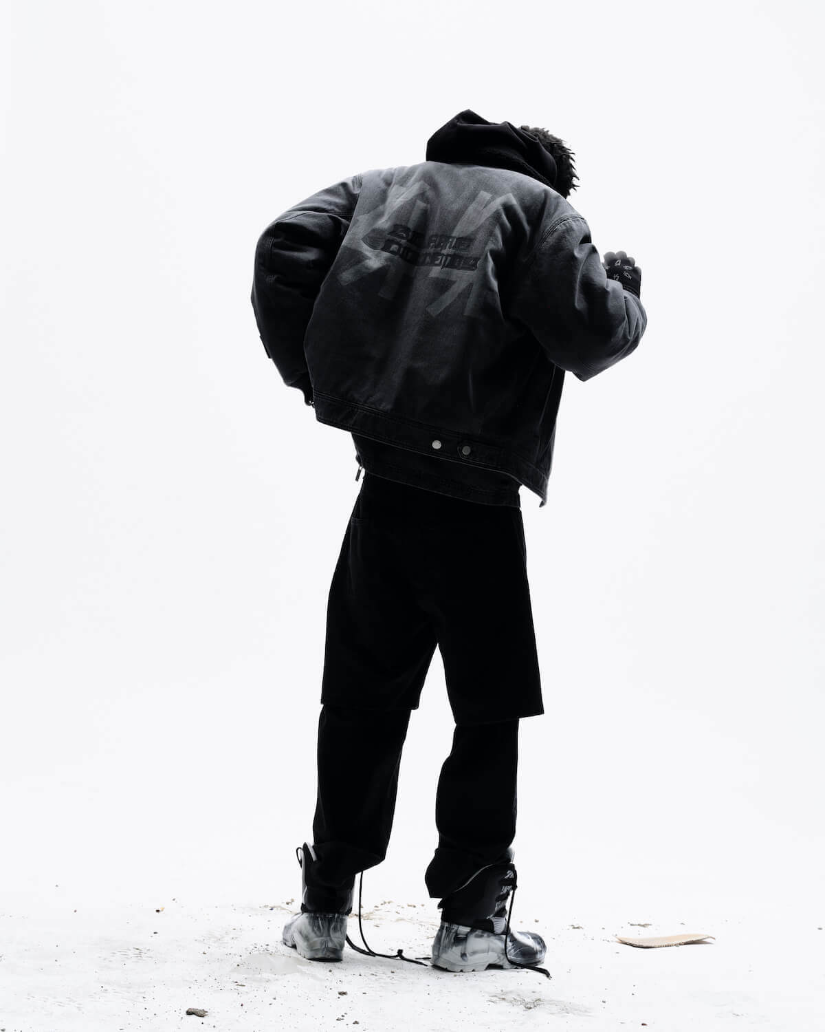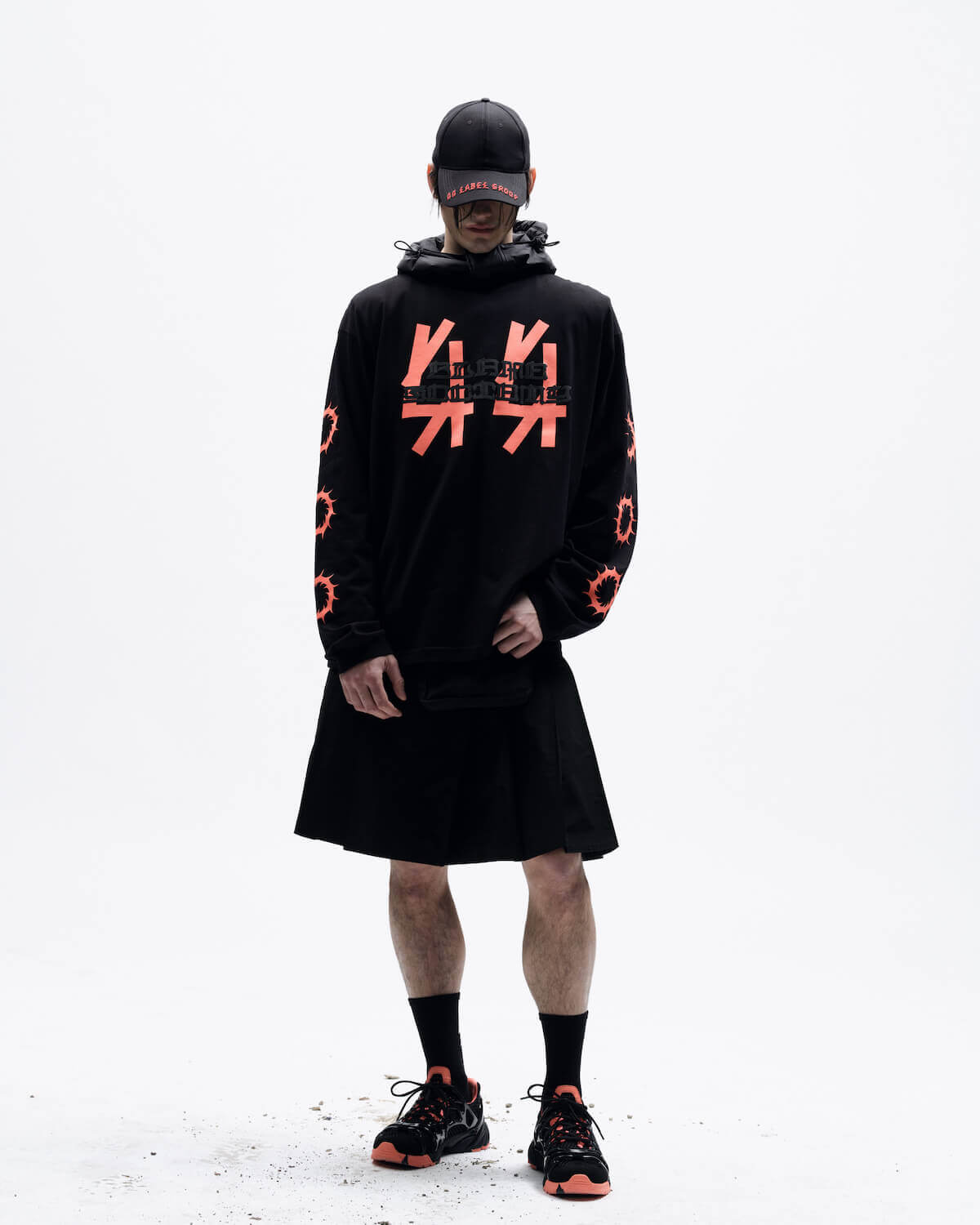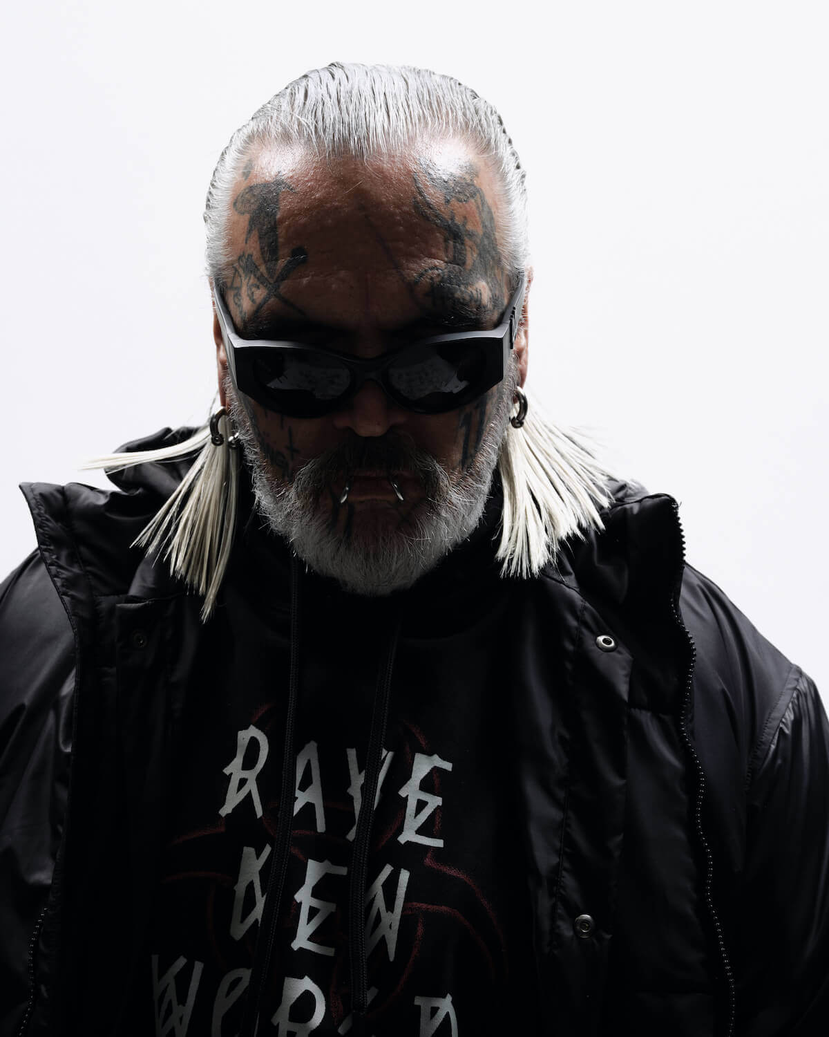 Max Kobosil’s 44 Label Group just dropped its AW23 collection of post-modern rave wear. Constructed from coarse fabrics – washed greyscale denim, textured rubber, rough canvas – to create high-strength utilitarian uniforms, full body boiler suits, pleated combat skirts, huge hoodies and DJ luggage made in collaboration with UDG. Dubbed Blame Society, it sets a desolate scene, muddied and dark, to depict alternate futures and digital dystopia also coursing through the typographic clothes. Berghain Berlin’s rugged bouncer wears the bold designs, cementing the collection’s status as clothes for the club kids of a doomed future.