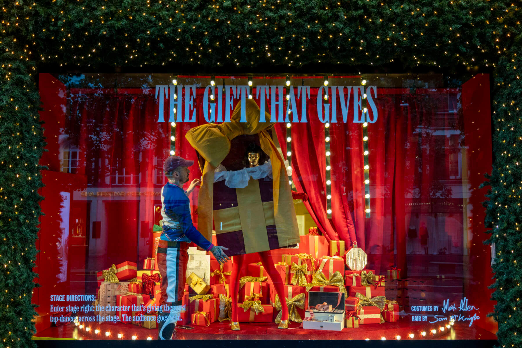Showtime! at Selfridges. Its a festive fiesta that’s more dazzling than your neighbour’s over-the-top light display. First off, let’s talk windows – not the computer kind, but the ones you’ll be pressing your nose against in awe. Selfridges has gone all out, with windows that have more drama than your favourite reality tv show’s season finale. Picture Santa Claus as the ‘Stage Director,’ a Christmas Tree Diva and a Stand-up Comedy Snowman. These festive fashionistas are not just mannequins in sparkly outfits; they’re characters with a backstory and a costume designer: Max Allen, who handcrafts each costume in North London.