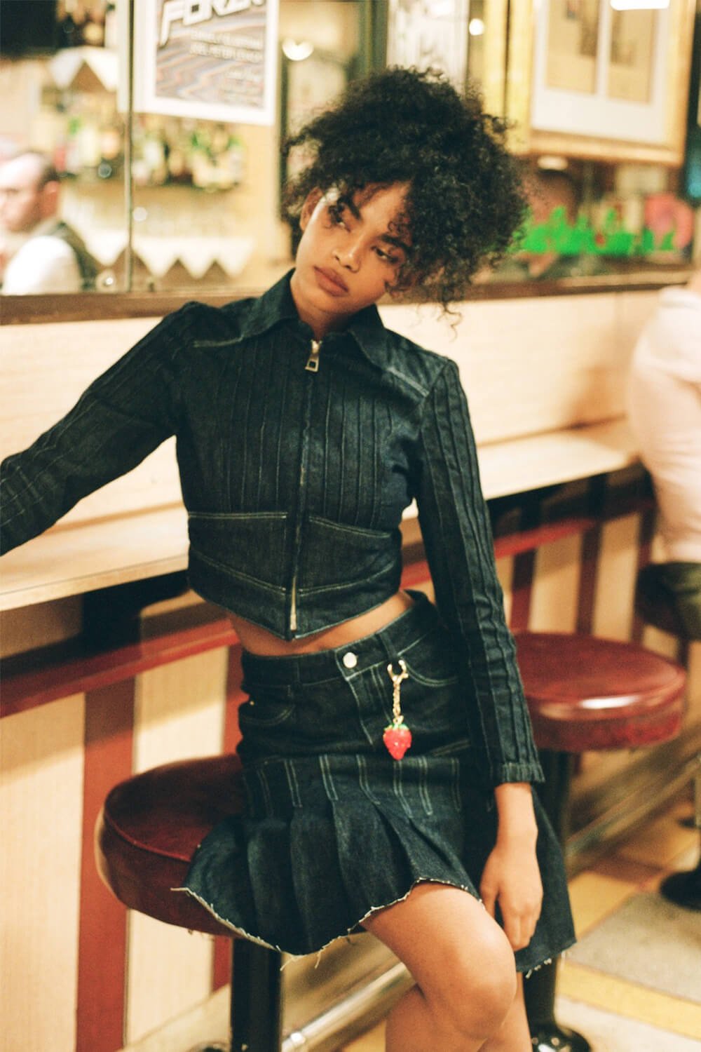 Vroom, vroom; Peachy Den is driving in the fast lane. Recruiting Sav Hudson – the lead singer of synth music group Between Friends – to design its Easy Rider capsule collection, glitchy graphics, warped checkerboard, distorted sporty finishes and references to vintage motocross gear allude to a high-speed movement-look effect. Of the Peachy Den x Sav Hudson capsule collection drops – two more are yet to come – the debut outing is a beautifully boyish range encapsulating what drag-racing dreams are made of.