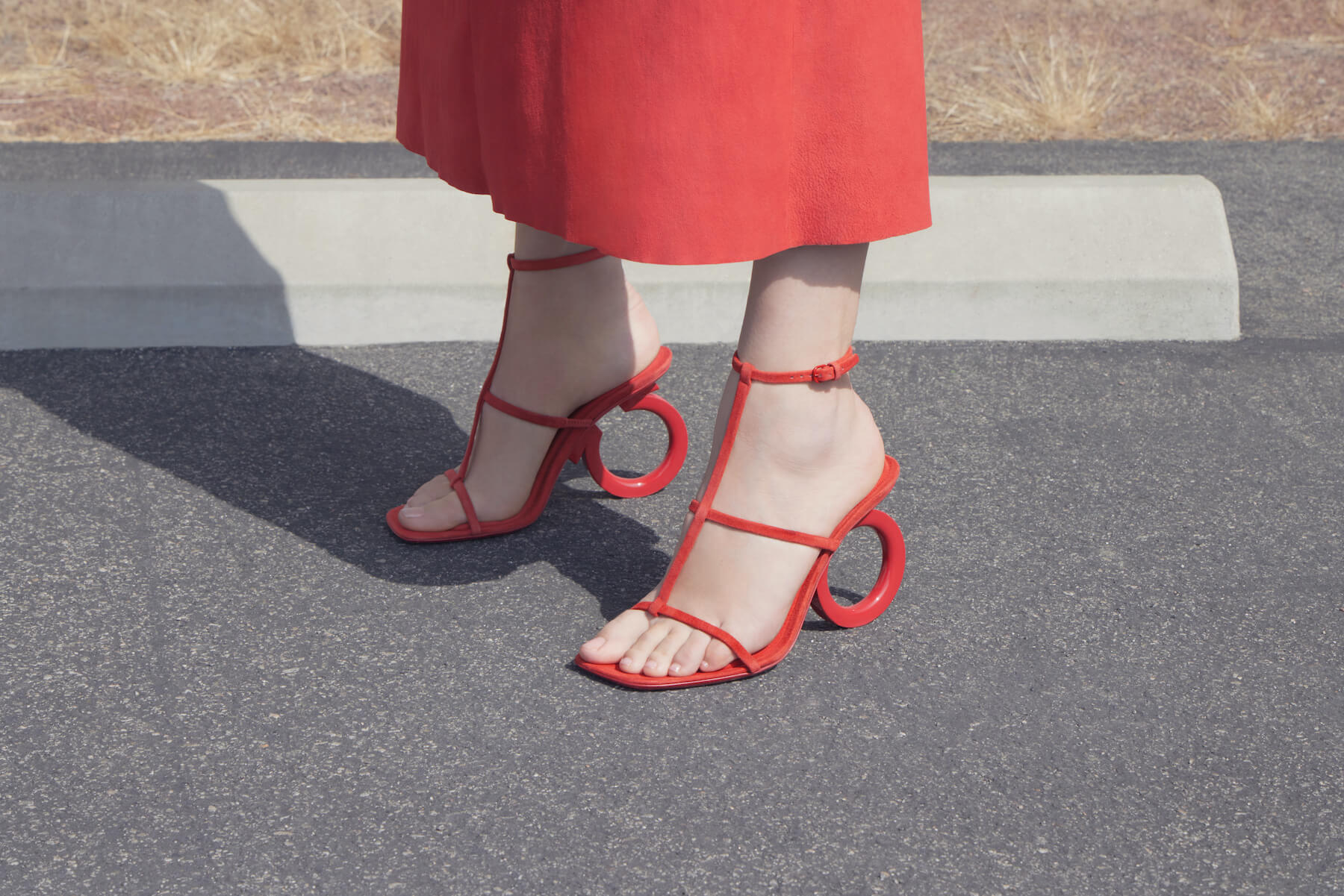 Ferragamo’s red is reinvigorated too, working its way into iconic new accessories that are, on the other hand, being presented for the first time: seductive sandals, the Elina – with its graphic Gancini heel – and Davis’ minimalist loafers and boots.