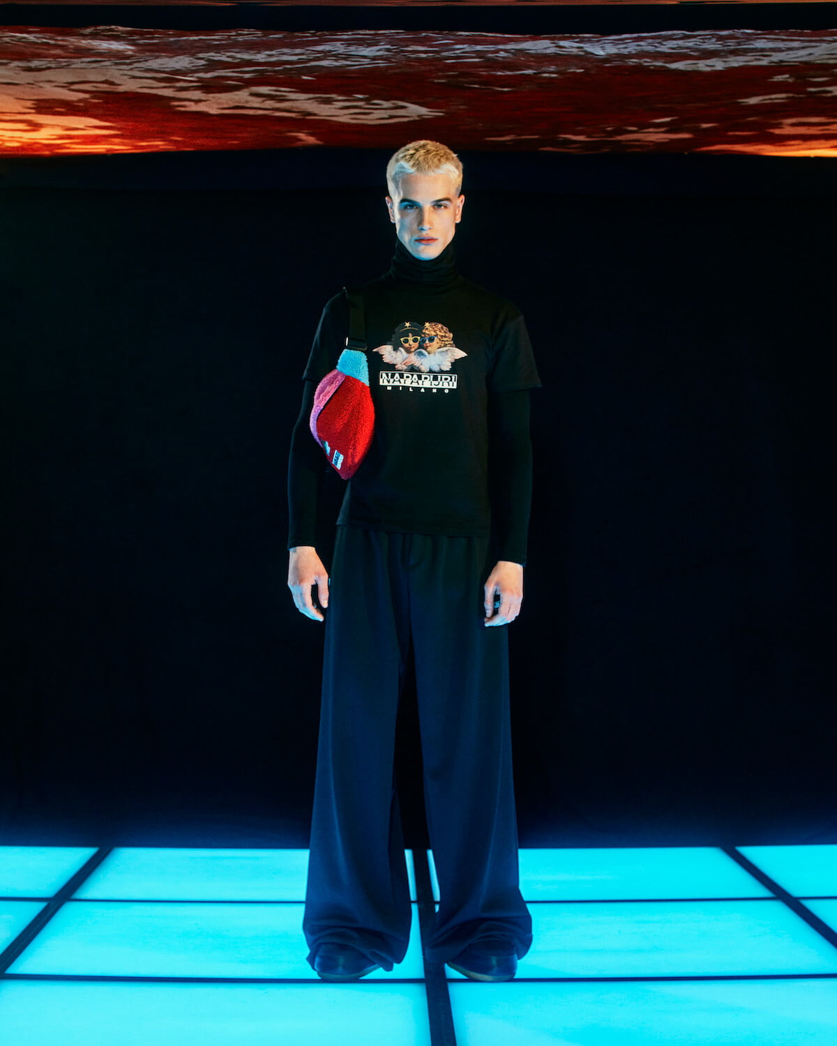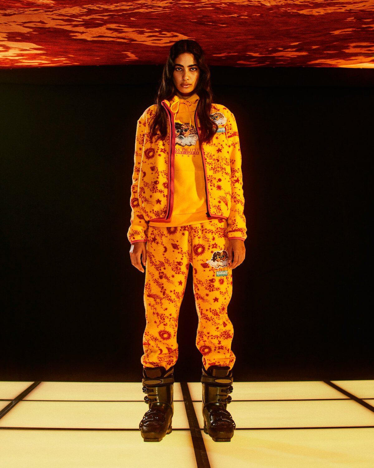 Twin Italian brands Napapijri and Fiorucci have just joined forces for a second time, transforming the spectacular outdoors into a dazzling disco dancefloor for their sophomore drop. It’s a high spirited collection, featuring holographic puffers, hot pink eco-fur, puff-ball beanies, and graphic fleece sweat sets. Patchwork depicting Fiorucci’s iconic angels and the Napapijri logo are peppered throughout and Napapijri’s first and most famed style, the Skidoo anorak, is reimagined too. Every single fun-loving number is ultra-soft, cosy and colourful – essentially, its uplifting outerwear for lousy weather. “I wanted this collection to transport it’s wearers, whether that be into the mountains or up into space” said Fiorucci’s artistic director Daniel Fletcher in the collection notes. Shop the collaborative collection here.