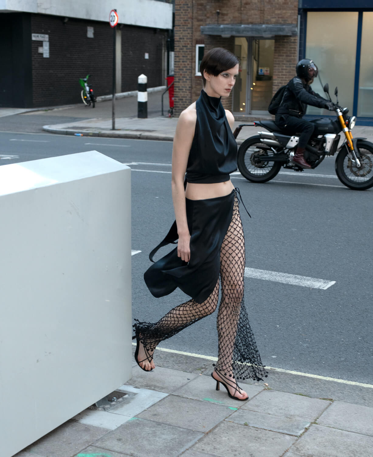 Strutting the city streets, Supriya Lele’s ladies wear luxuriously liberating garments that protect and celebrate the body inside her SS23 campaign. Shot by British photographer Jack Day outside and around the designer’s South London studio, her effervescent, naughties-nostalgic silhouettes dance. Lele’s classic codes are rife through the collection, apparent in the luscious drapery and fluid formations, but she also adds boxy coats and for the first time ever shirting into the mix bringing on a new level of maturity. It also features a confident colour palette of cerulean, amethyst, fuchsia and cornflower hues, riffing on the traditional dress of Lele’s Indian heritage. Fearlessly feminine and somehow sporty, despite its being built of sarong skirts, halterneck tops, mini dresses and capri pants, the collection is sure to fly off of the shelves.
