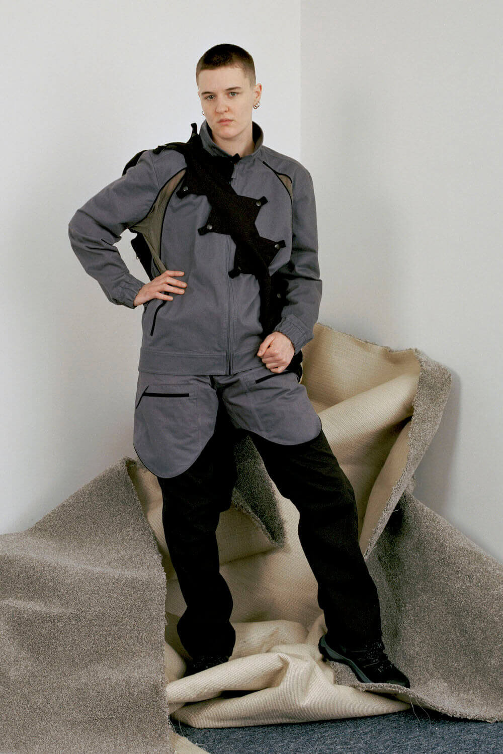 After Dover Street Market snapped up his BA graduate collection, emerging menswear star Olly Shinder has launched his sophomore outing. The Central Saint Martins alum continues to soften rugged workwear staples, be it perforating sculpted, technical trousers with delicate mesh or crafting semi-opaque in camel workwear shirts. The results are quietly queer, inspired by Shinder’s days spent clubbing on Berlin’s dancefloors. Shop now. Paul Toner