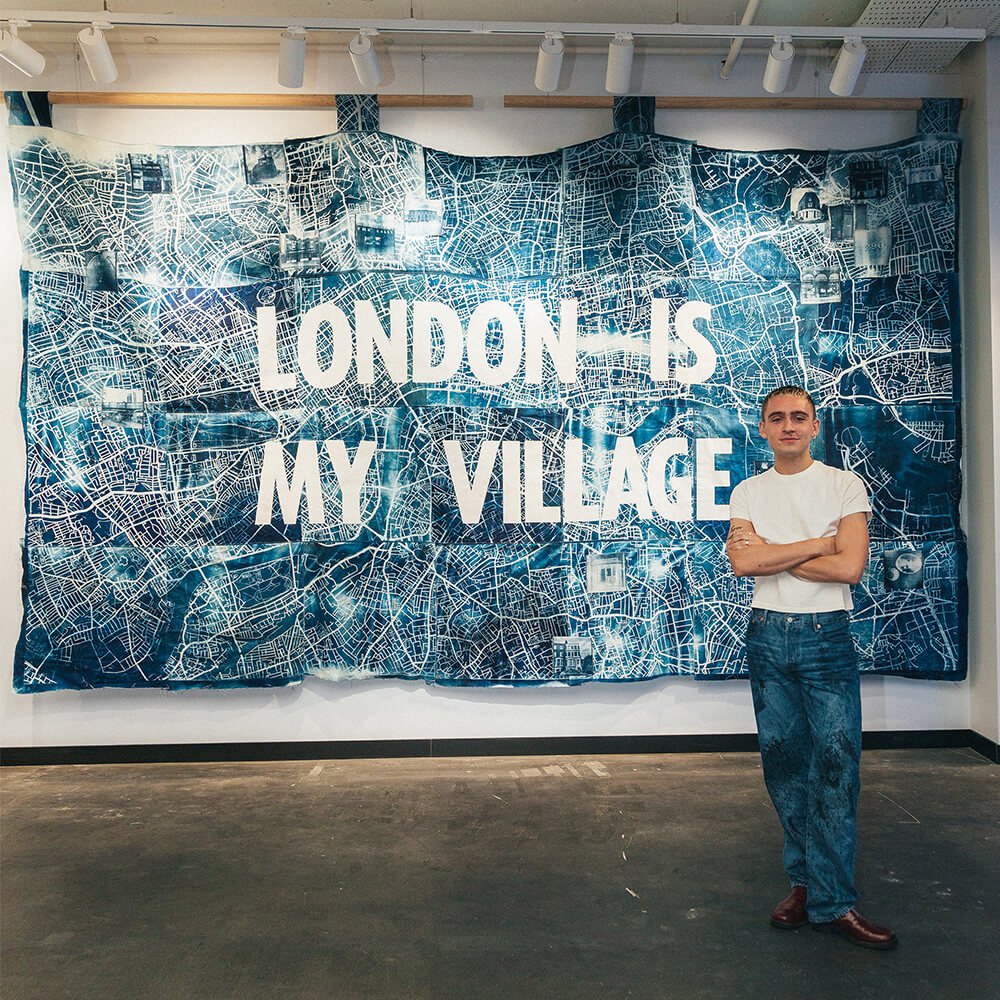 Last week, Levi’s unveiled a large-scale art installation, at the reopening of its Regent Street store, created by London based artist Corbin Shaw, who was named lead artistic collaborator for its new LDN in Levi’s campaign. The textile installation explores how denim imprints can retell the story of Shaw’s own London, but what does that look like? “My London is made up of caf laughs and pub drafts,” Shaw says in an interview, adding, “The people are what make it for me.” The work, entitled London Tapestry, is an impressive and self-expressive display playing with signature slogans in a bid to dig deeper into Shaw’s usual explorations of everyday mundanities looking to break down classism, masculinity and societal norms in Britain.