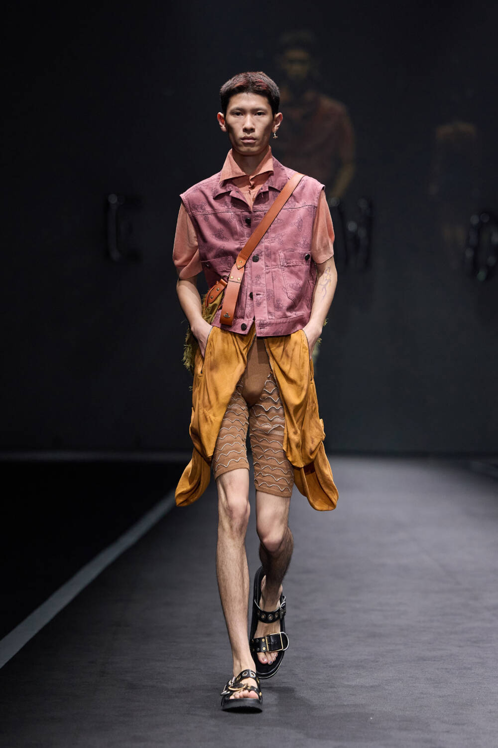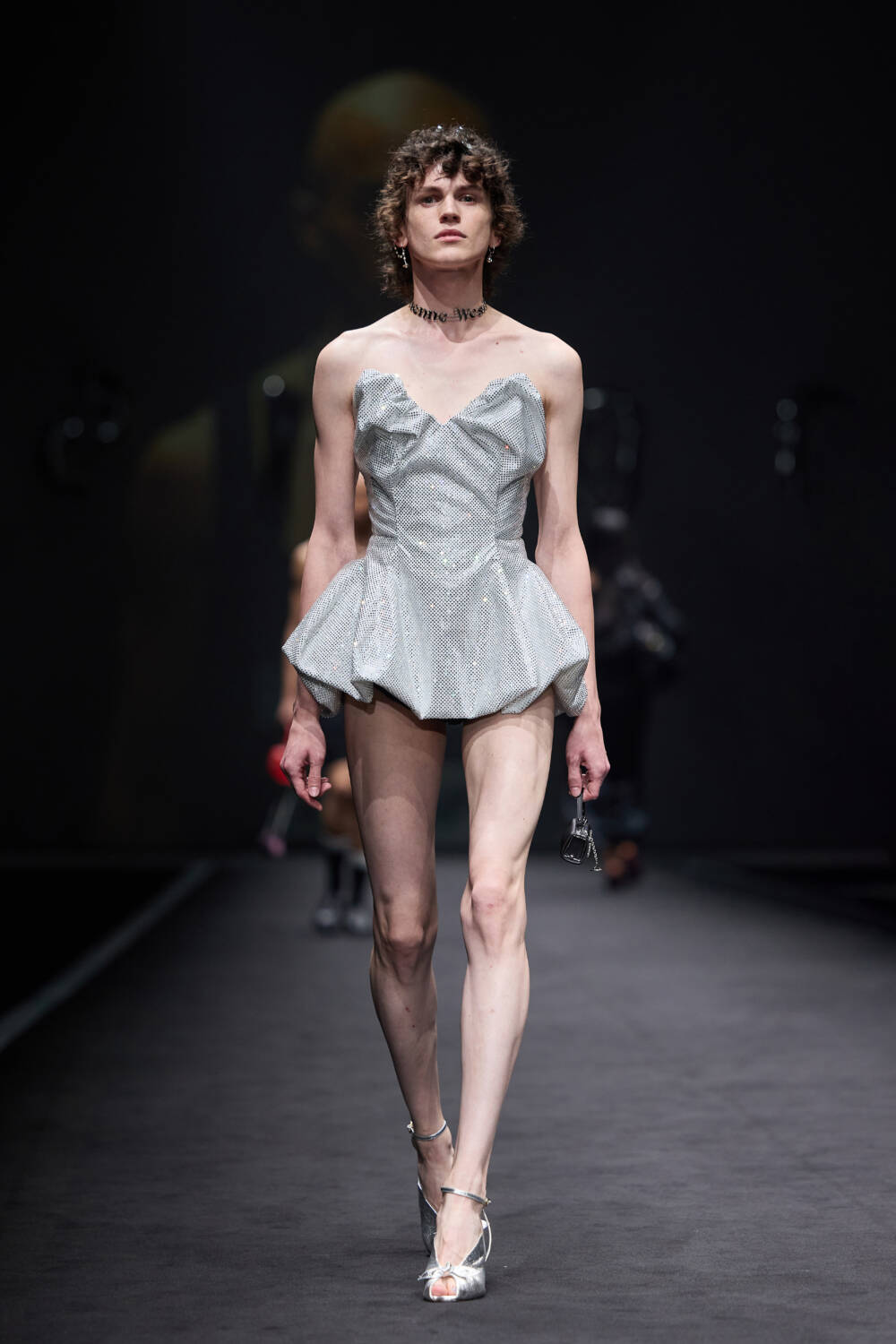 Gender play was everywhere. Men in heels, tights and a particularly fun sparkling club dress offered fans a modern take on the house’s punk roots, while the collection’s fun-ness stands as an enduring marker of the brand’s emphasis on fashion and beauty as joy. JB