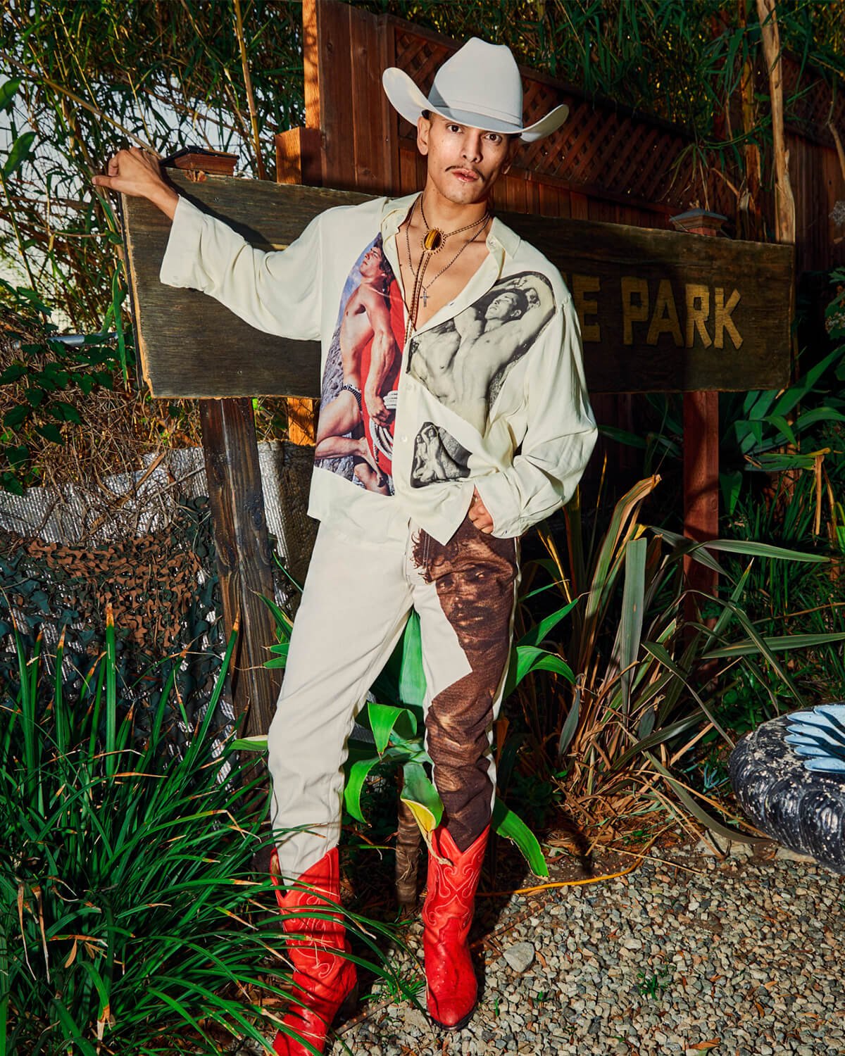 You heard it here first, folks: internationally renowned DJ Honey Fucking Dijon is launching her sixth namesake fashion collection backed by Comme Des Garçons and it’s fucking great. Printed and patched with never-before-seen collages from Tom of Finland, the collection takes us on a journey through time, music and ToFF. Building on the classic silhouettes of her previous collections, sequins and faux fur come into the fold, taking the form of a blinding all-over black sequin jumpsuit and a striped dream of a sweater. Elsewhere, graphic jumpsuits, elevated army wear, satin twinsets and colour-block shirts will take you from campy daytime extravagance to late-night basement clubbing in downtown NYC. HDF AW22 is available for purchase in stores at all Dover Street Market locations and HFD worldwide retailers. EP