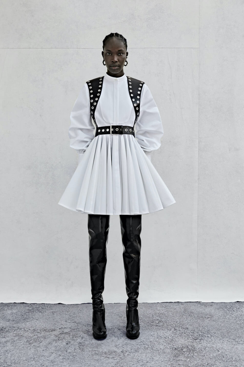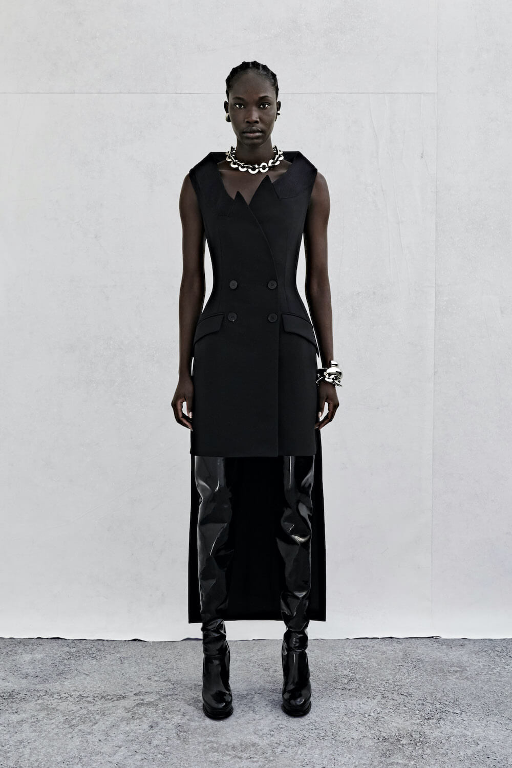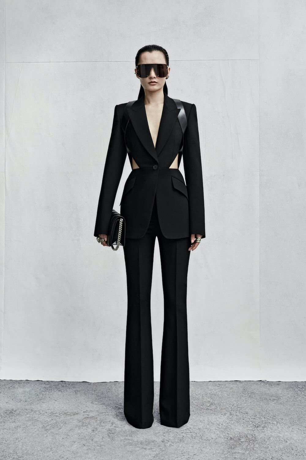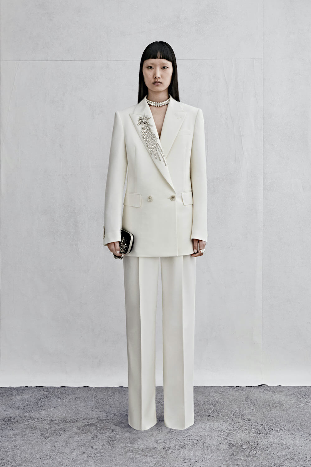 For Alexander McQueen’s pre-SS23 collection, Sarah Burton focused on “the dissection of tailoring,” letting ideas around supernature, the cosmos and the night sky guide her design hand. The collection features everything from razor-sharp suiting fused with leather harnesses to trompe l’oeil frocks and evening gowns dotted with clusters of glistening stars. PT