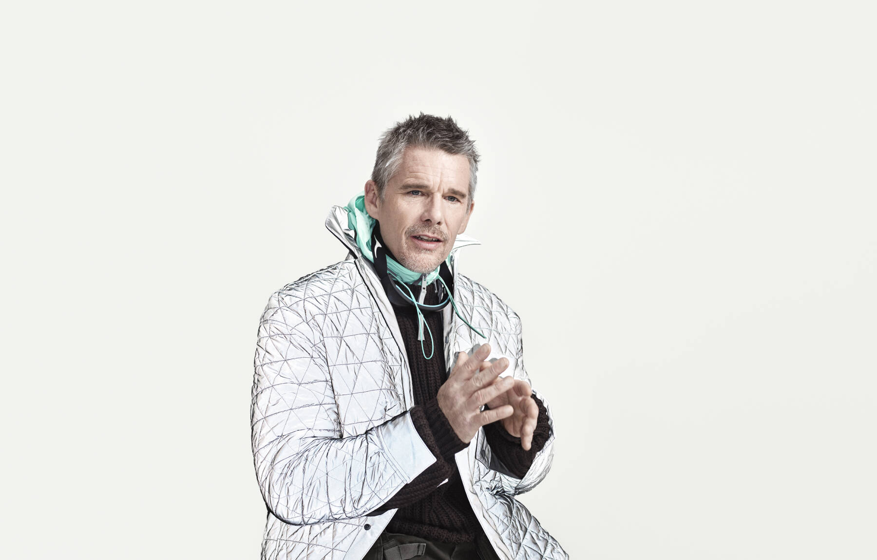 “Everything in nature has something to teach us”, says Ethan Hawke, the actor-turned-activist who takes shape as the face of Haider Ackermann’s first capsule collection for cult outerwear label Canada Goose. Dubbed Snow Goose by Canada Goose, the AW24 capsule sees Ackermann – Canada Goose’s first-ever creative director – instil waterproof parka coats and knitted sweaters into the brand’s wealth of archives, which spans over six decades. Informed by the power of nature and its influence on the individual, Ackermann’s capsule boasts over 60 styles of ready-to-wear menswear and womenswear, as ’90s-style coats become drenched in cobalt blues and reflective silvers.
